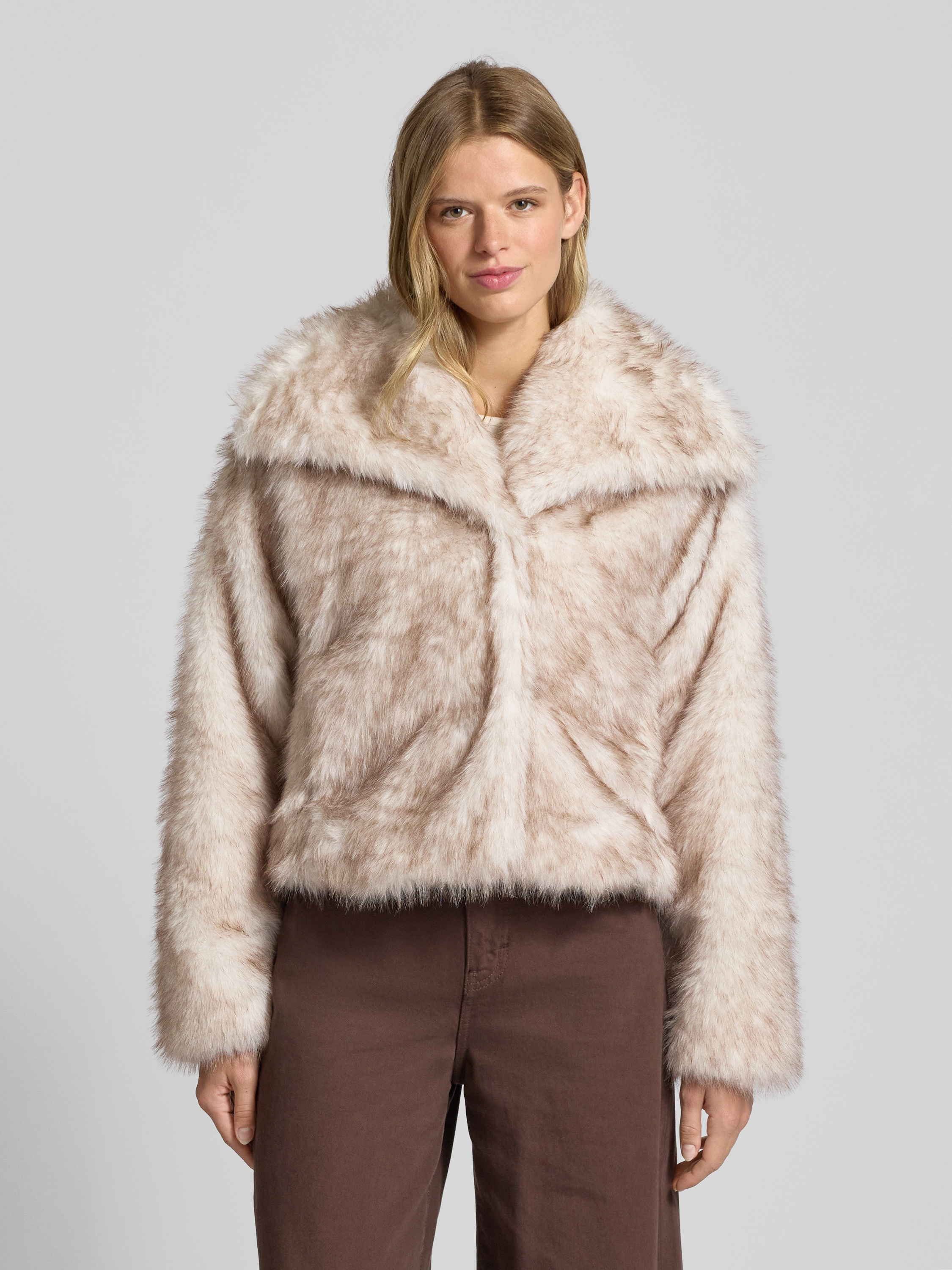 Kurtka ze sztucznego futra o kroju relaxed fit zapięcie na haftkę model ‘DAWN LIFE’ - écru