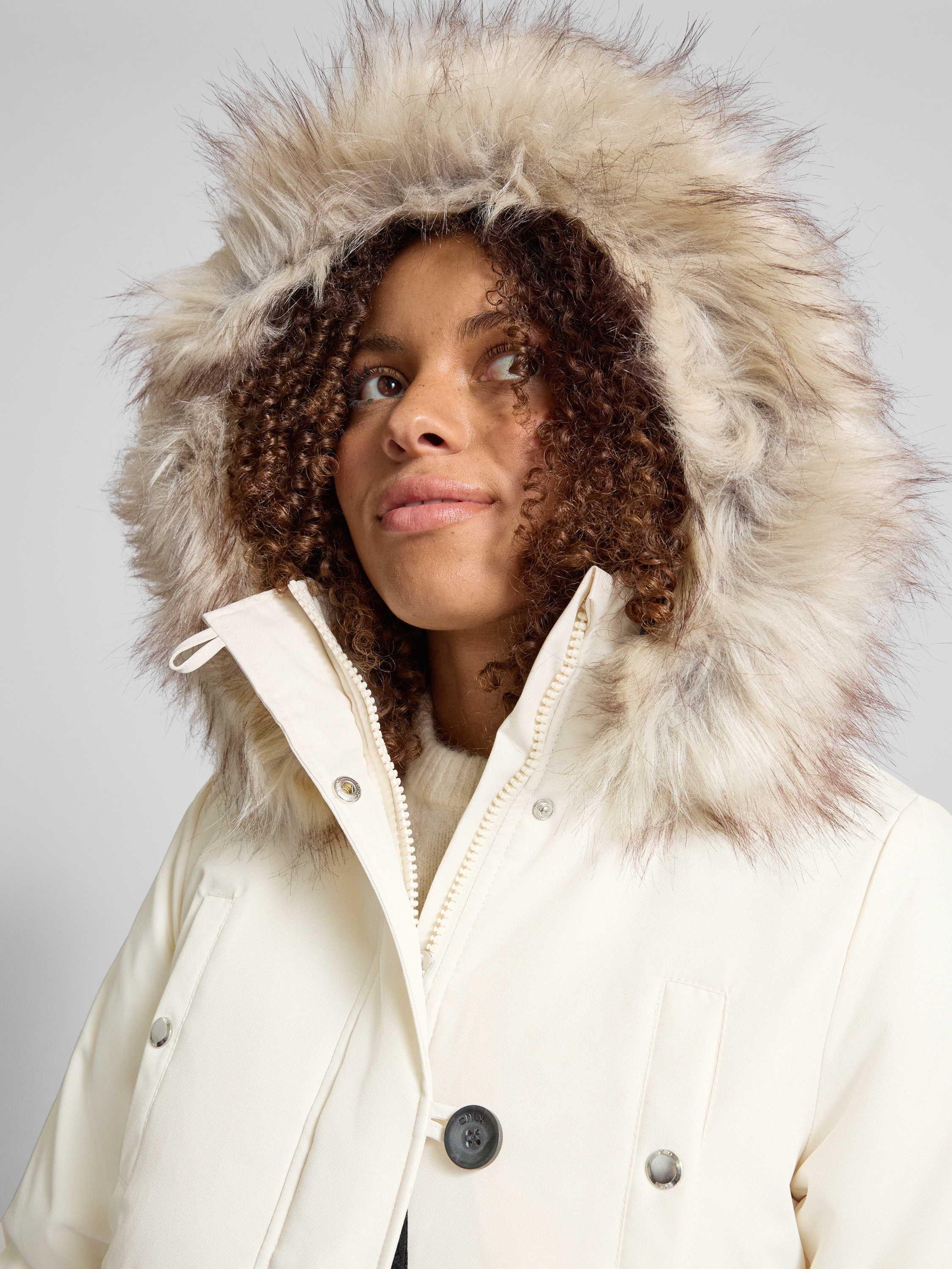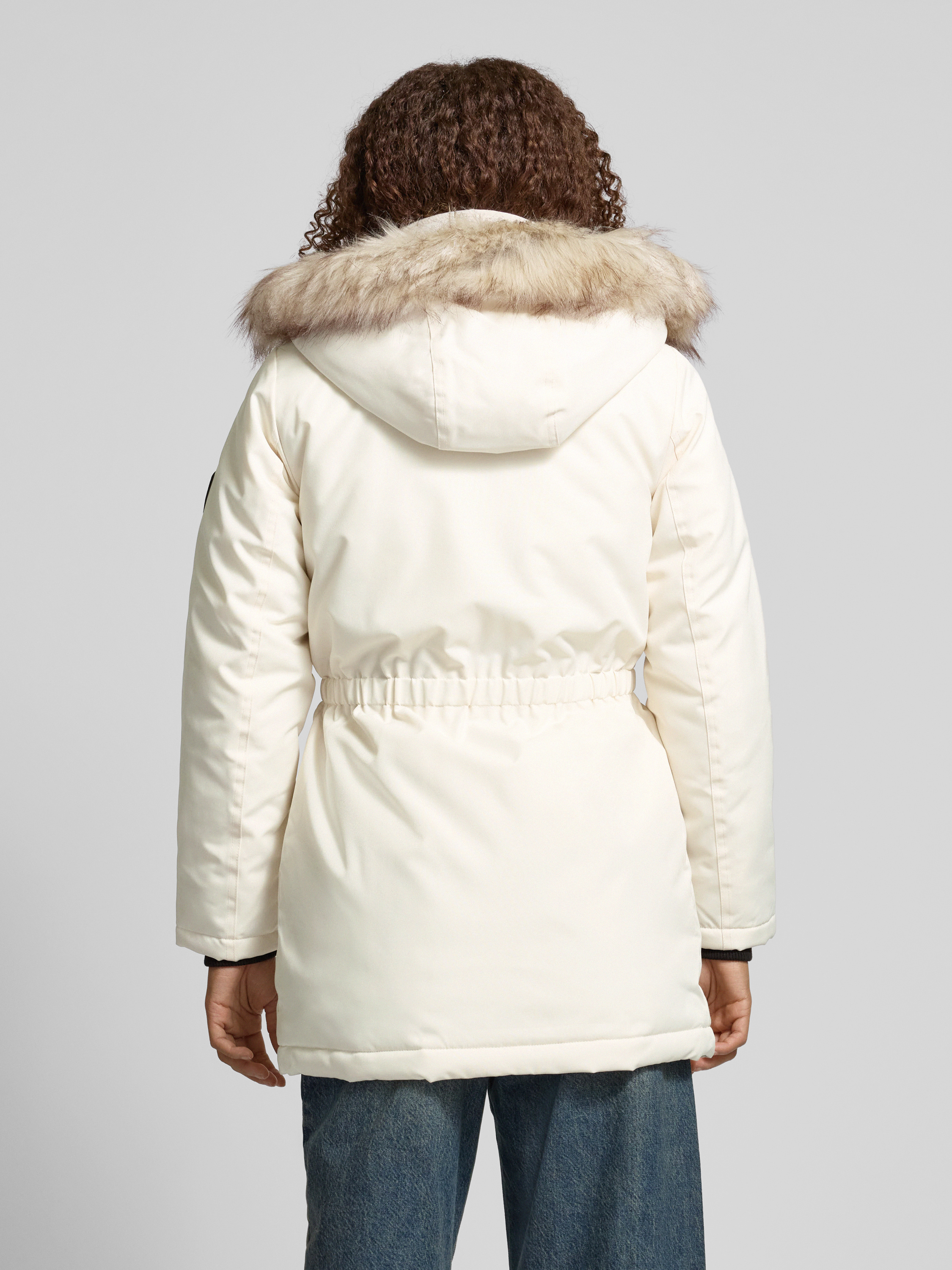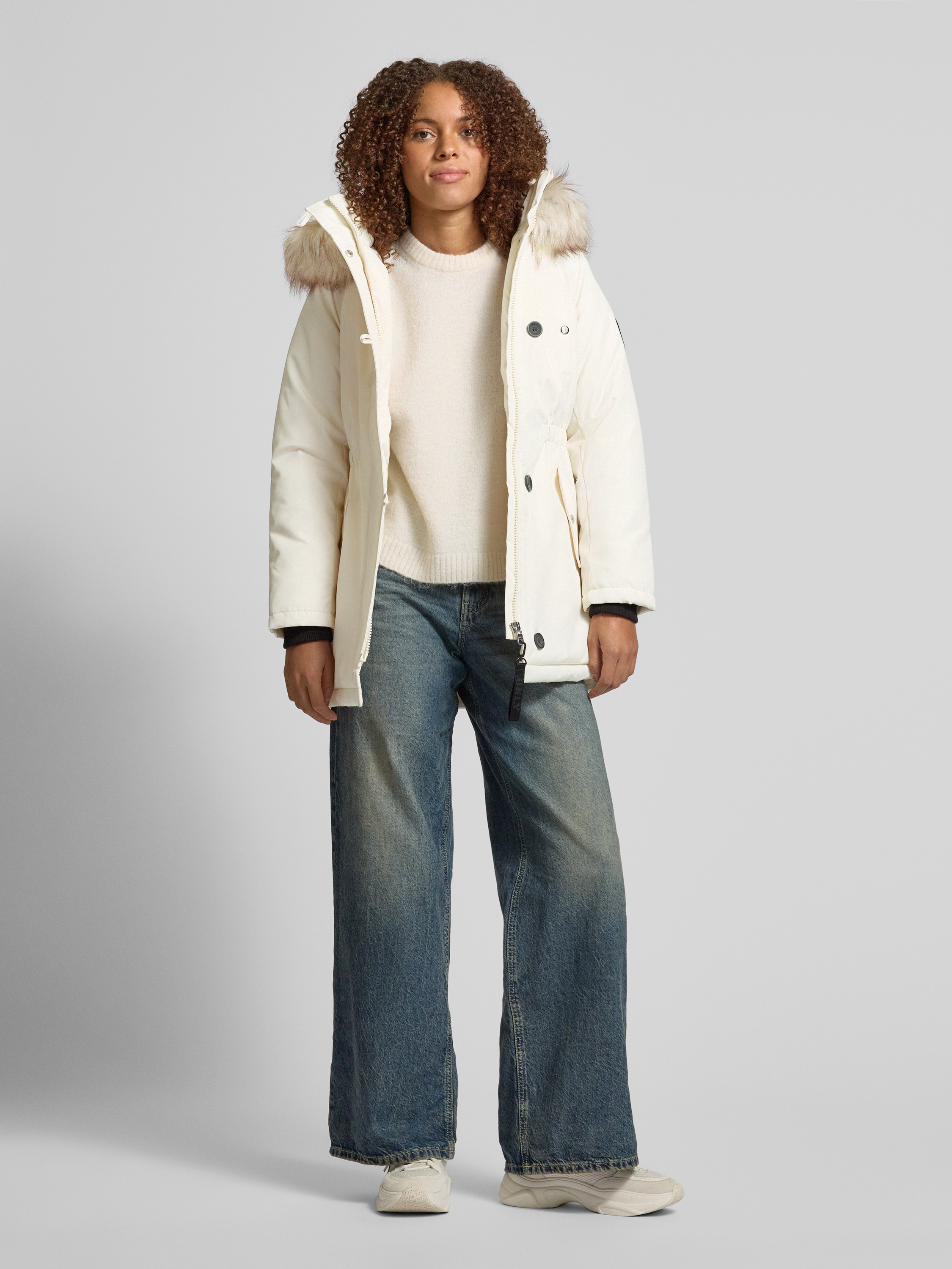 Parka taliowana z obszyciem ze sztucznego futra model ‘IRIS’ - złamany biały