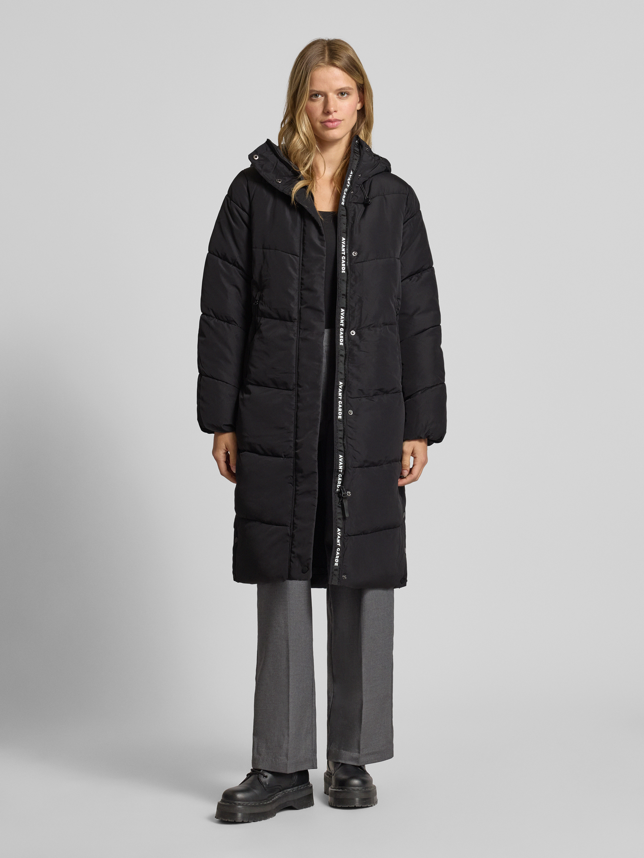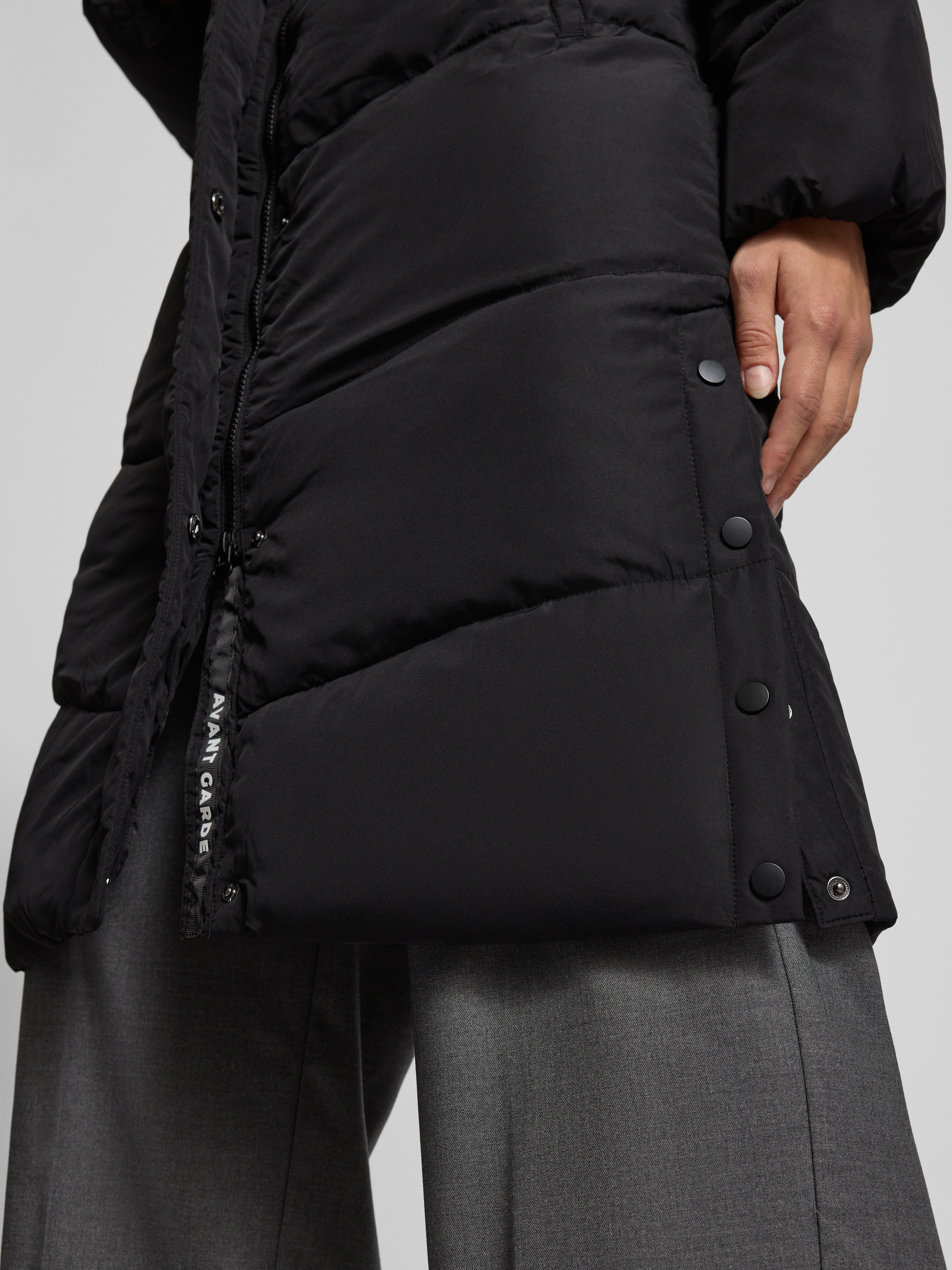 Zapięcie: Kryty zamek błyskawiczny dwustronny, kryta listwa guzikowa