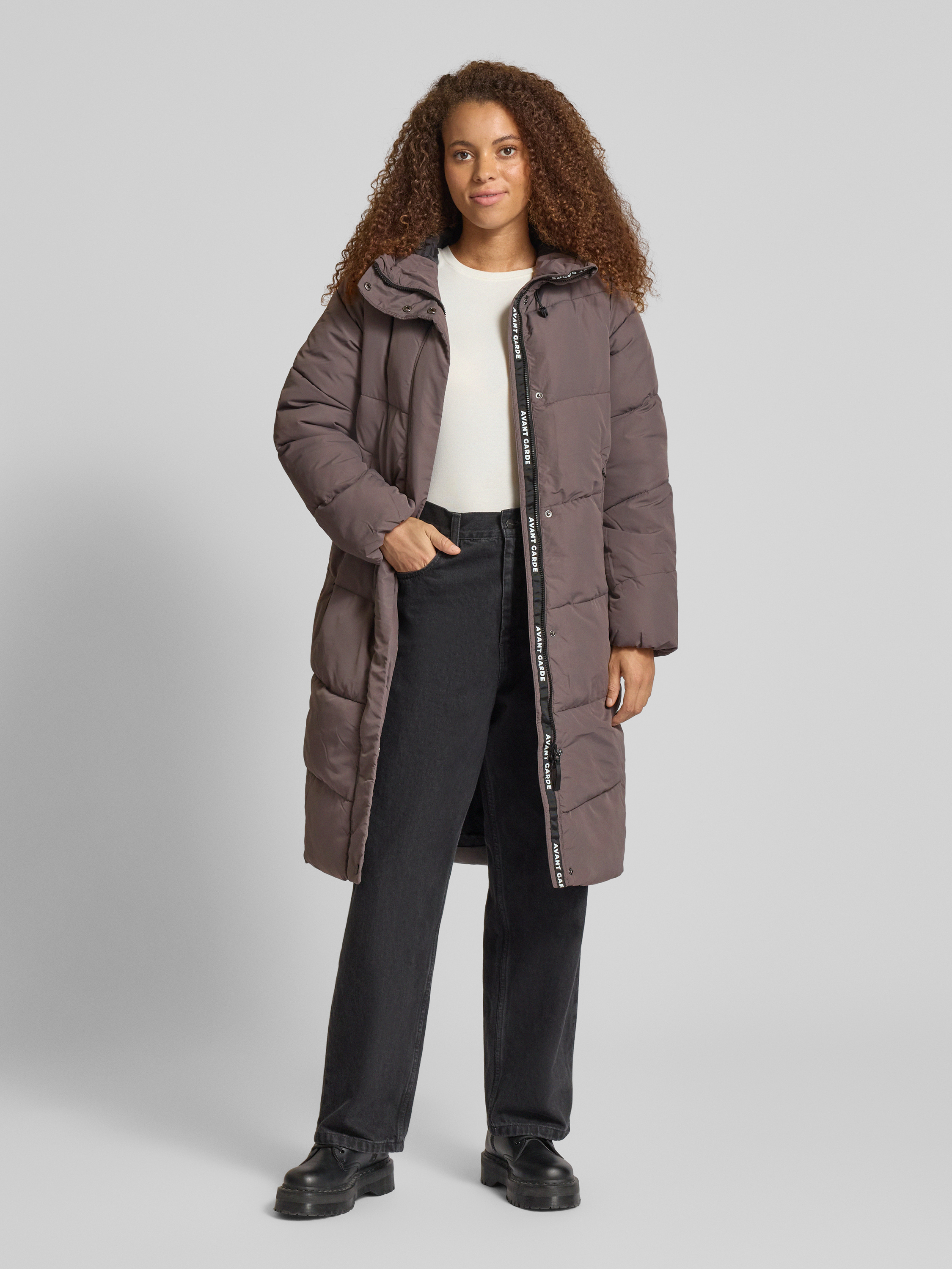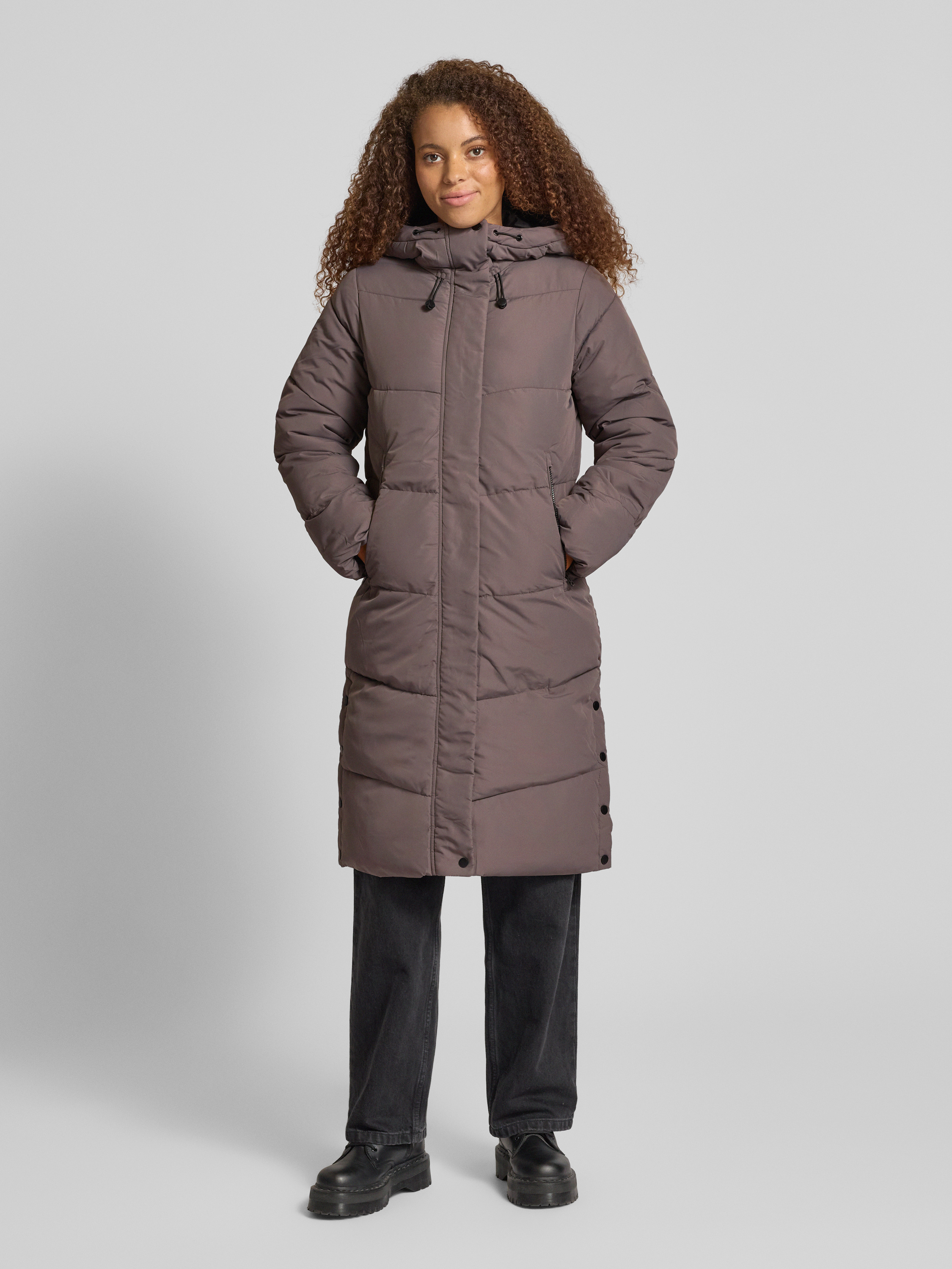Płaszcz pikowany o kroju relaxed fit z kapturem model ‘MAGGI LIFE’ - średnioszary melanż