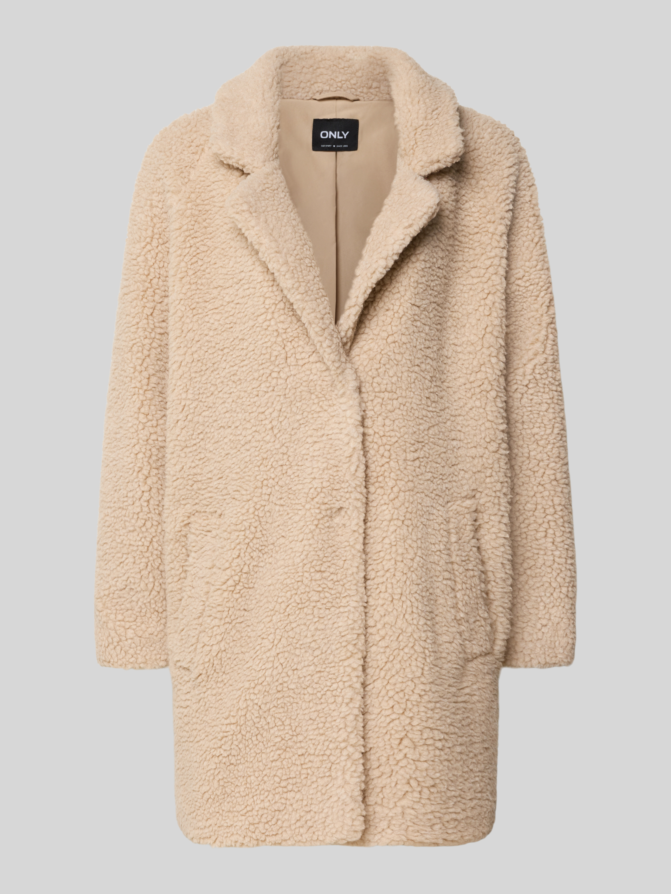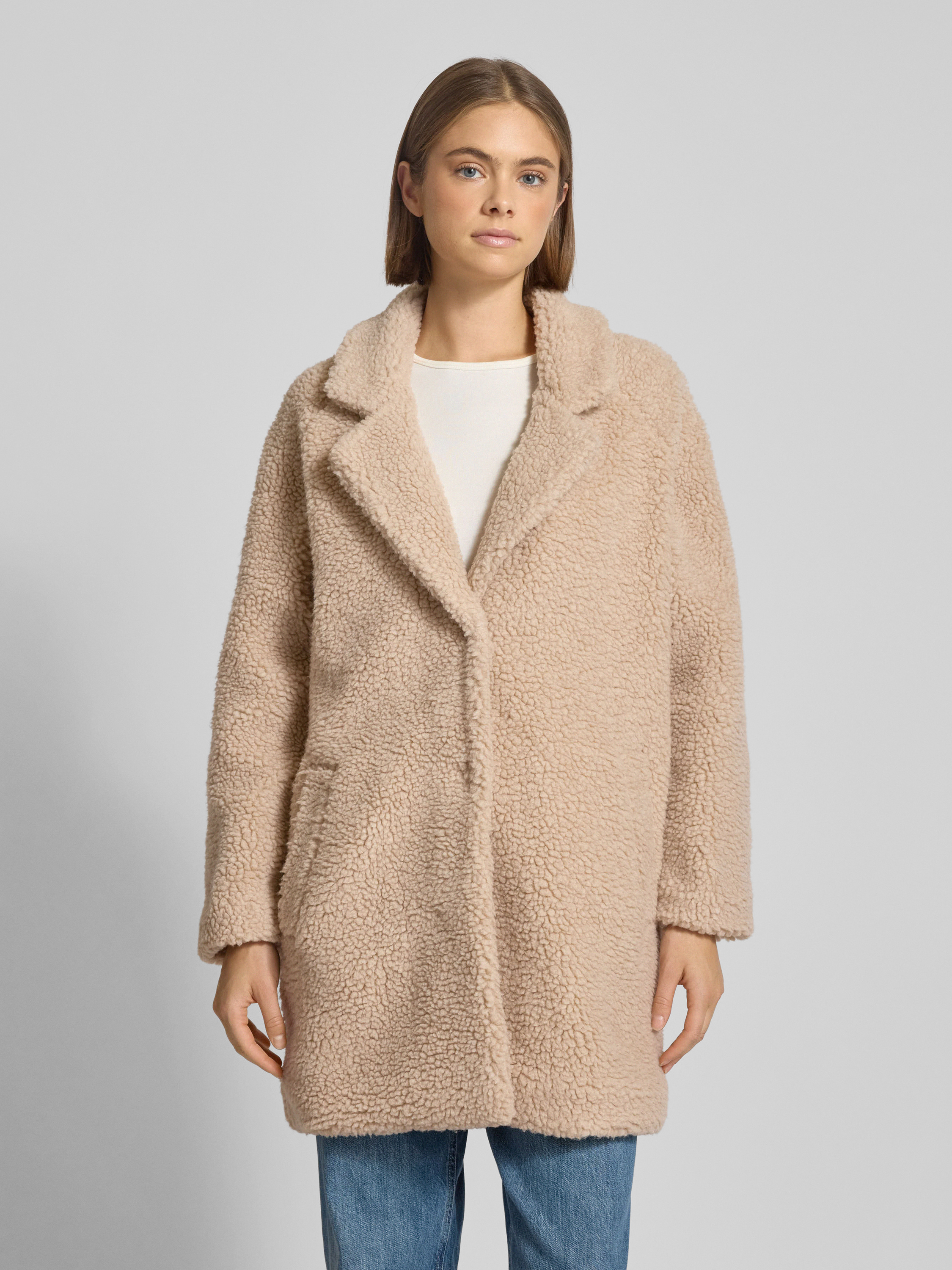 Płaszcz z futerka o kroju relaxed fit z kołnierzem z połami model ‘NEWAURELIA’ - piaskowy