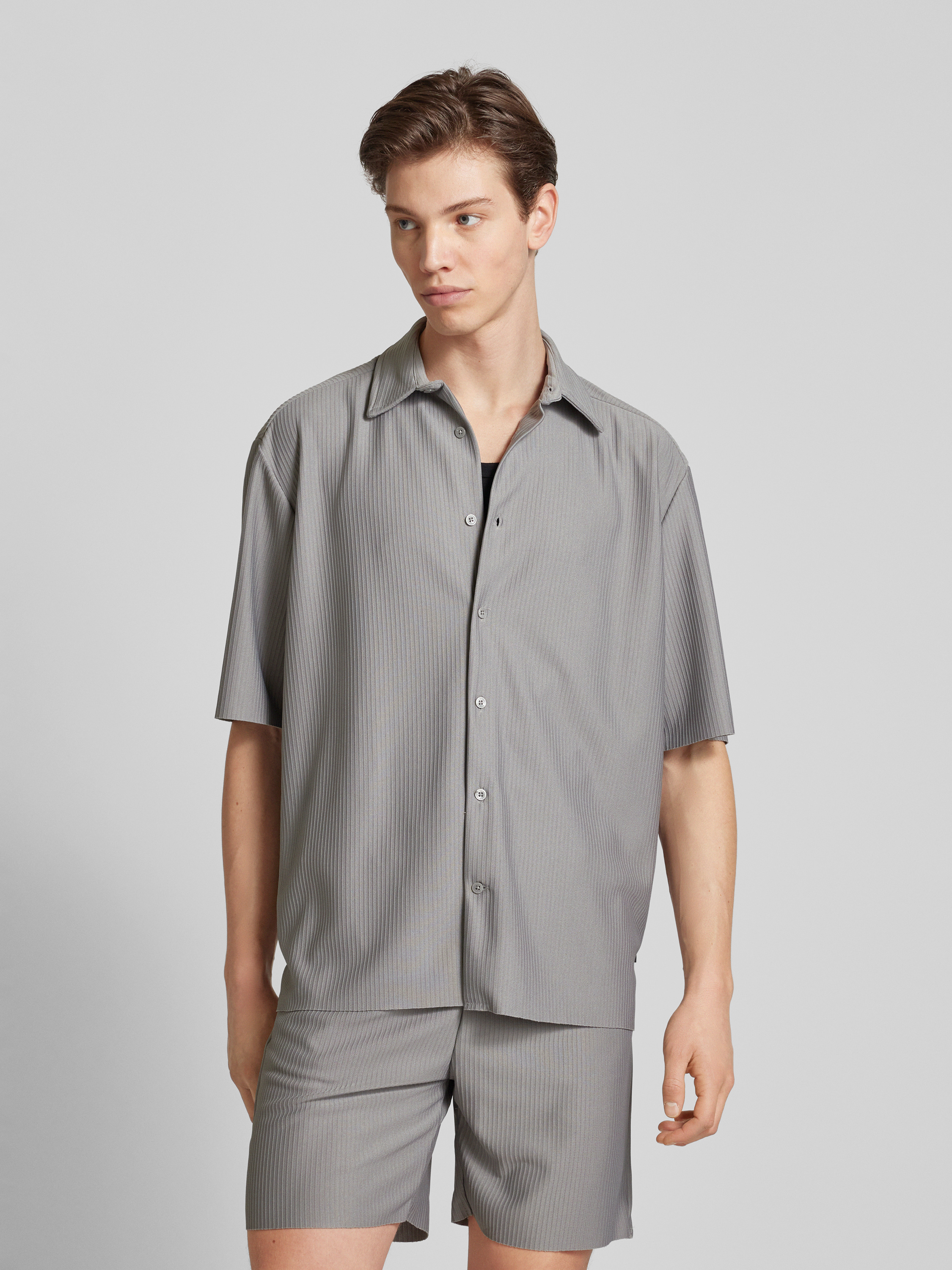 Koszula casualowa o kroju relaxed fit z drobnym prążkowaniem model ‘BOYY LIFE’ - jasnoszary