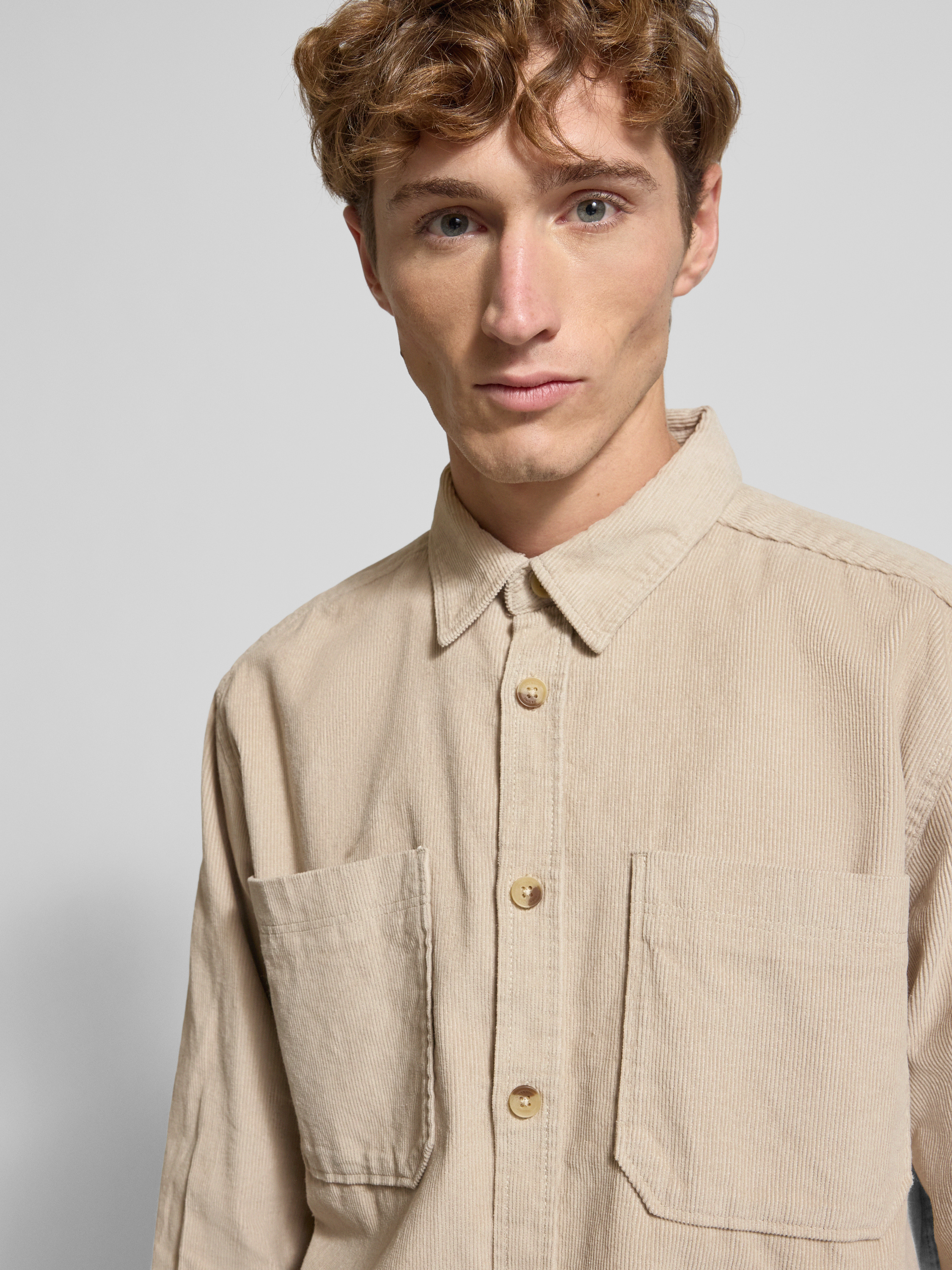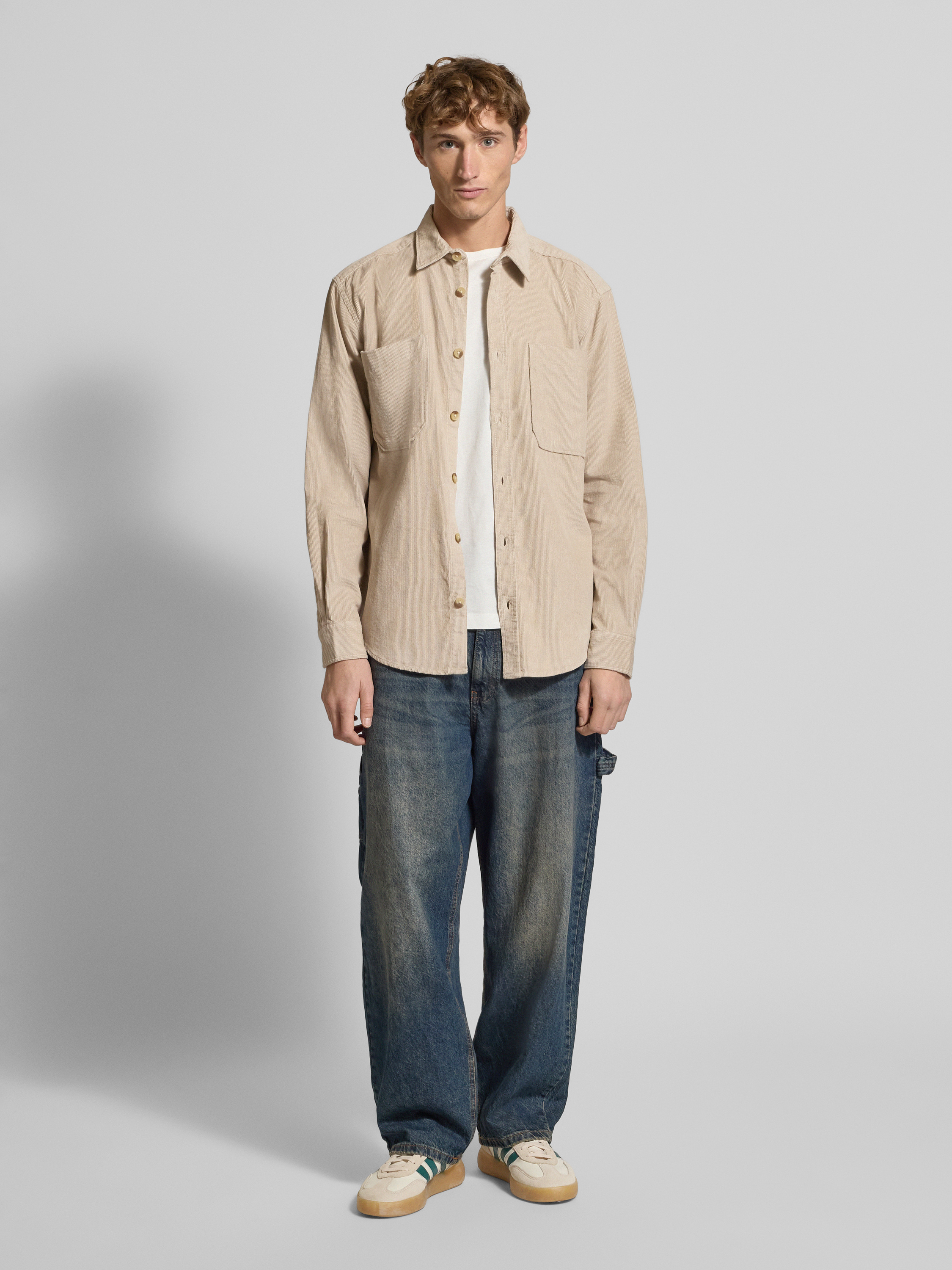 Koszula casualowa o luźnym kroju z czystej bawełny model ‘ALP’ - beżowy