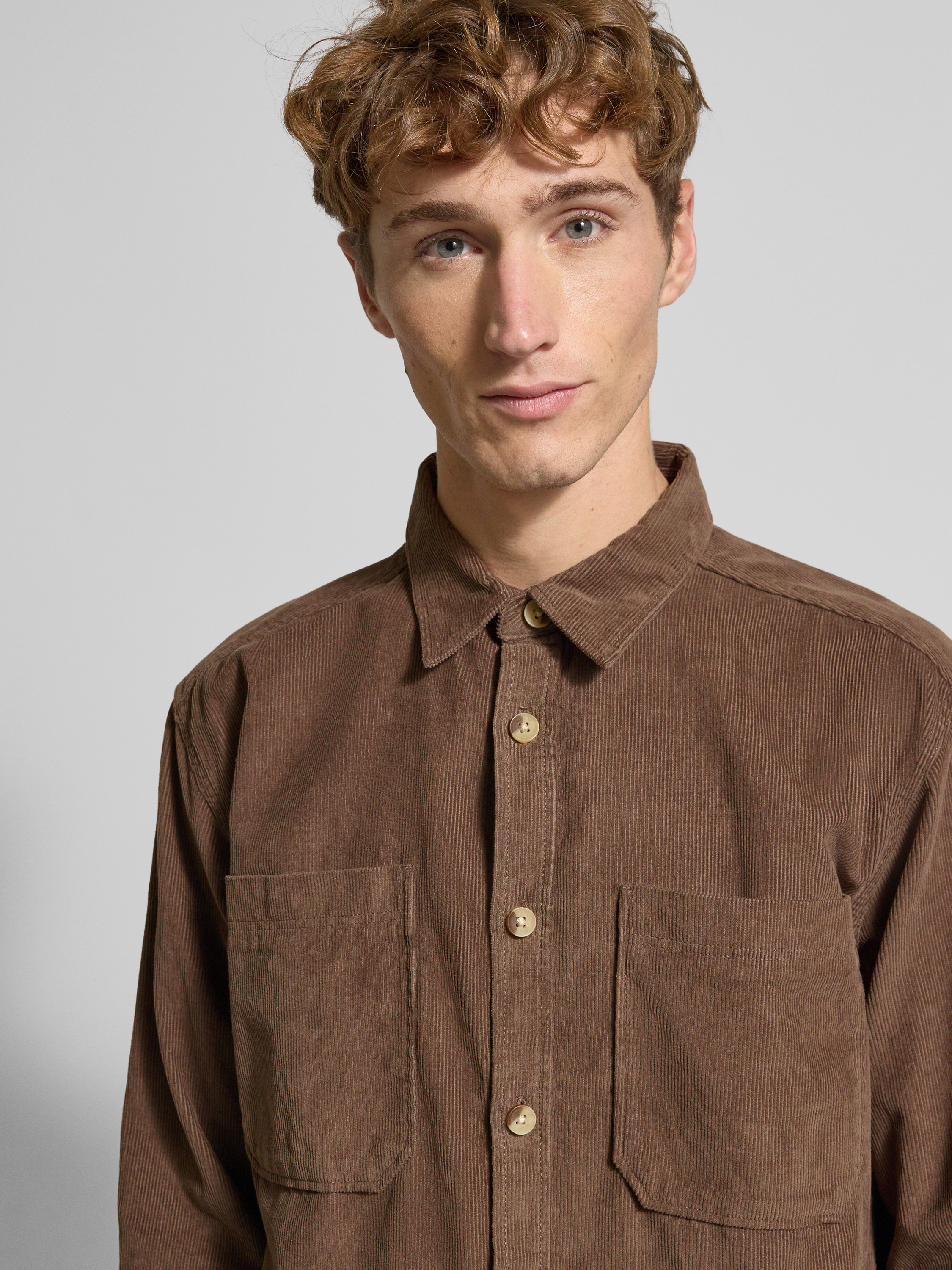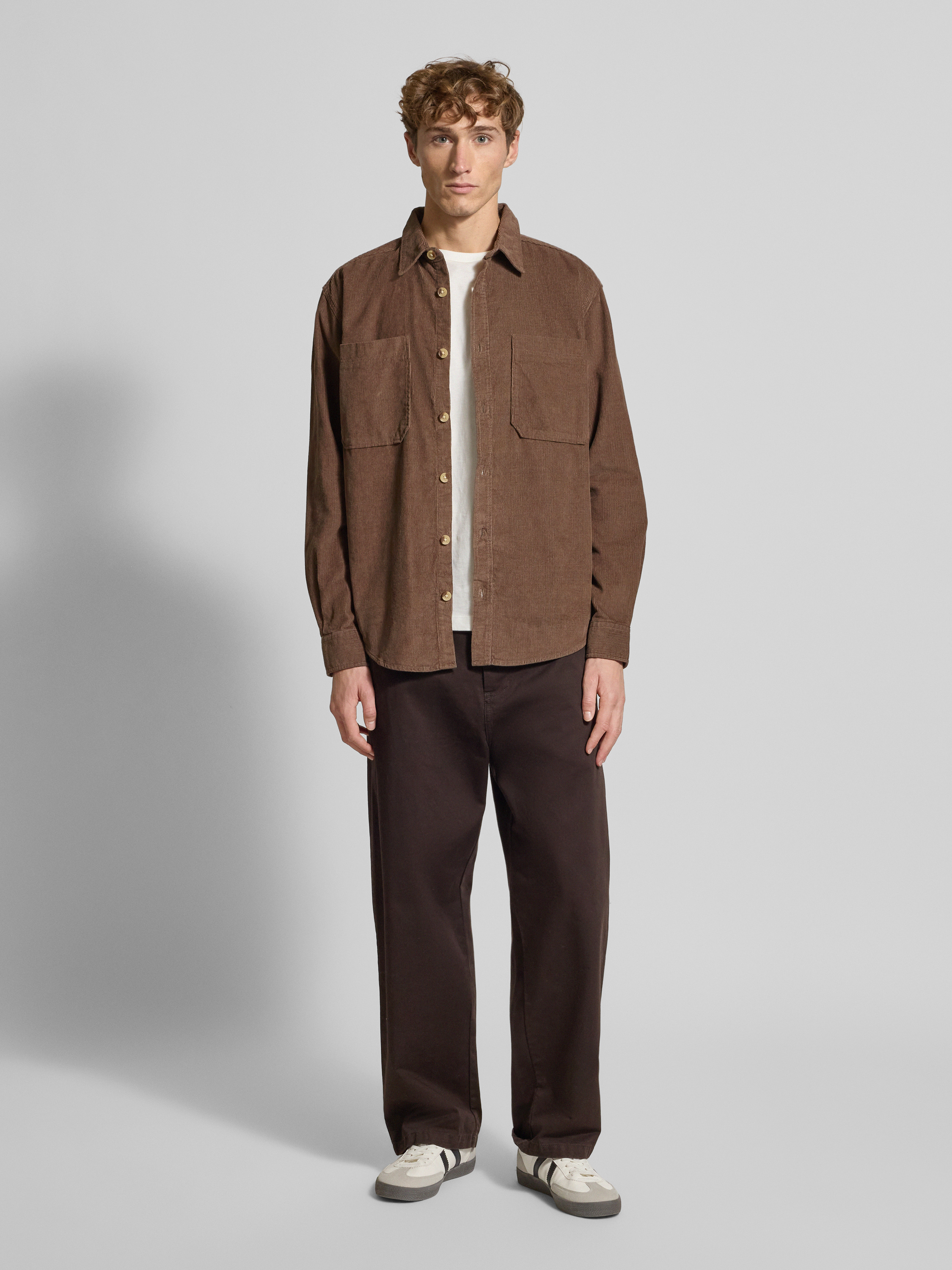 Koszula casualowa o luźnym kroju z czystej bawełny model ‘ALP’ - jasnobrązowy