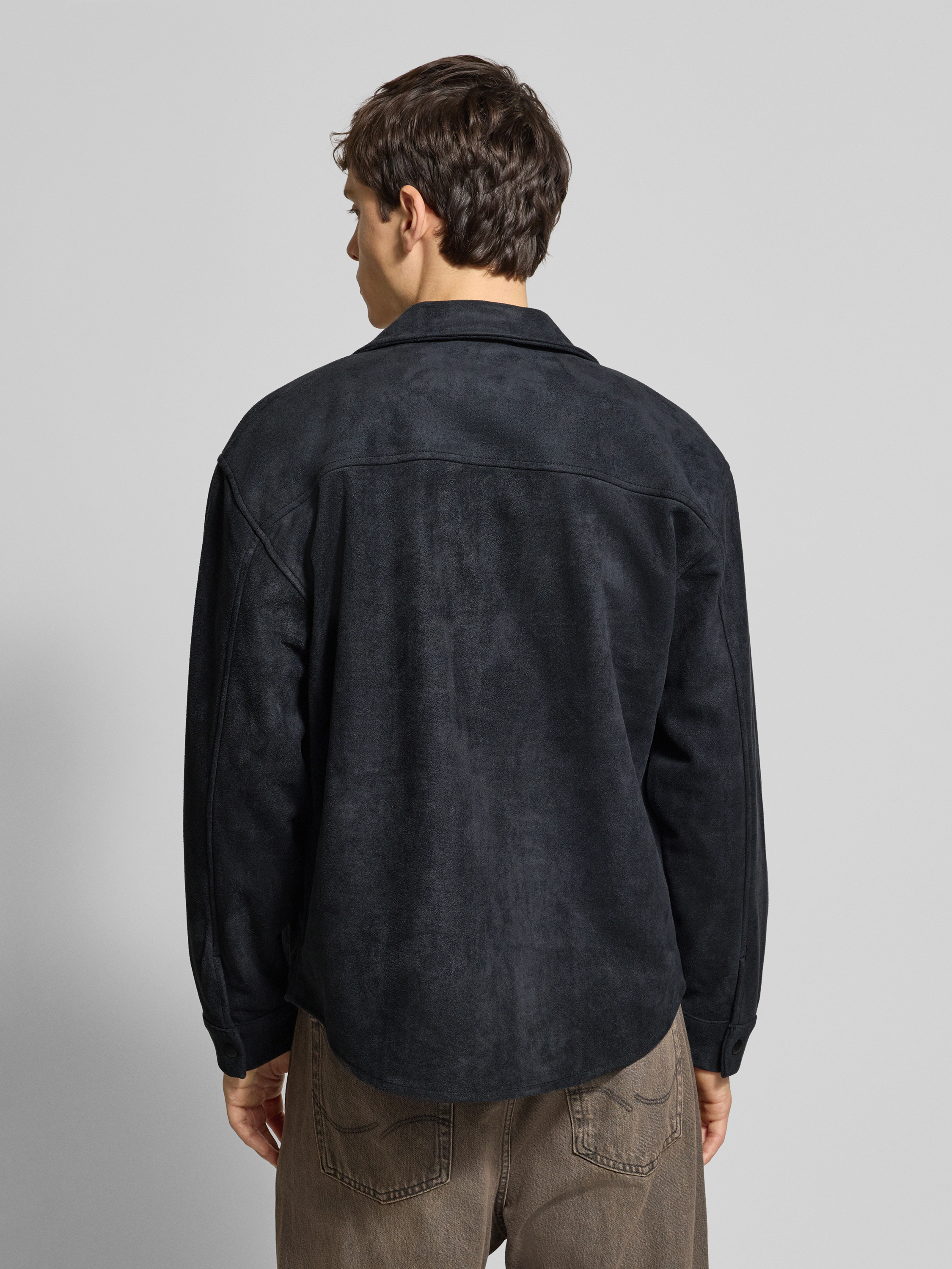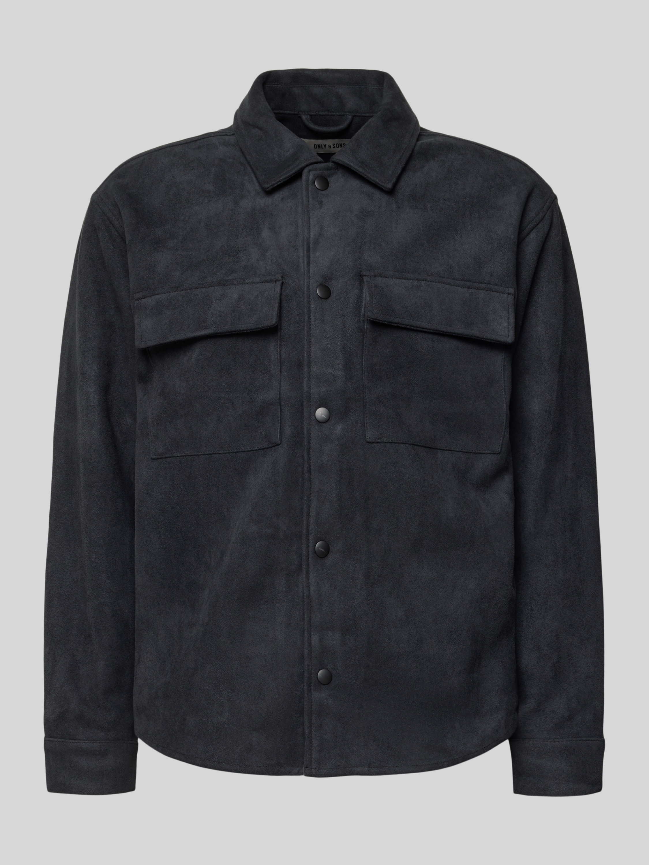 Kurtka o kroju regular fit z imitacji skóry welurowej z kieszeniami z patką na piersi model ‘RAVI’ - czarny