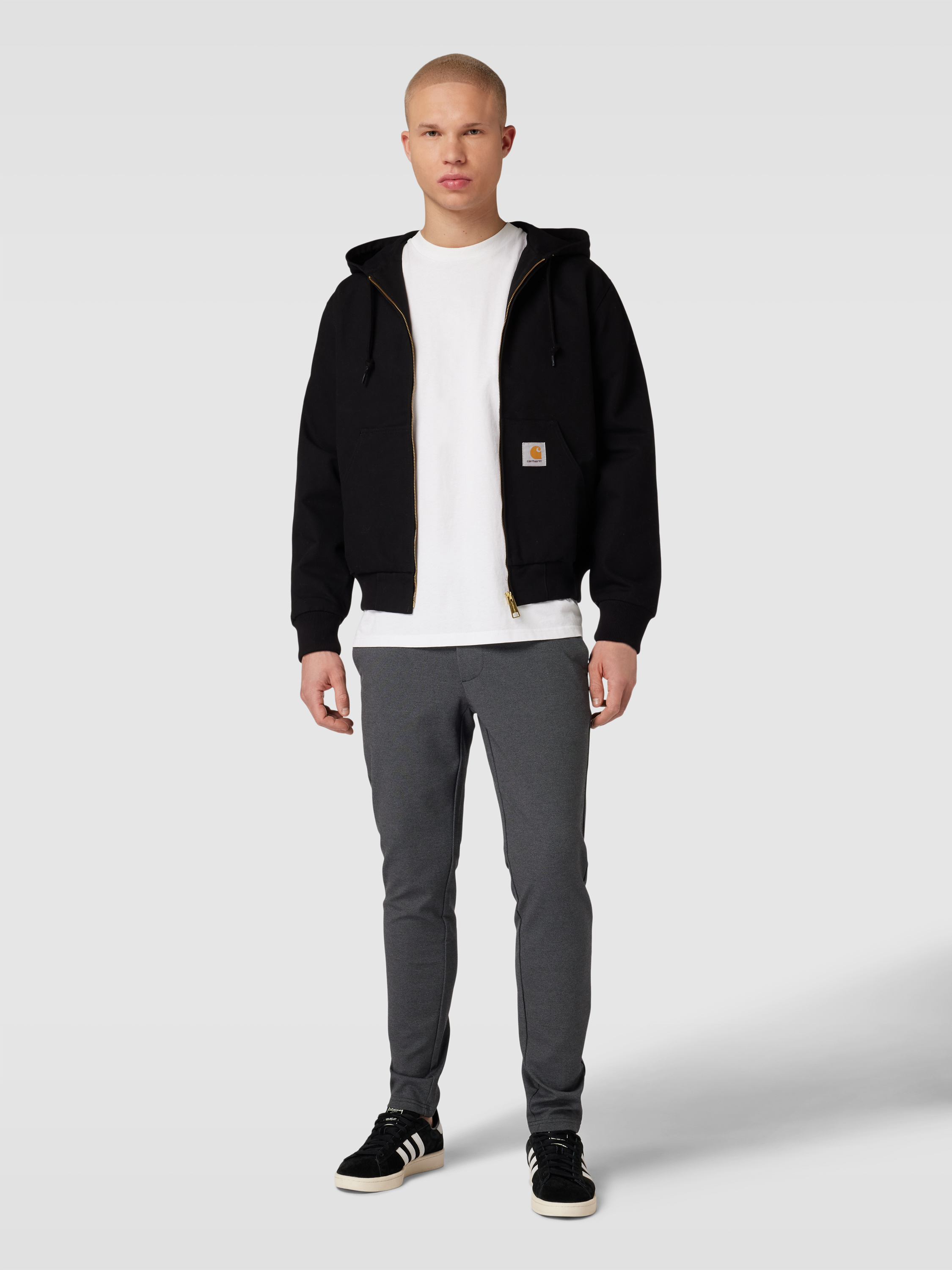 Spodnie materiałowe o kroju tapered fit ze wzorem w jodełkę - czarny