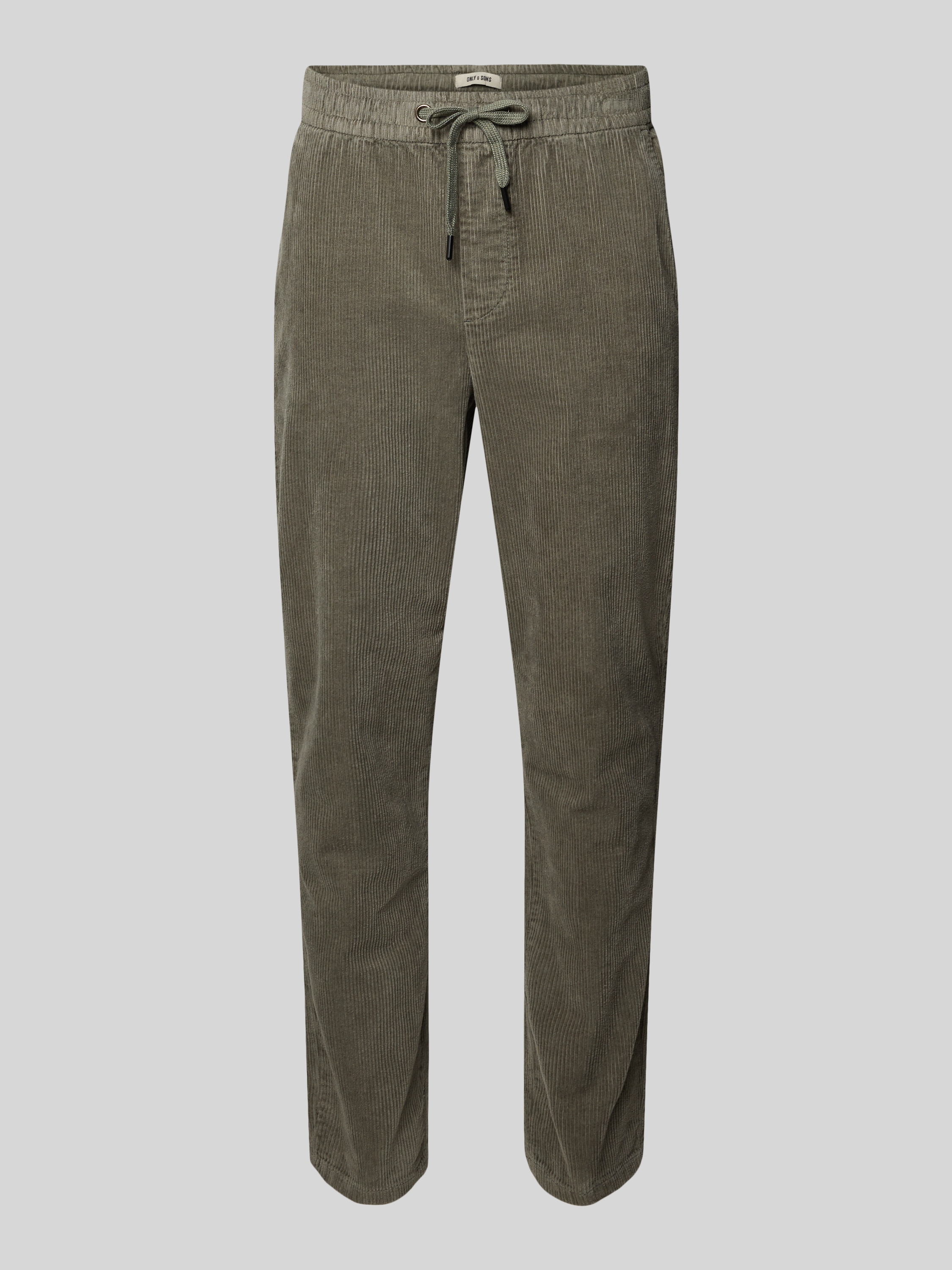 Spodnie sztruksowe o kroju tapered z mieszanki bawełny model ‘LINUS’ - trzcinowy