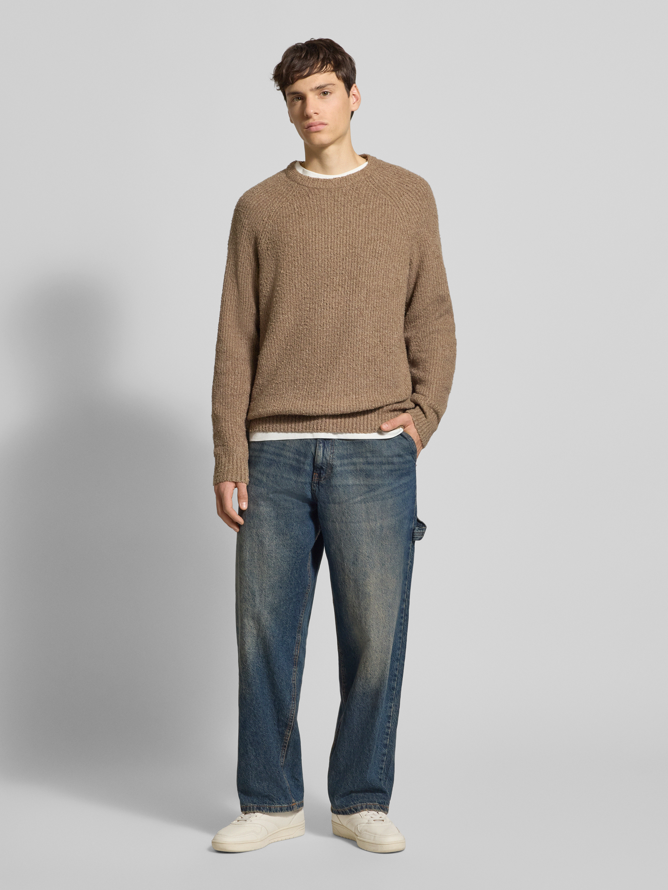 Sweter z dzianiny o kroju relaxed fit z mieszanki bawełny model ‘DALE LIFE’ - jasnobrązowy