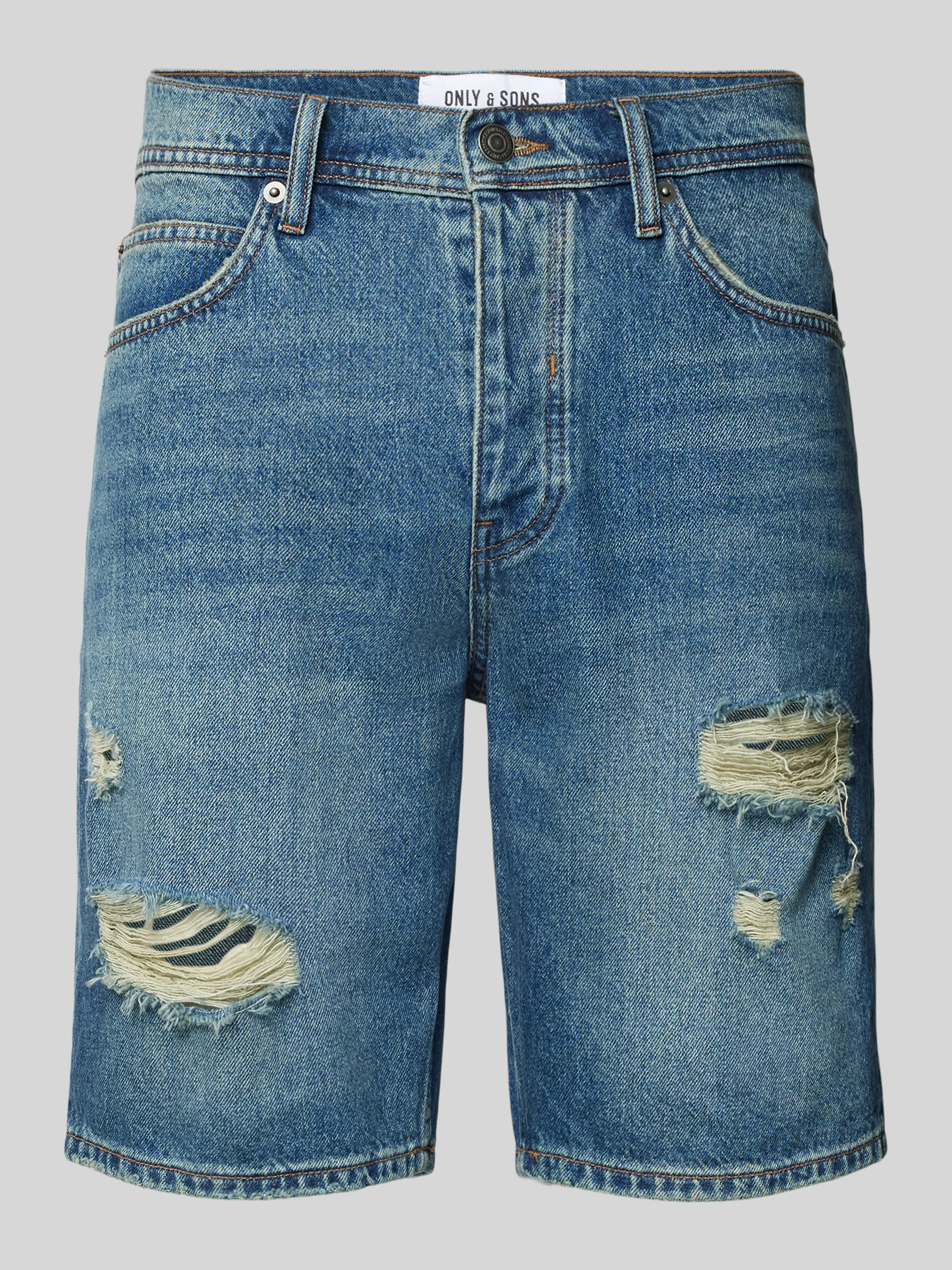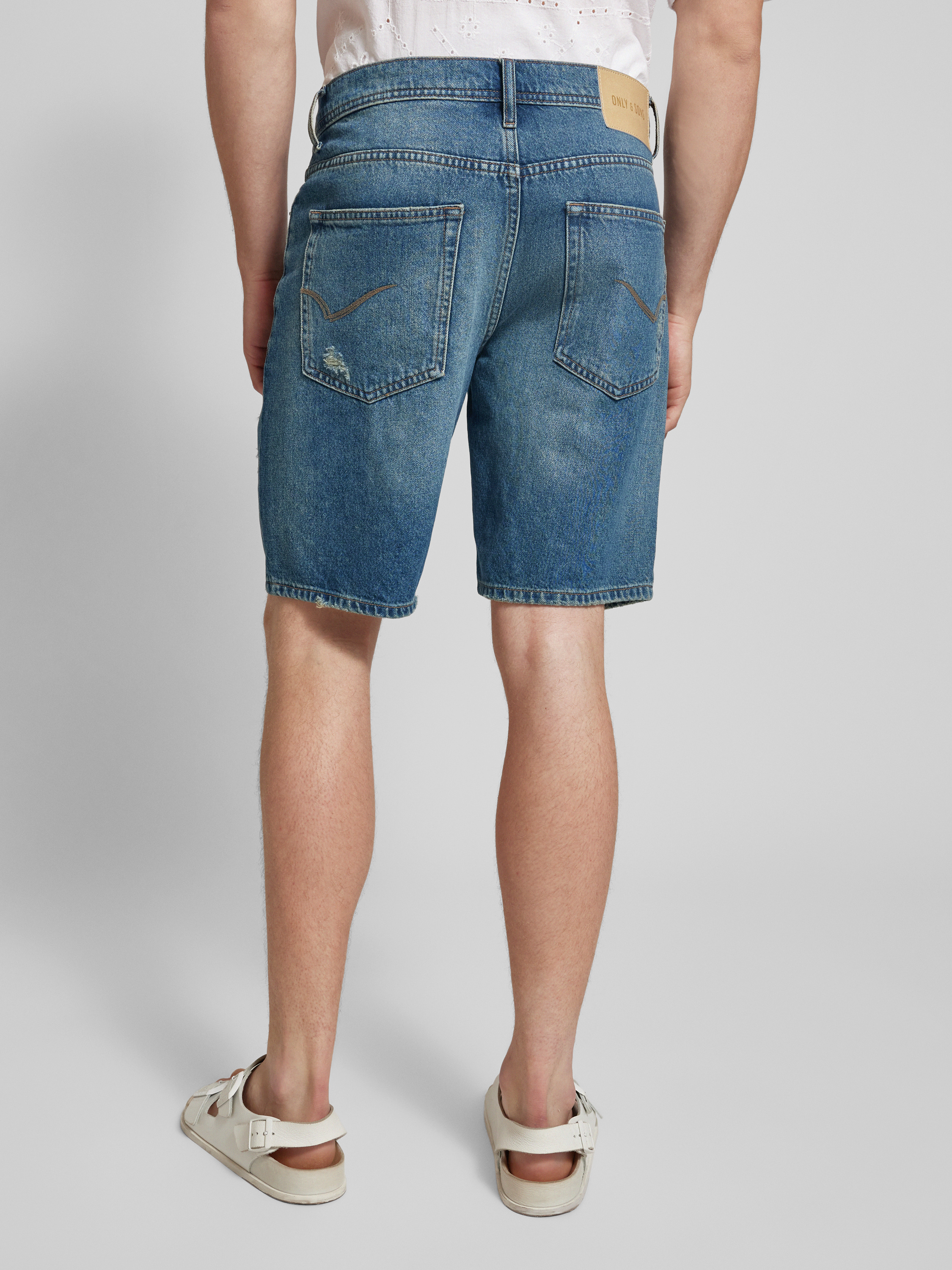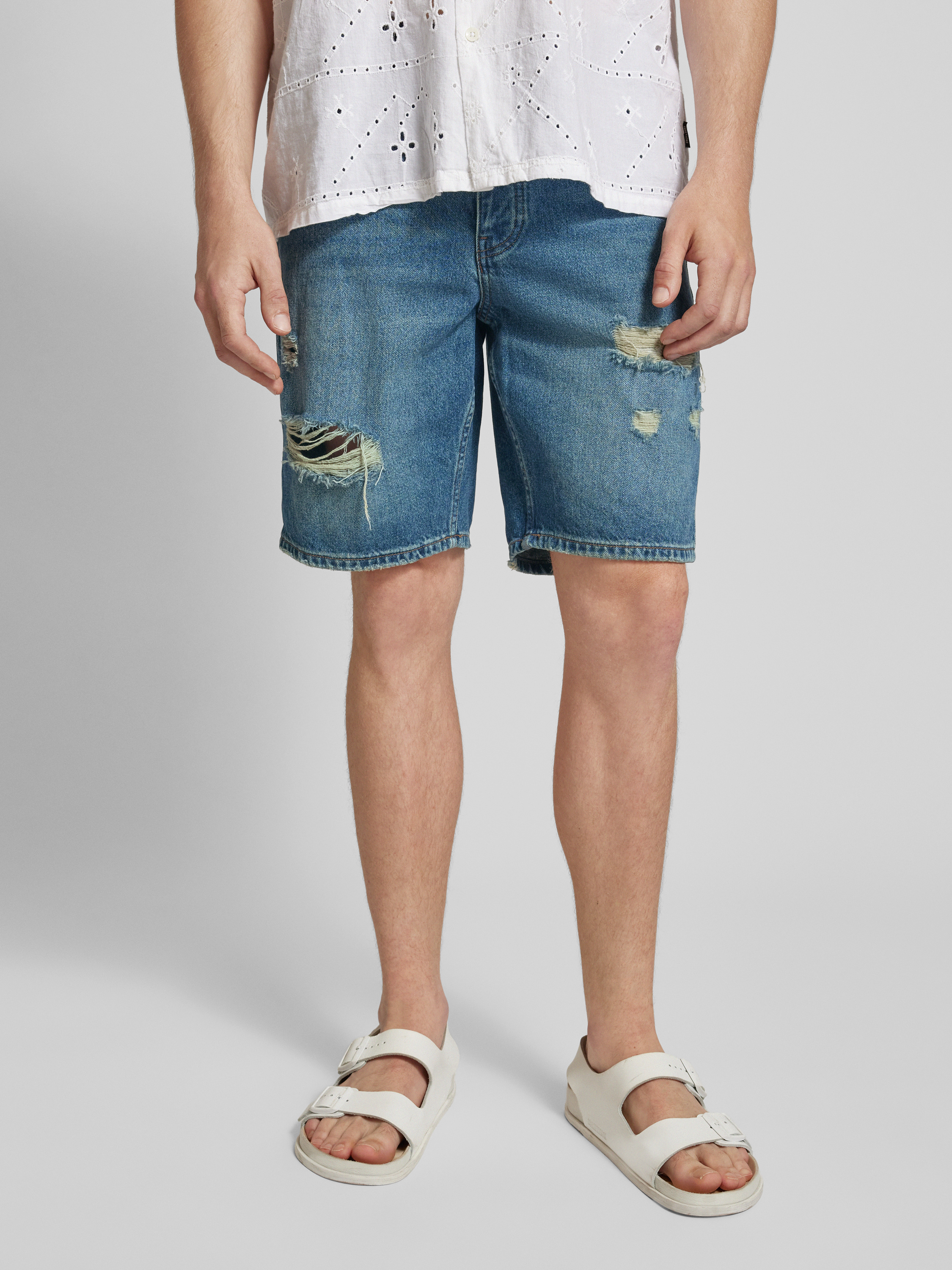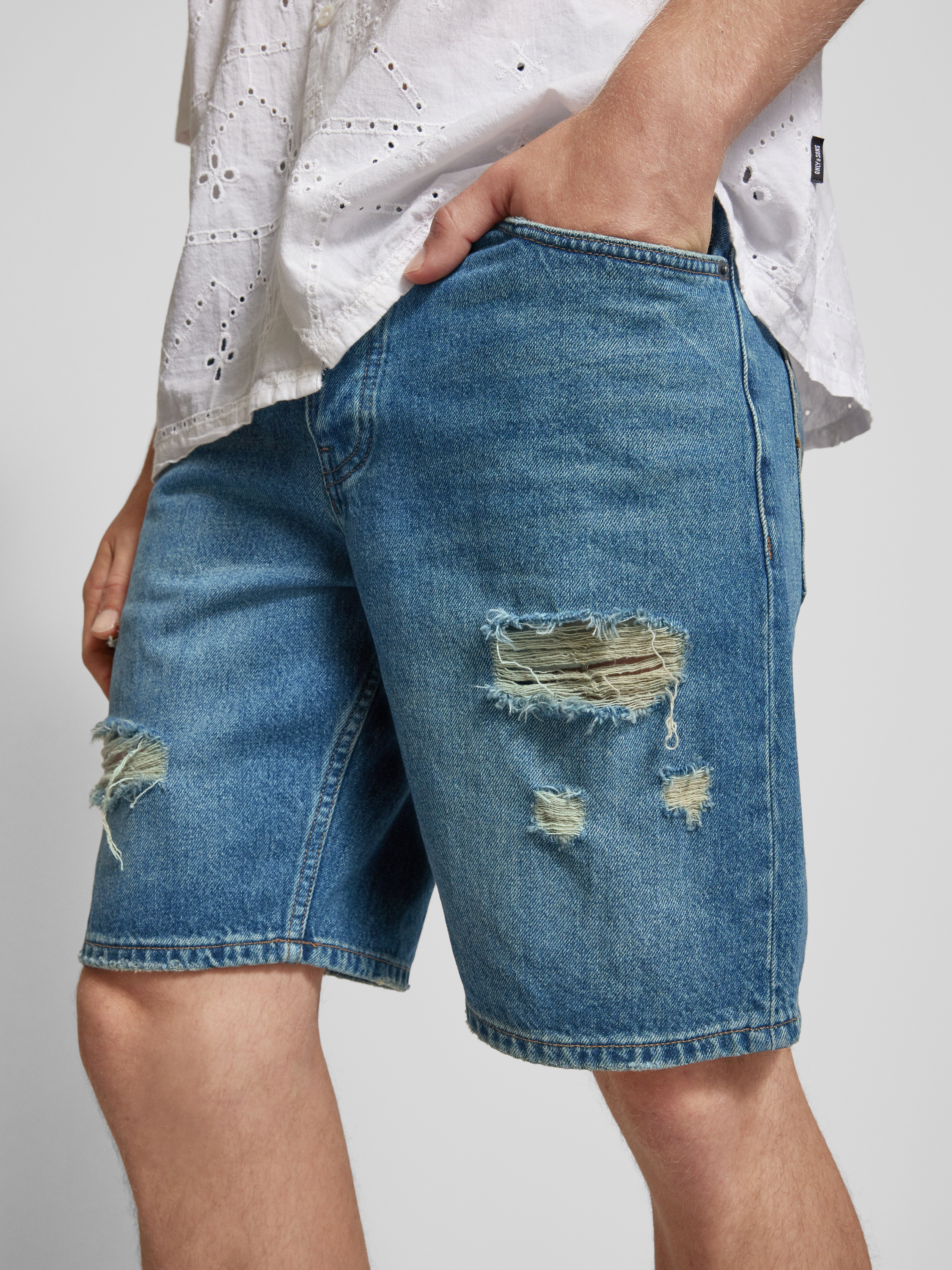 Szorty jeansowe o kroju regular fit z przetarciami model ‘EDGE’ - ciemnoniebieski