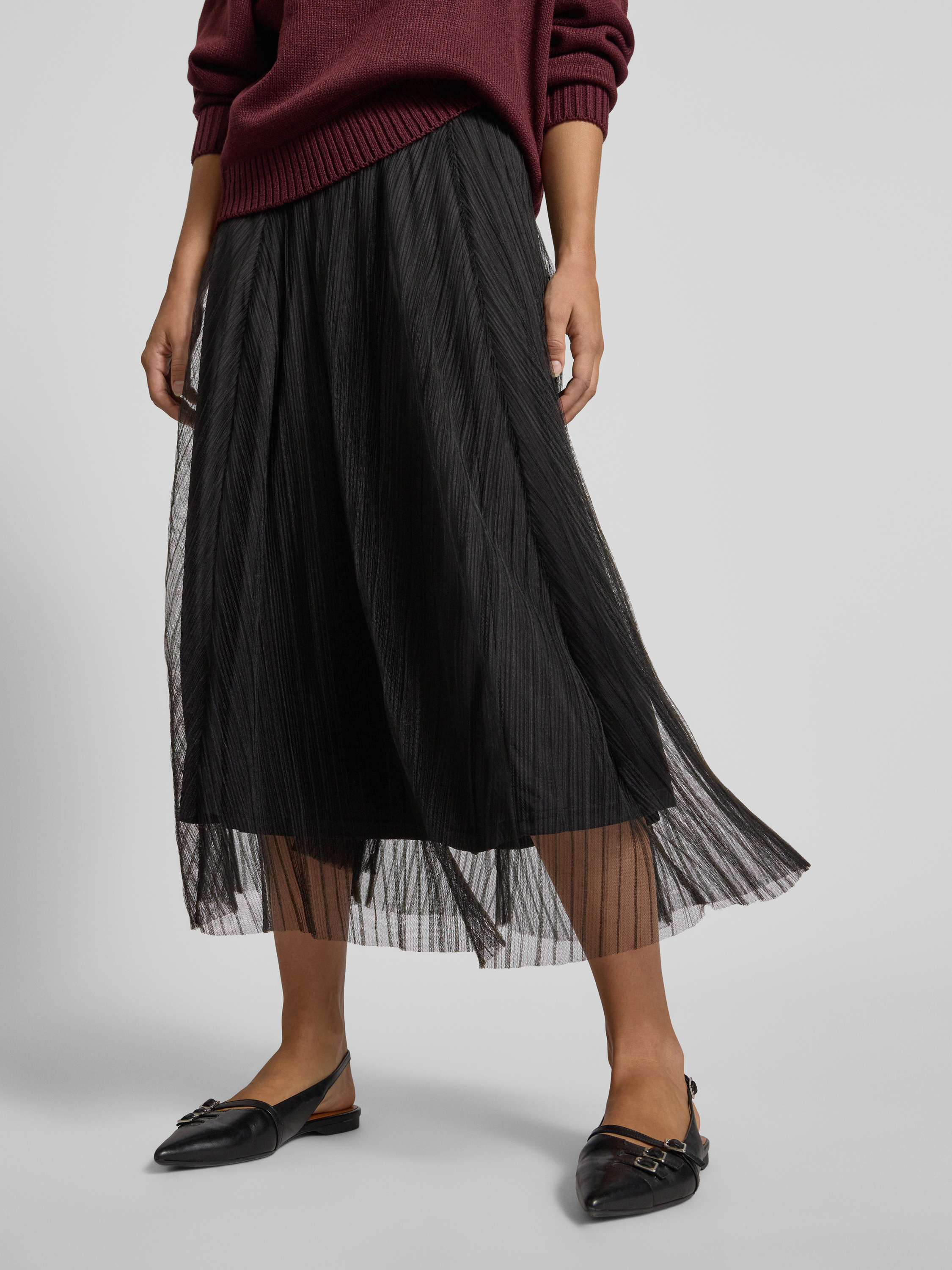 Spódnica midi o kroju regular fit z siateczki model ‘LAVINA’ - czarny