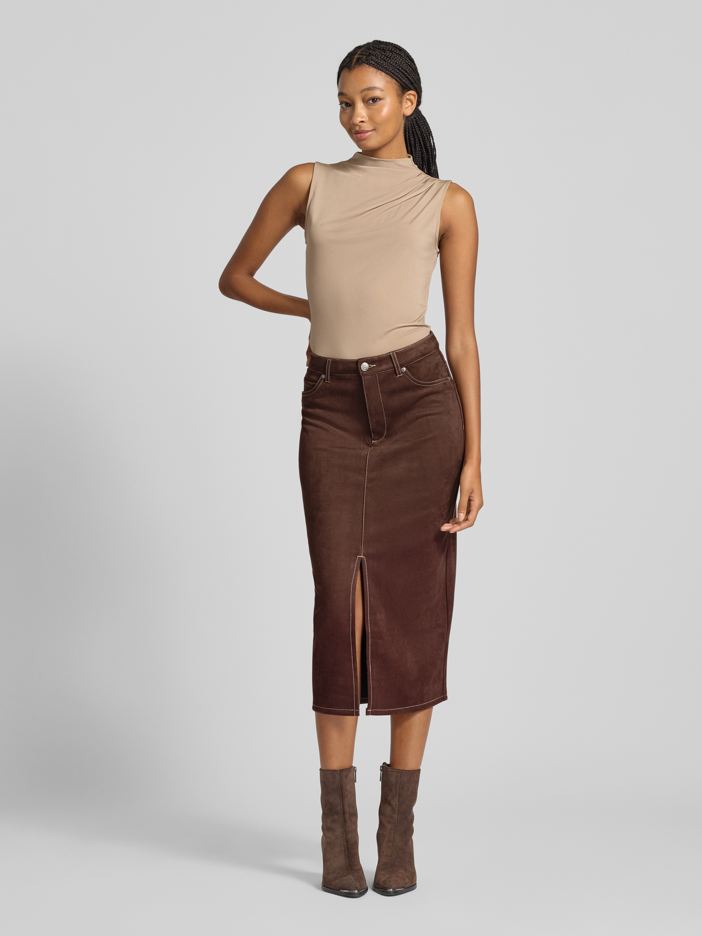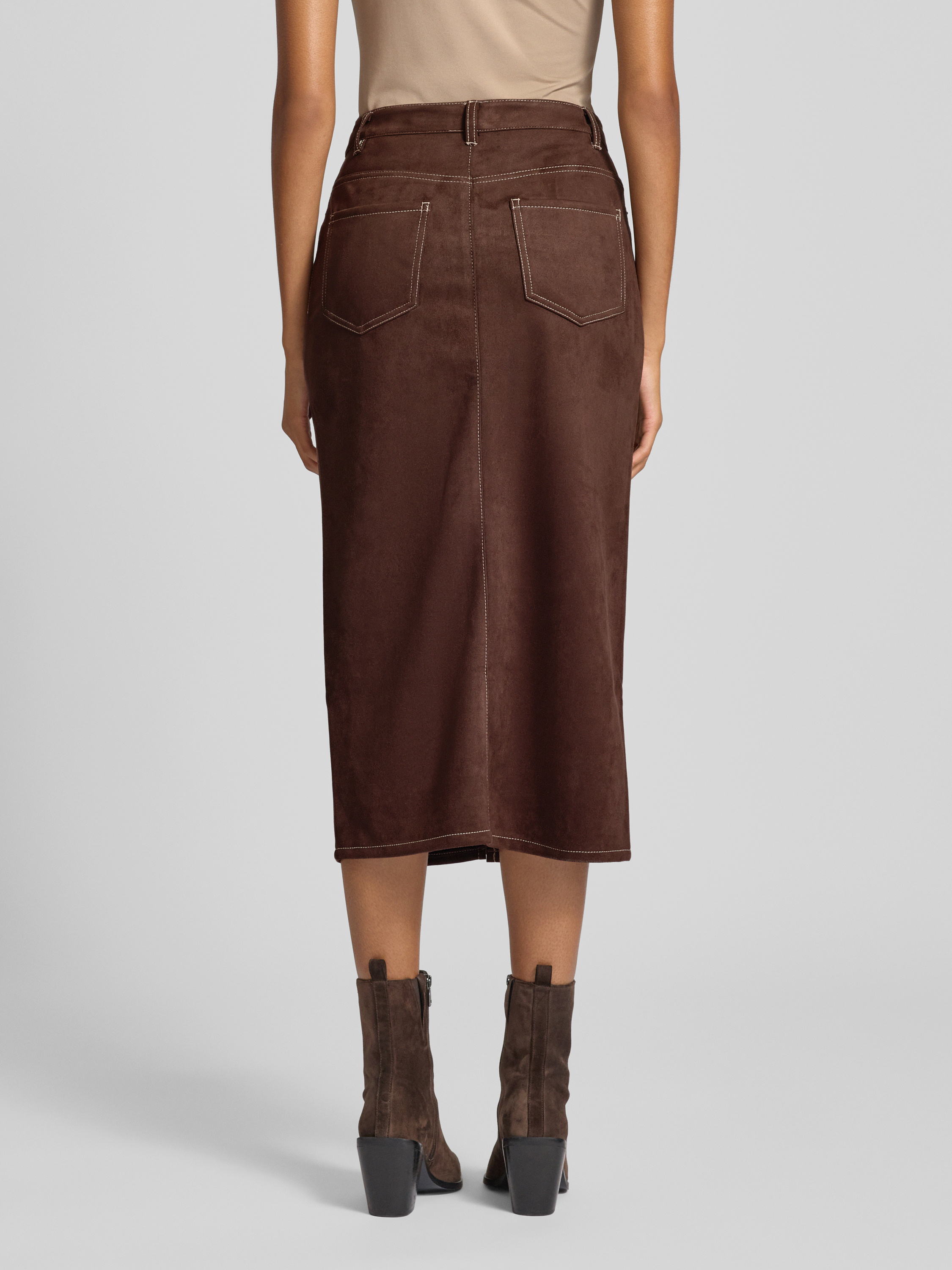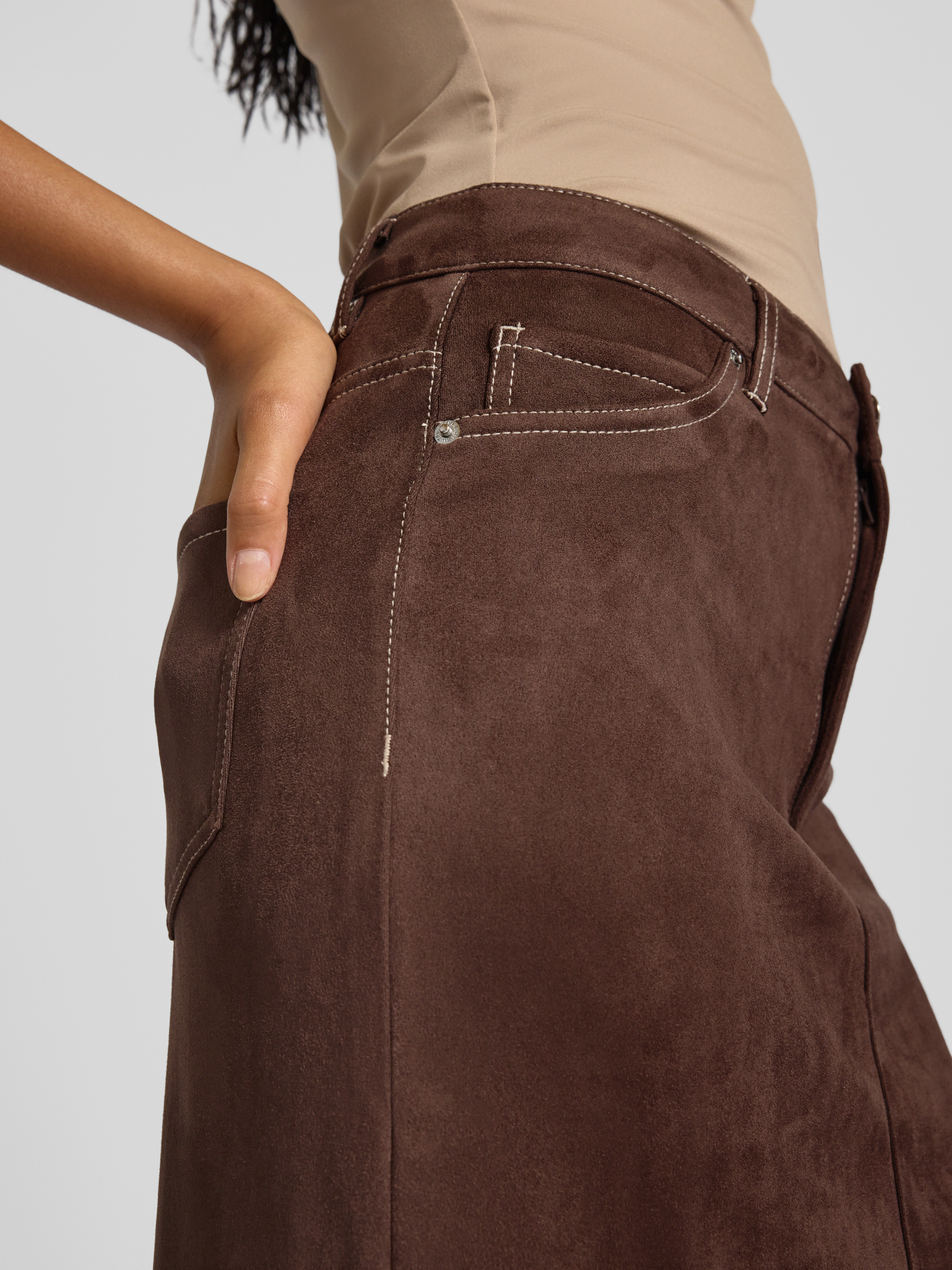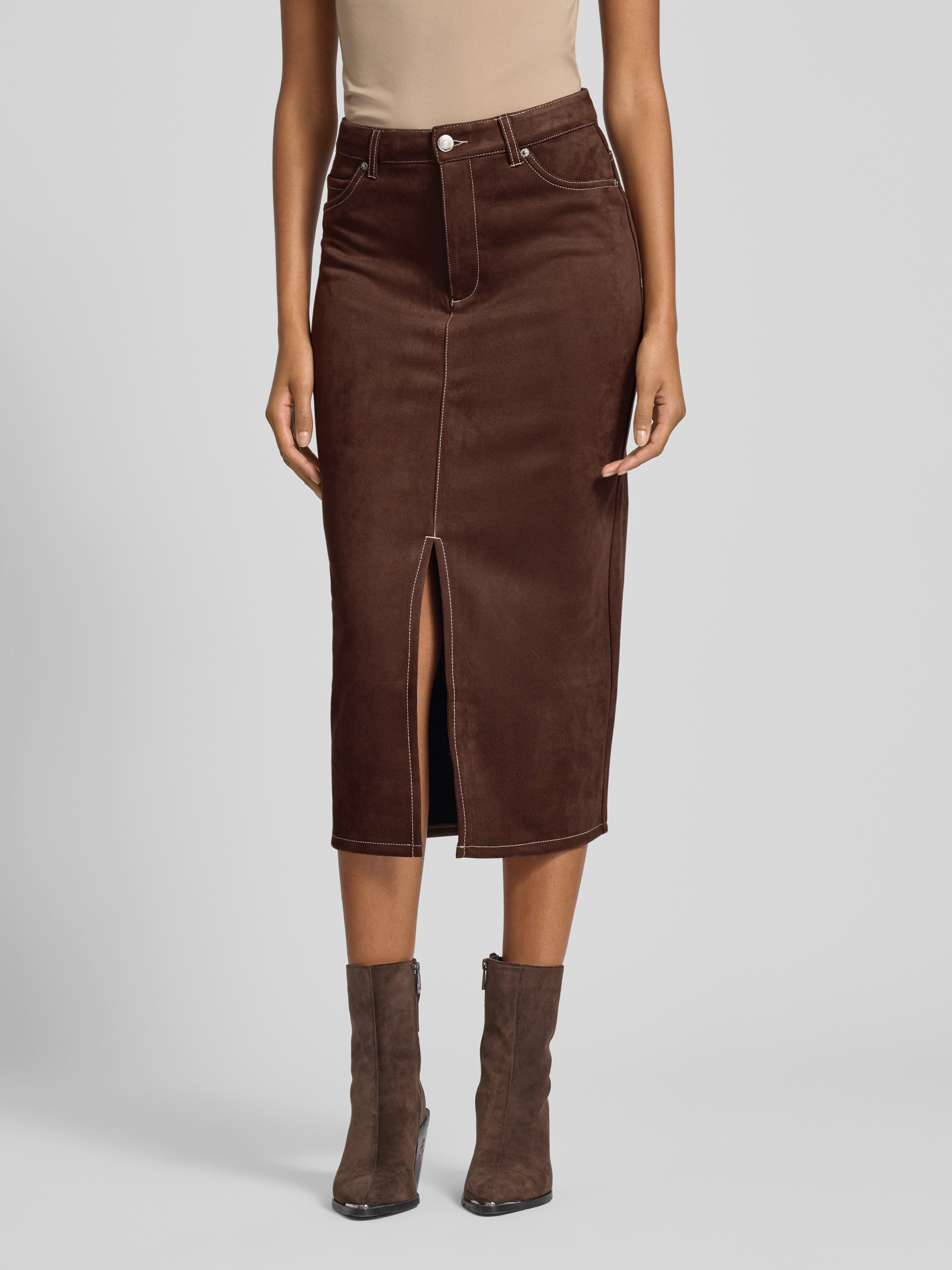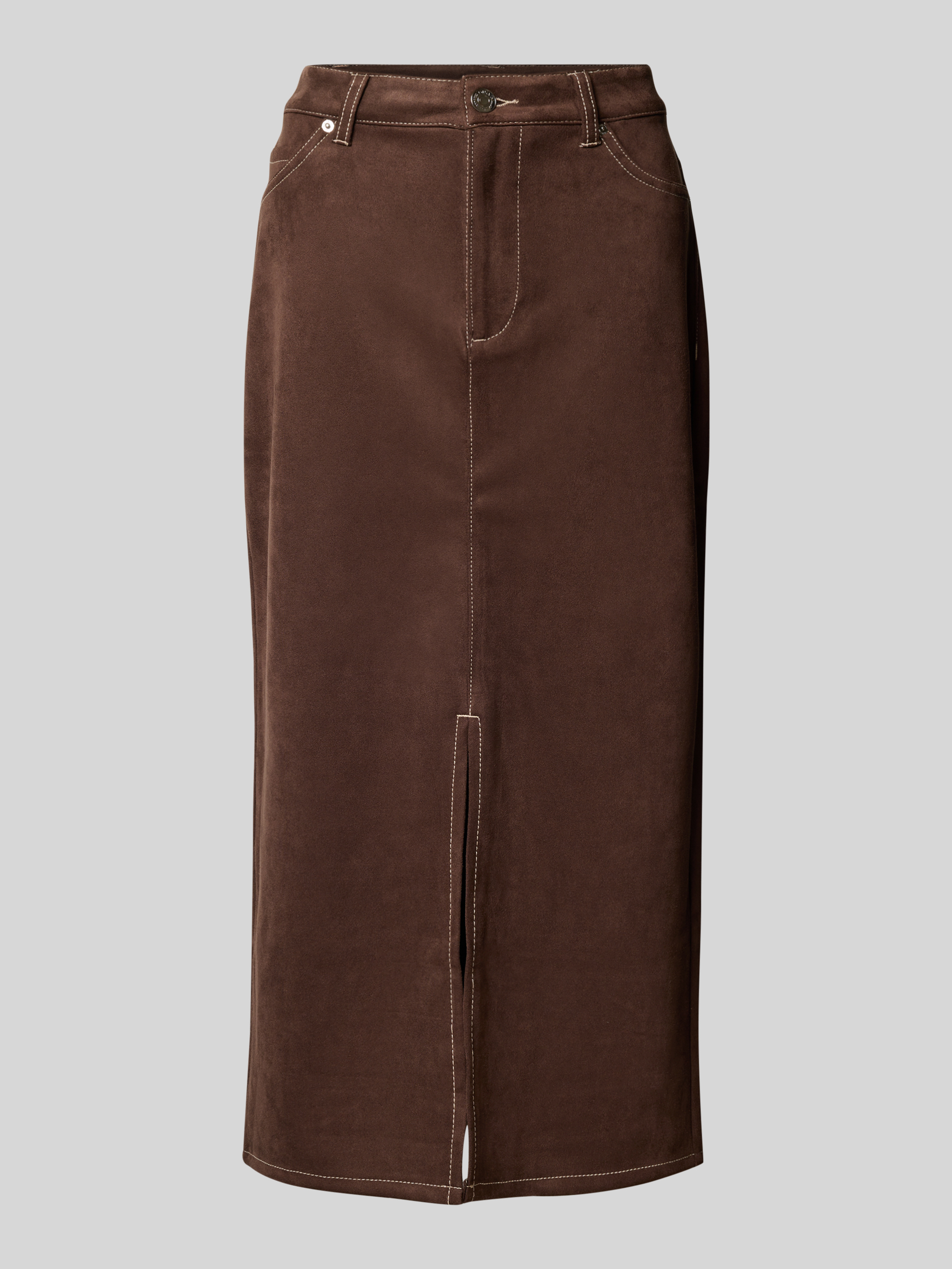 Spódnica midi ze szwami w kontrastowym kolorze model ‘STINA LIFE’ - czekoladowy