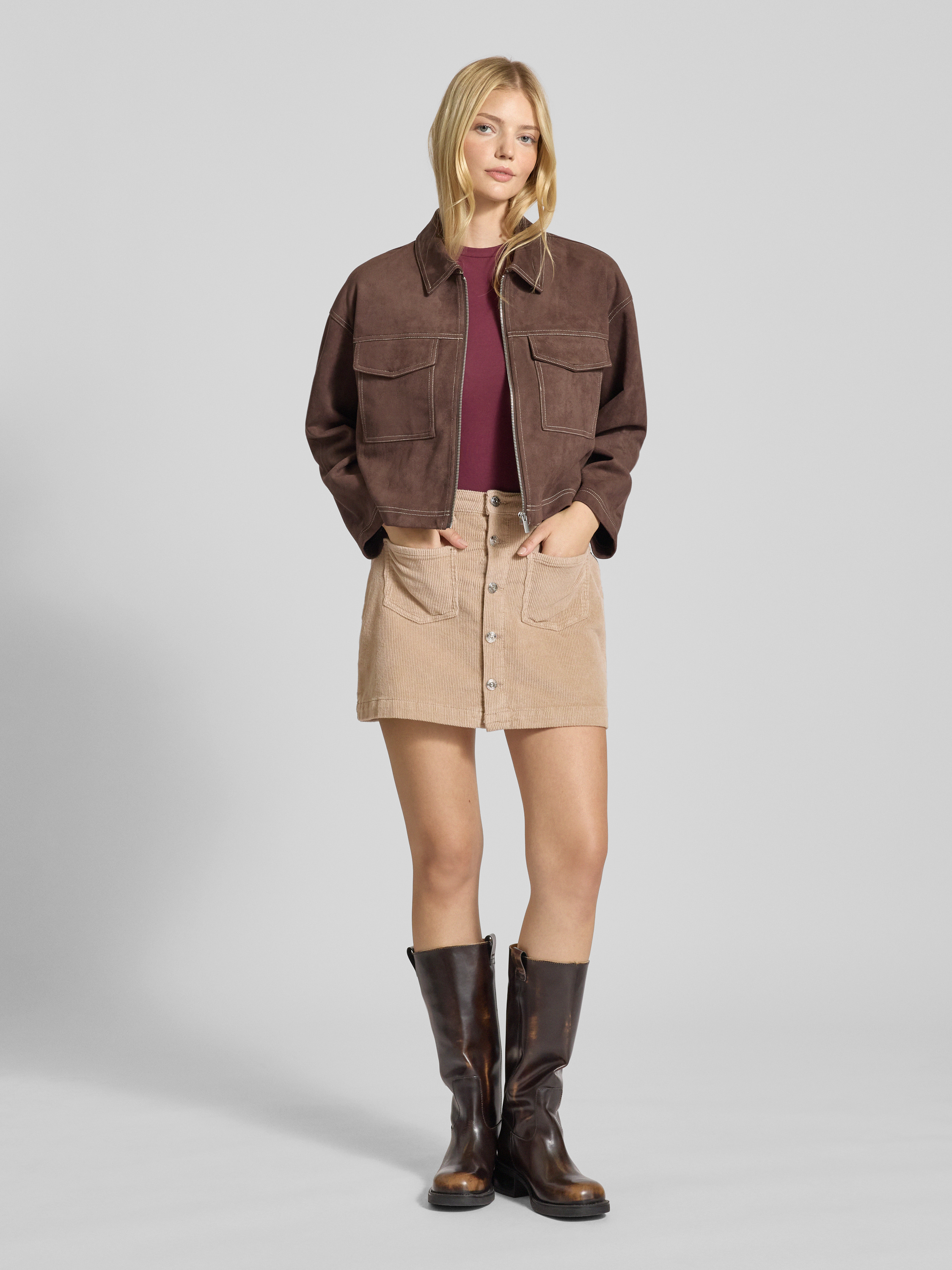 Spódnica mini sztruksowa z mieszanki bawełny model ‘AMAZING GLOBAL’ - piaskowy
