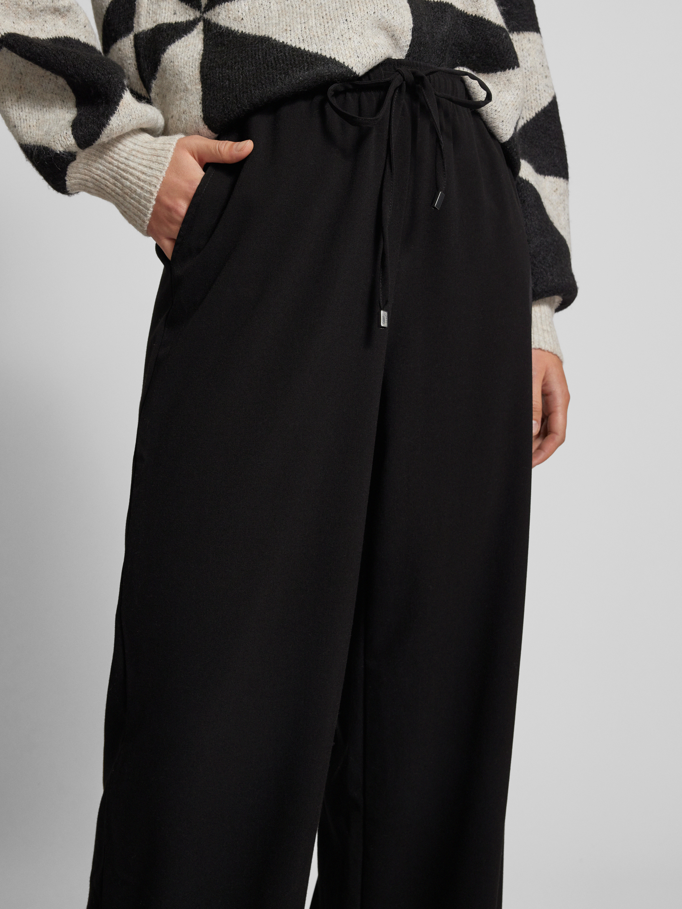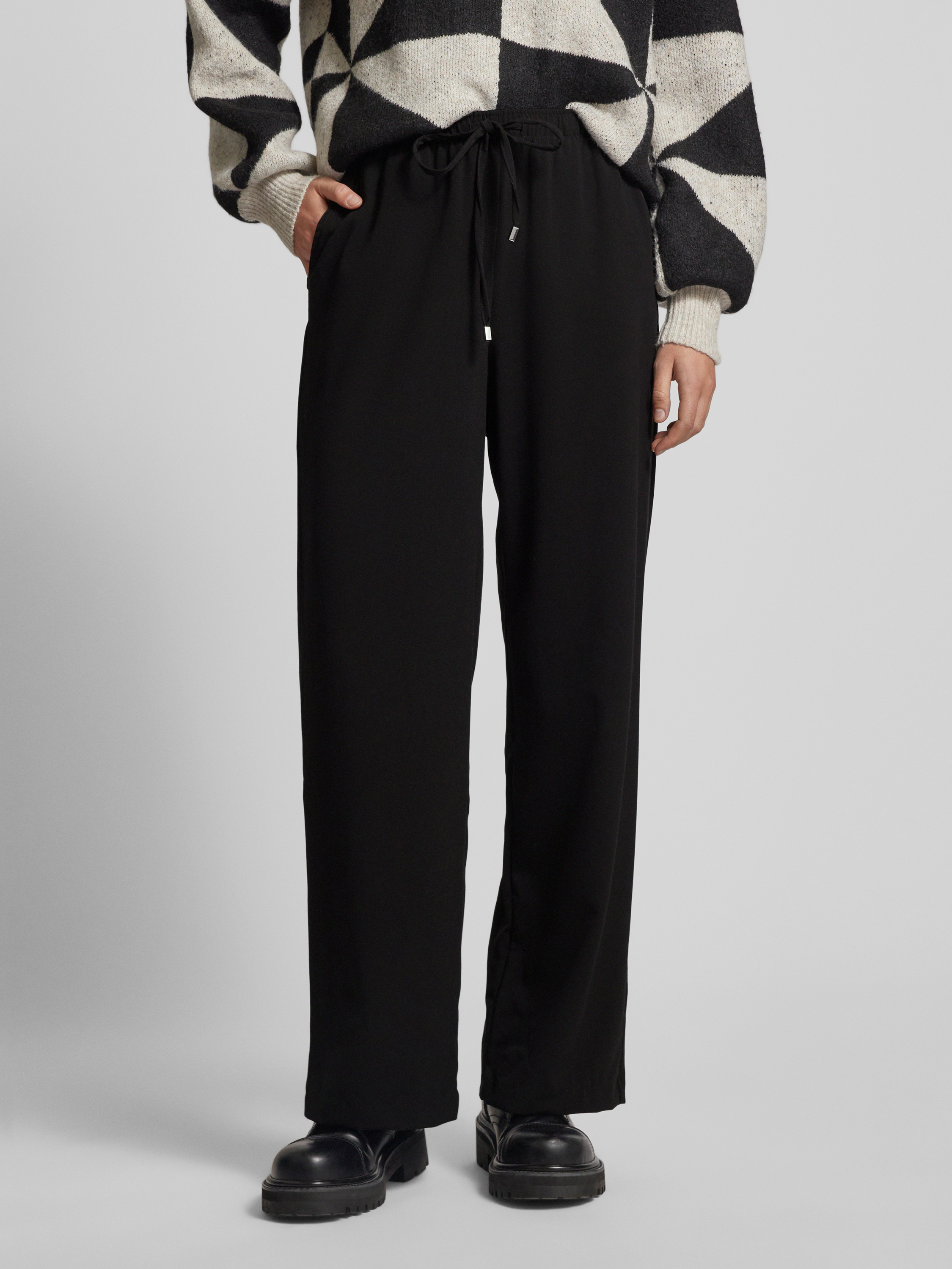 Spodnie materiałowe o kroju baggy fit z elastycznym pasem model ‘ISADORA’ - czarny