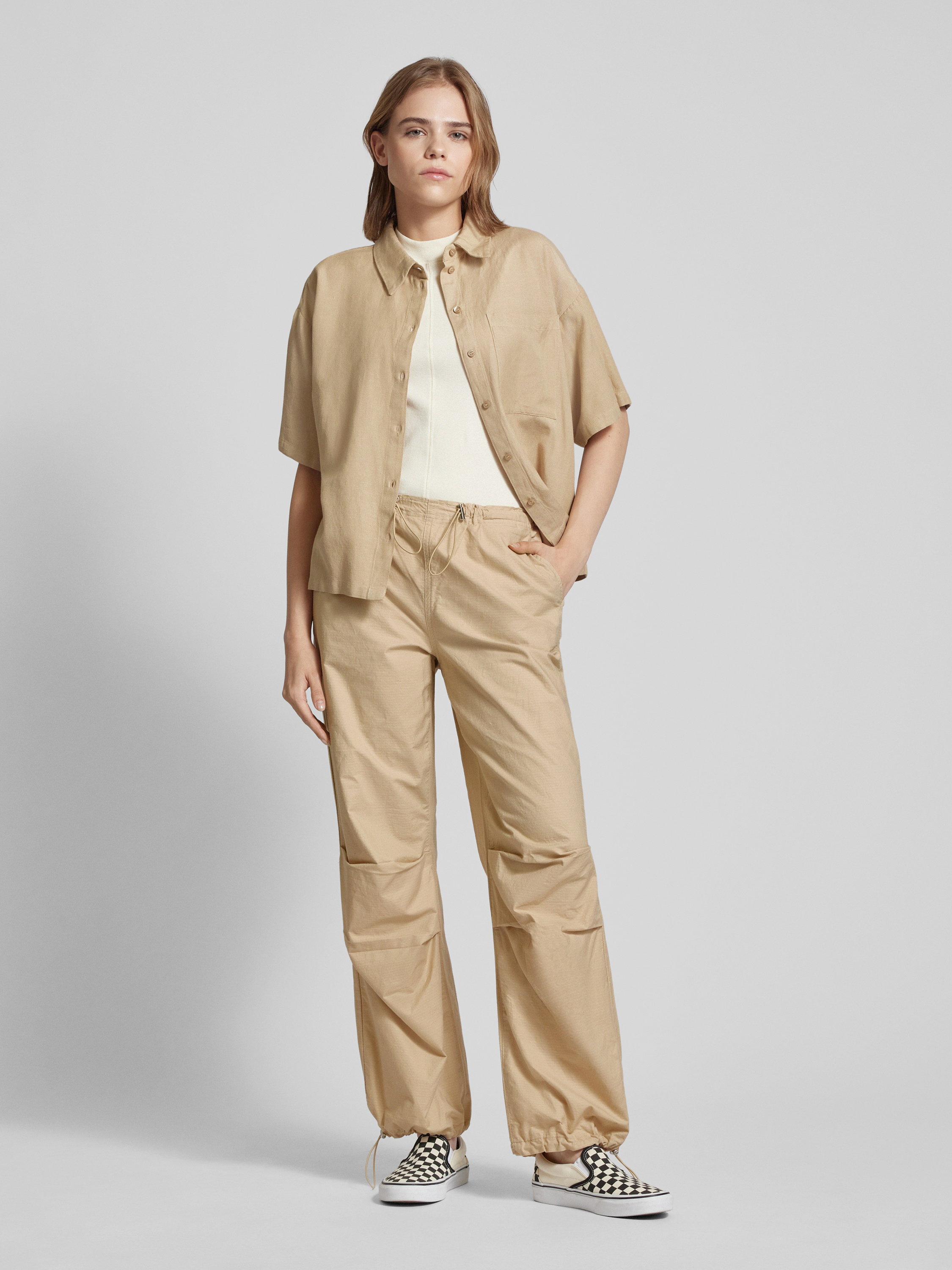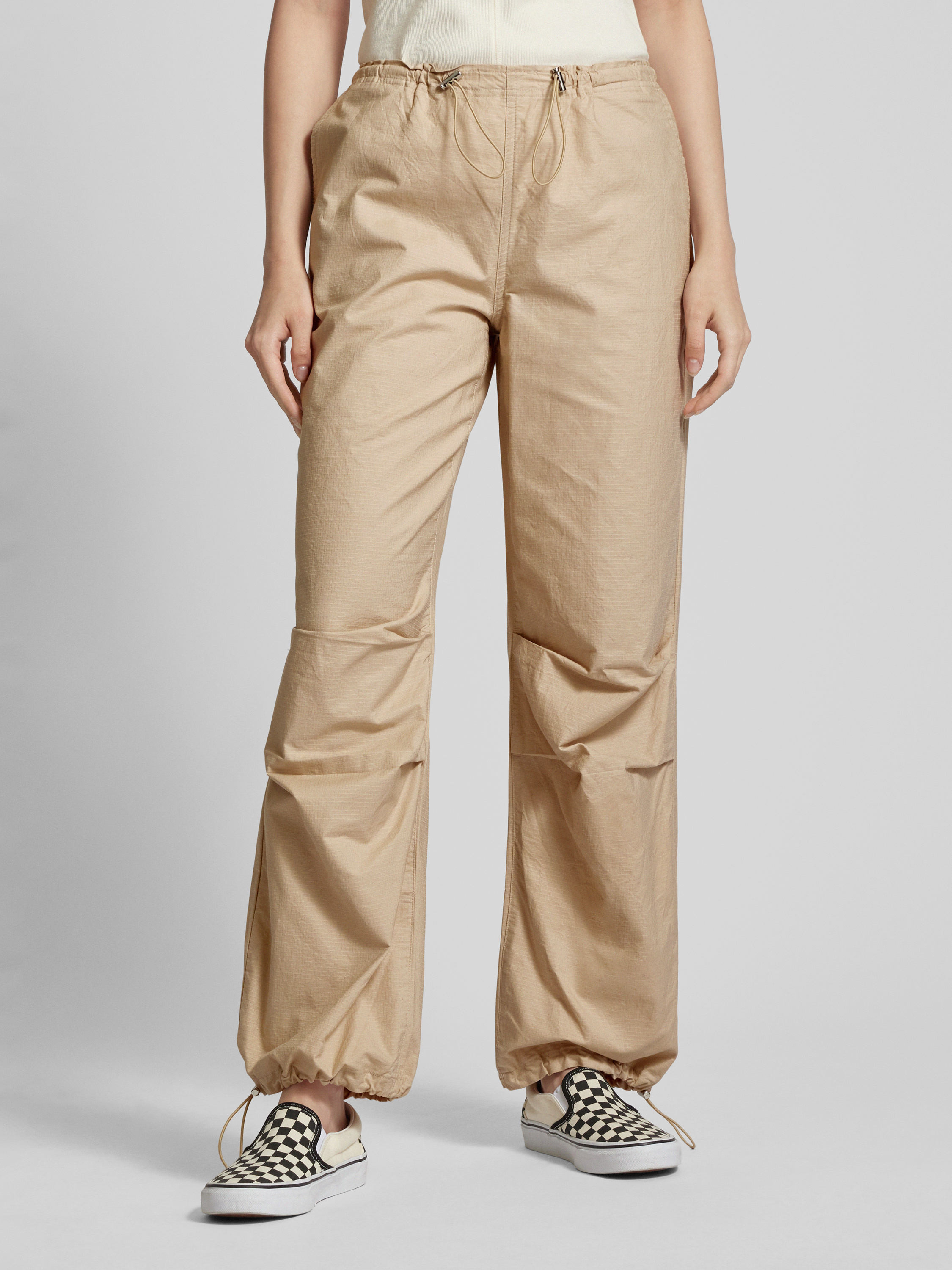 Spodnie o kroju baggy fit z tunelami model ‘ECHO-LAIA’ - piaskowy