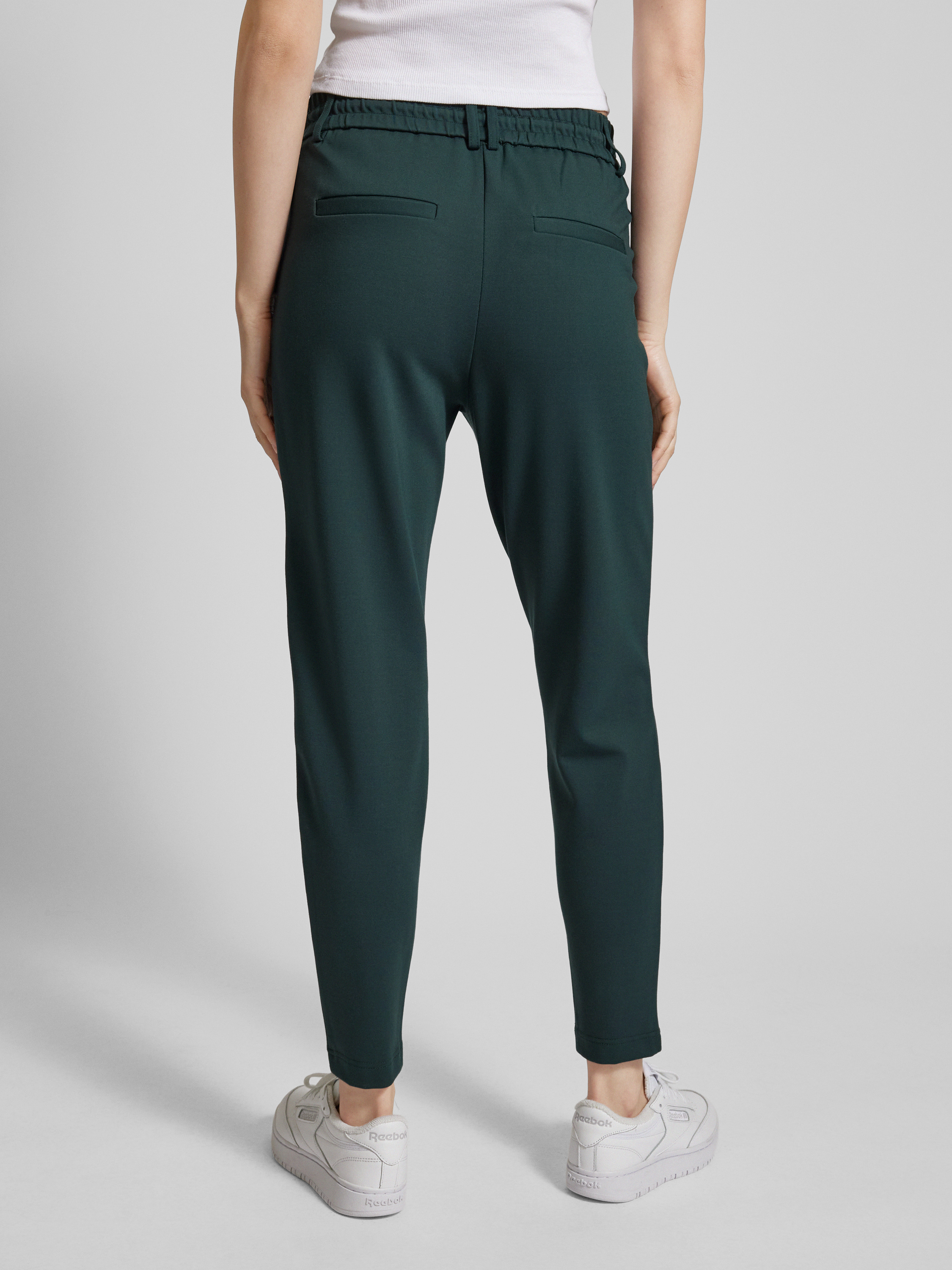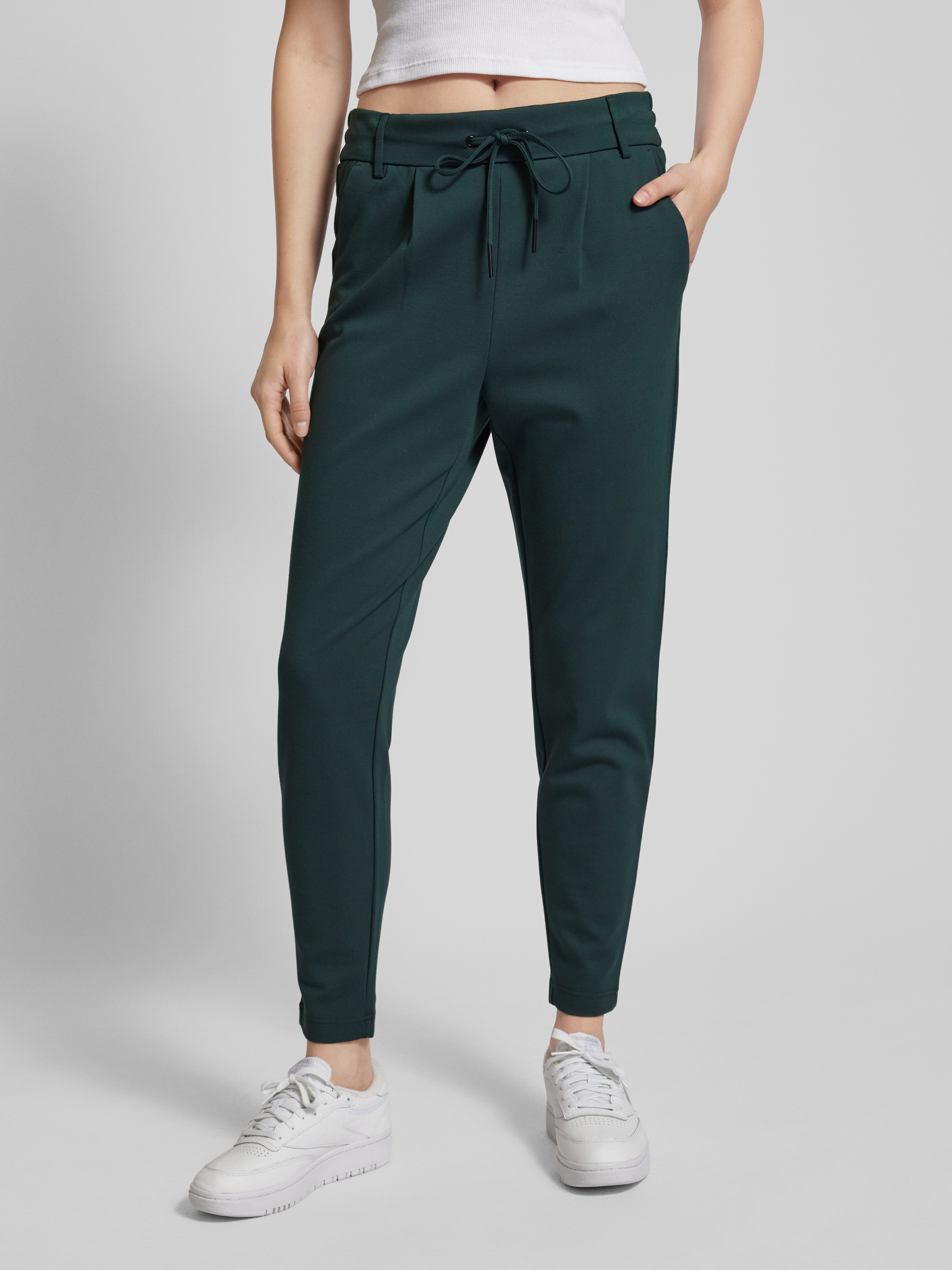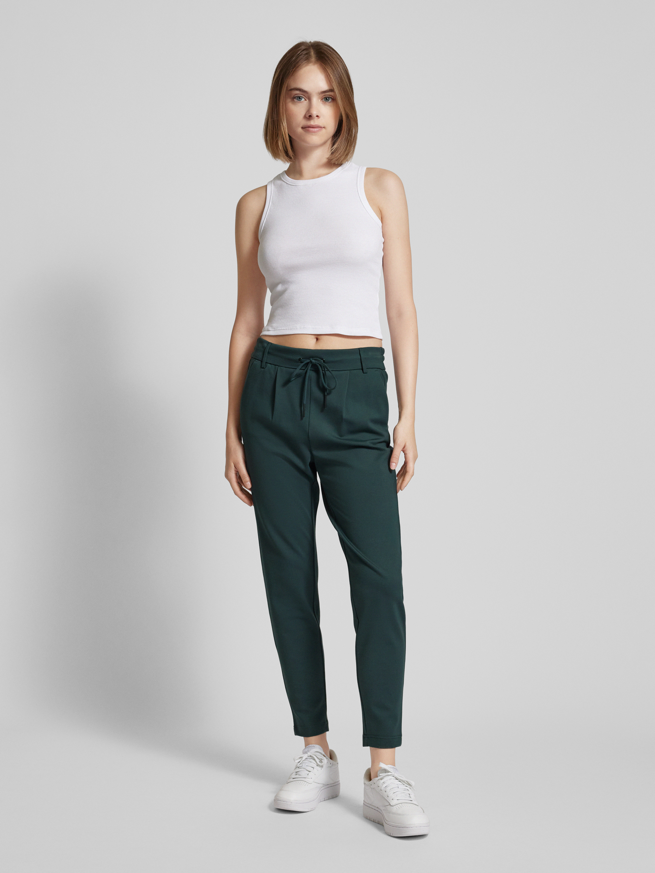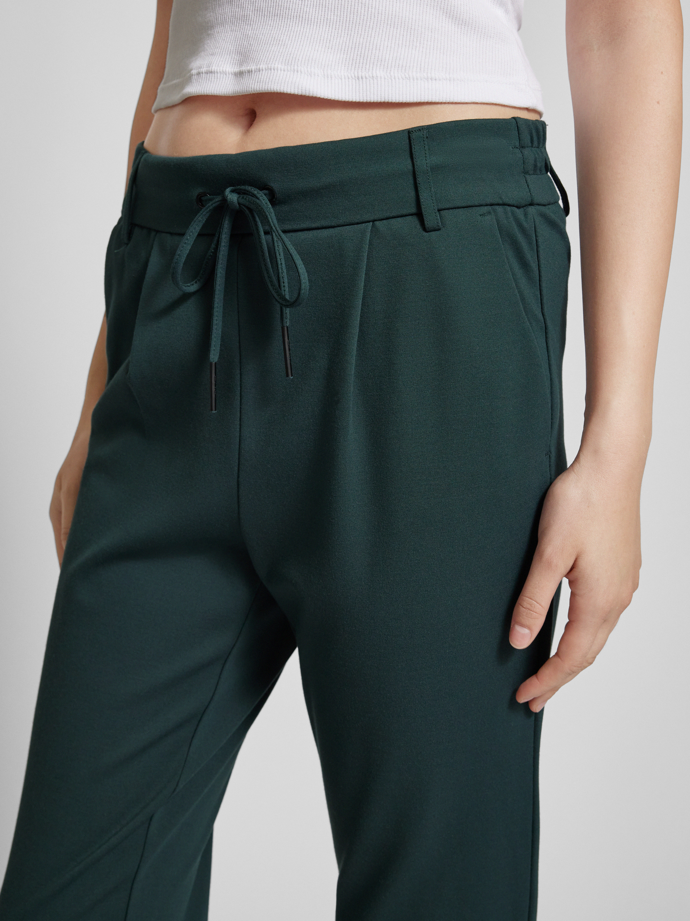 Spodnie o kroju slim fit z zakładkami w pasie i tunelem model ‘POPTRASH EASY’ - butelkowy zielony