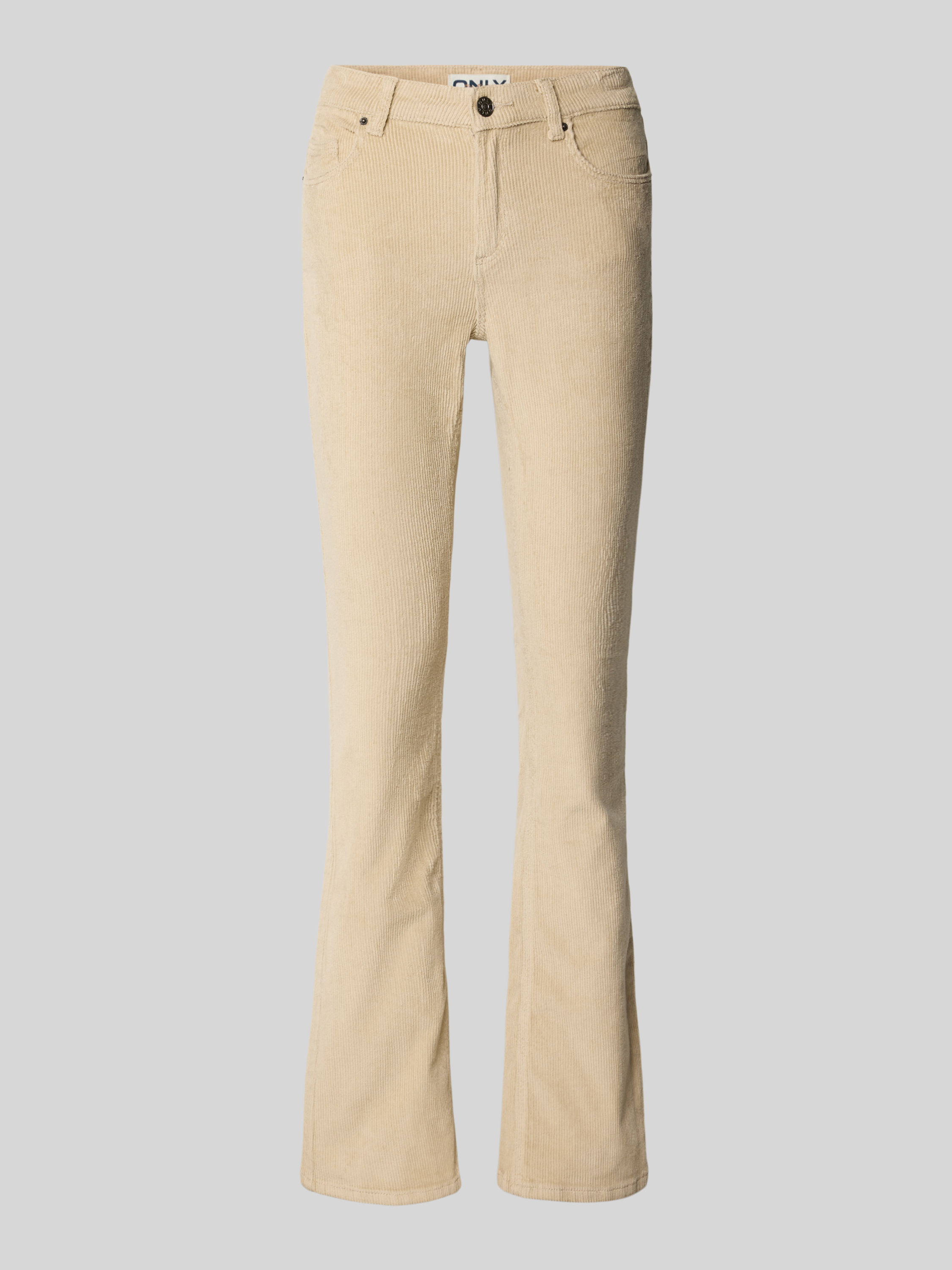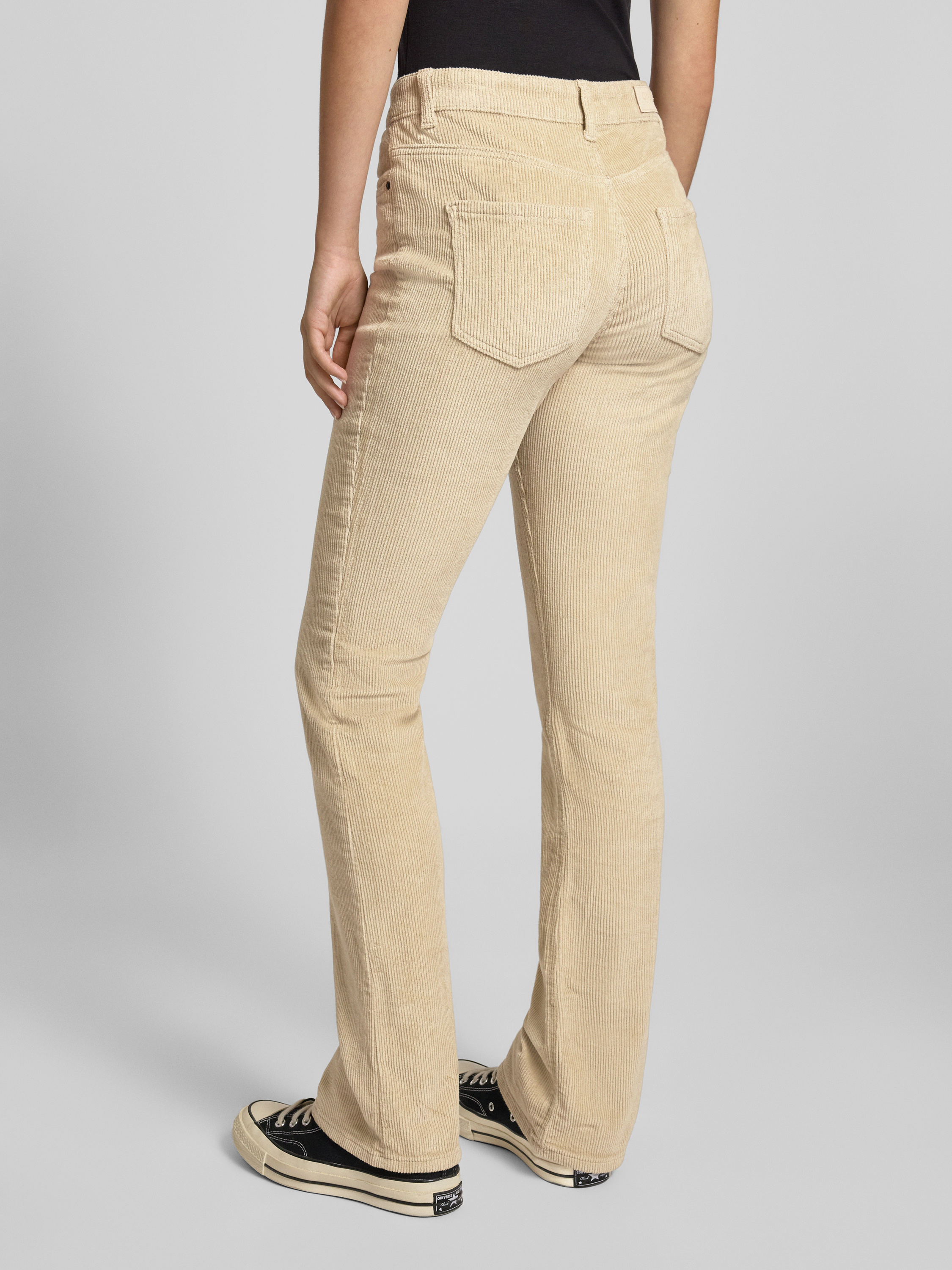 Spodnie sztruksowe o rozkloszowanym kroju z mieszanki bawełny model ‘MARY’ - écru