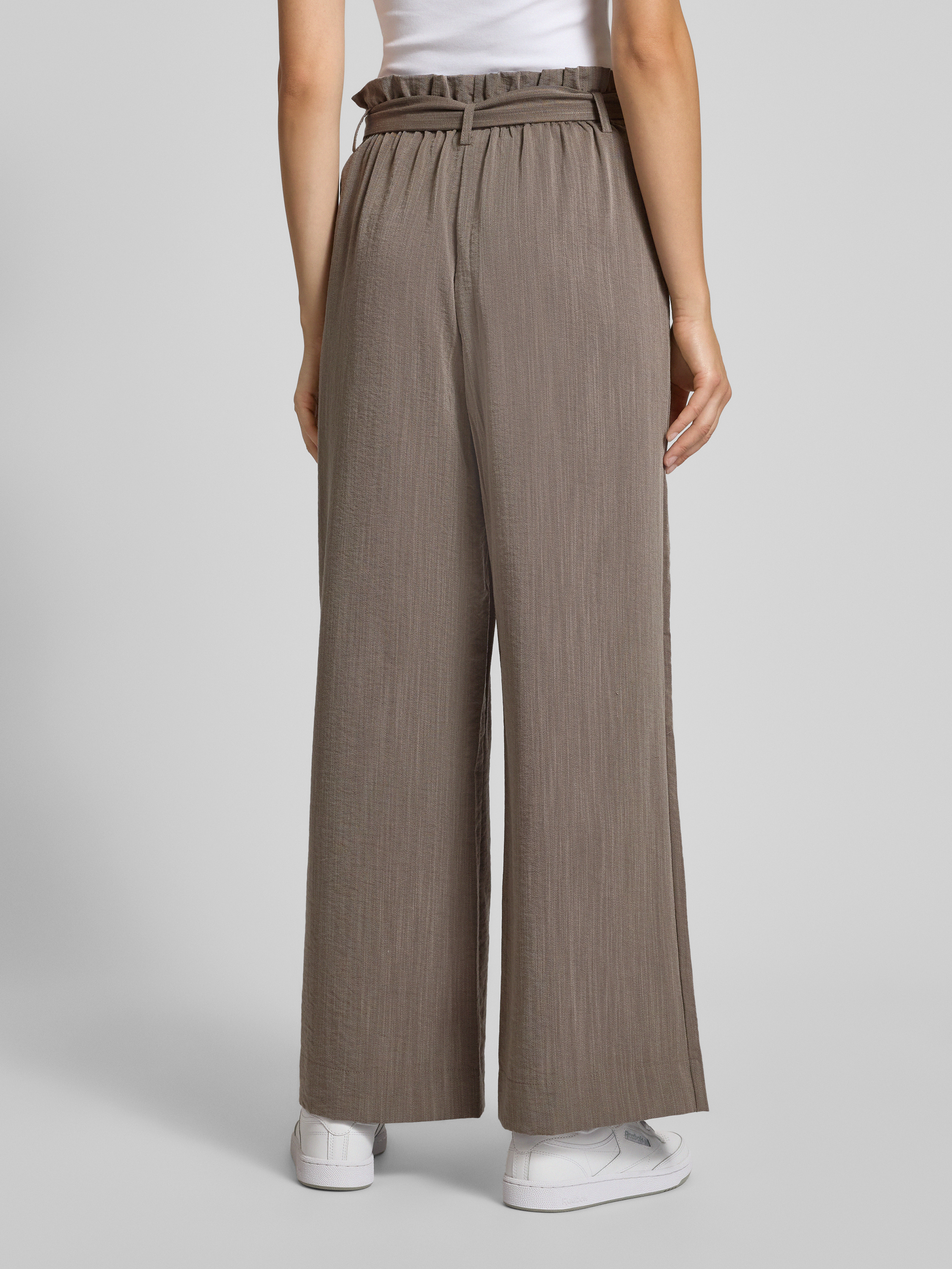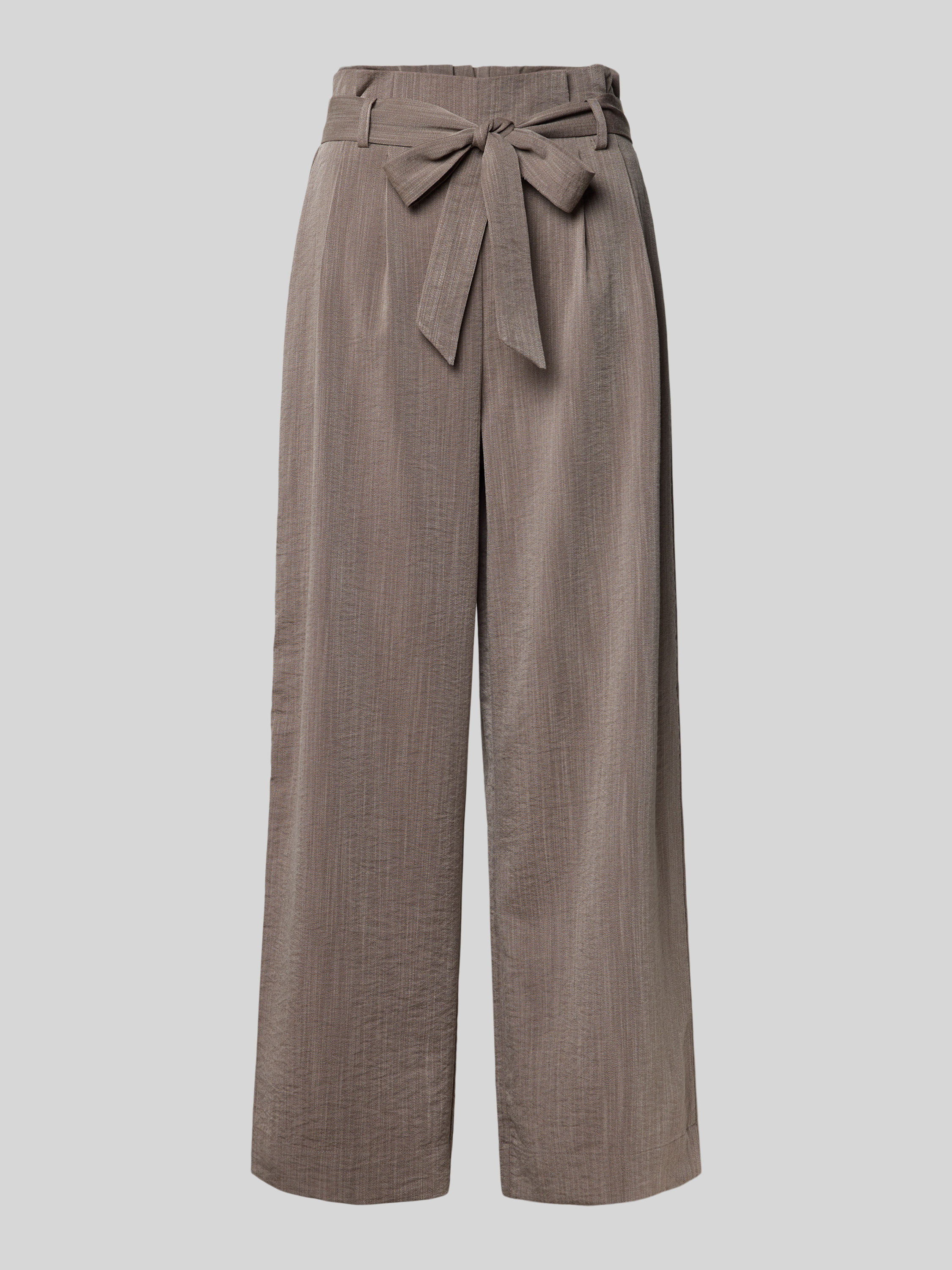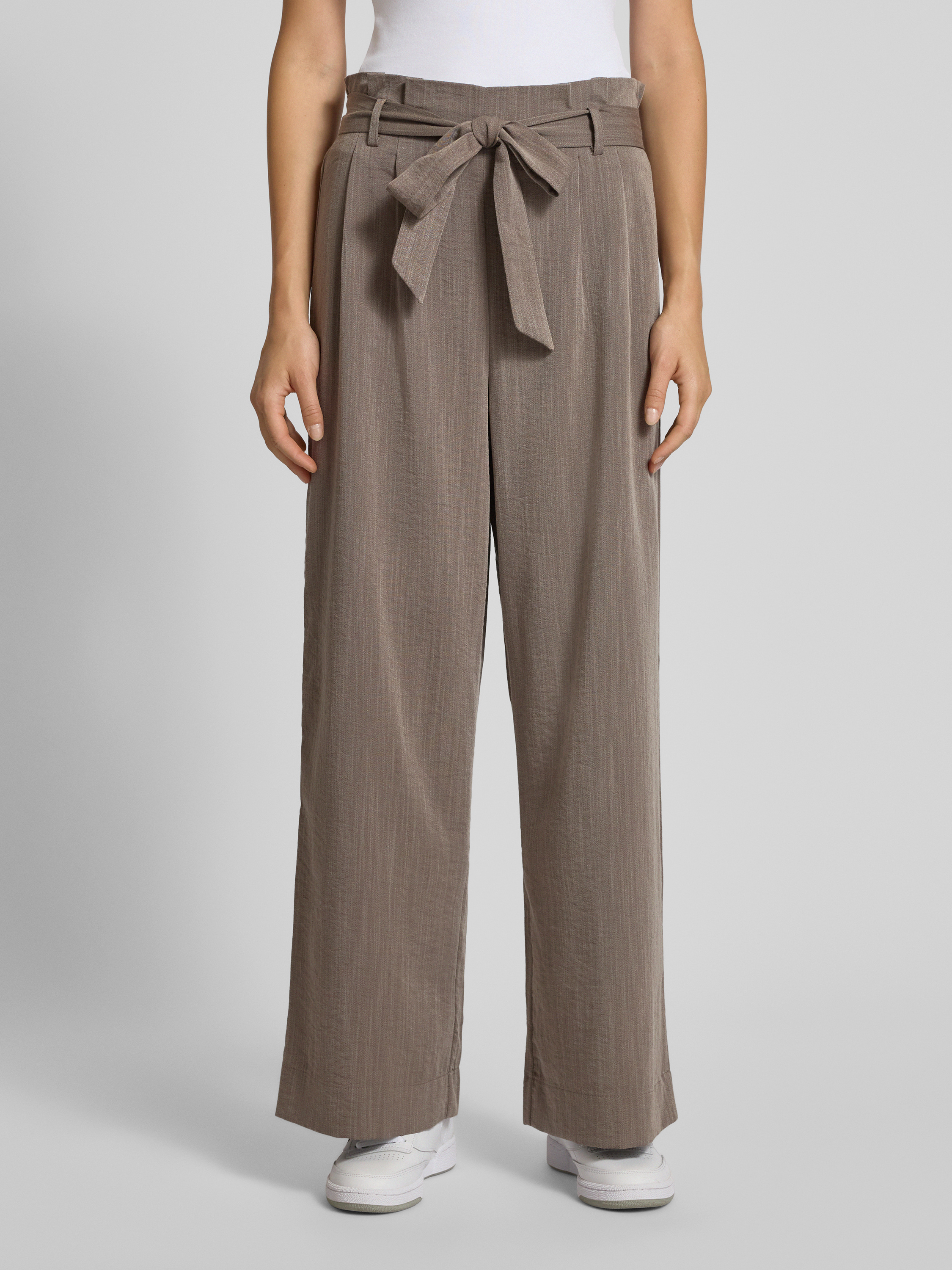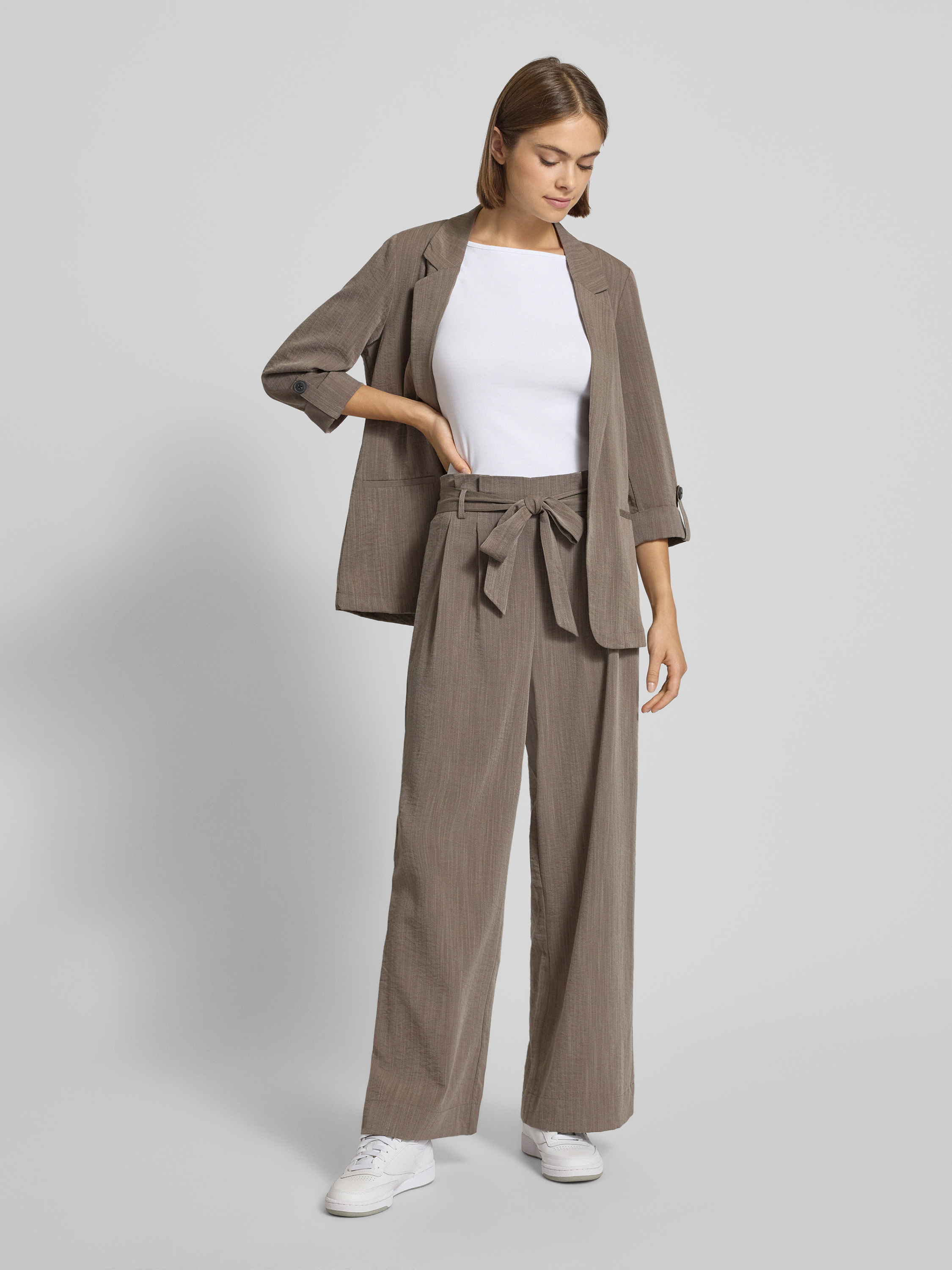 Spodnie z zakładkami w pasie i szerokimi nogawkami z mieszanki wiskozy model ‘MARSA’ - szarobrązowy melanż