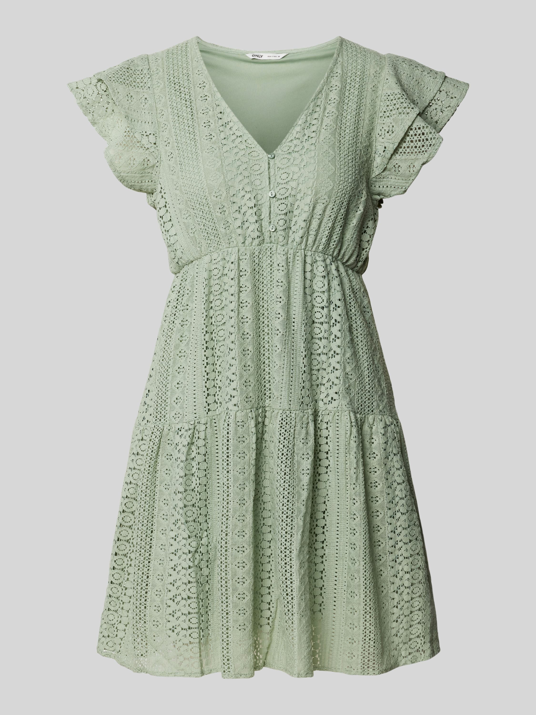 Sukienka koronkowa lekko rozkloszowana z czystej bawełny model ‘HELENA’ - miętowy