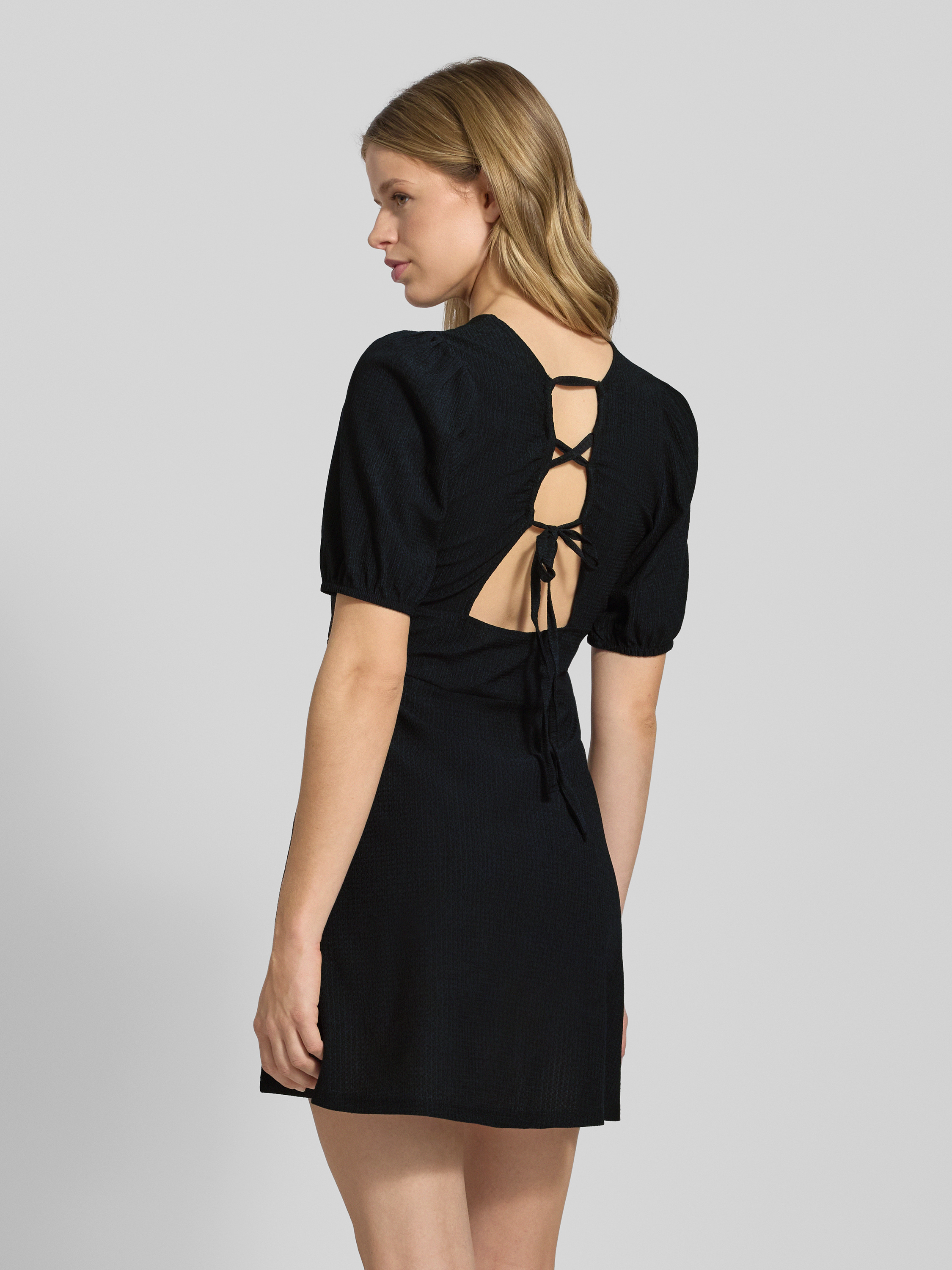 Sukienka mini lekko rozkloszowana z dekoltem na plecach model ‘SURI’ - czarny