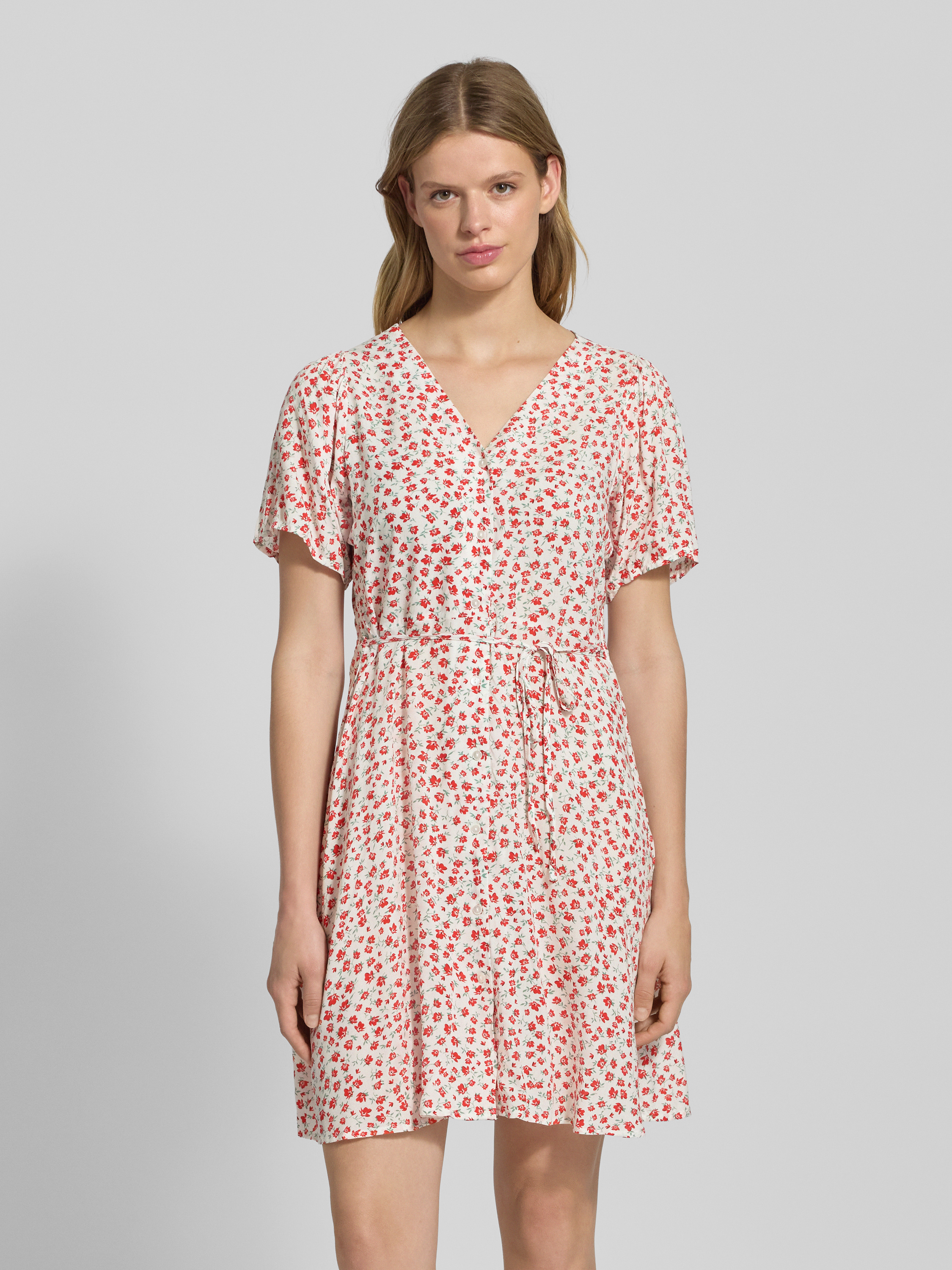 Sukienka mini o kroju regular fit z czystej wiskozy model ‘EVIDA’ - czerwony