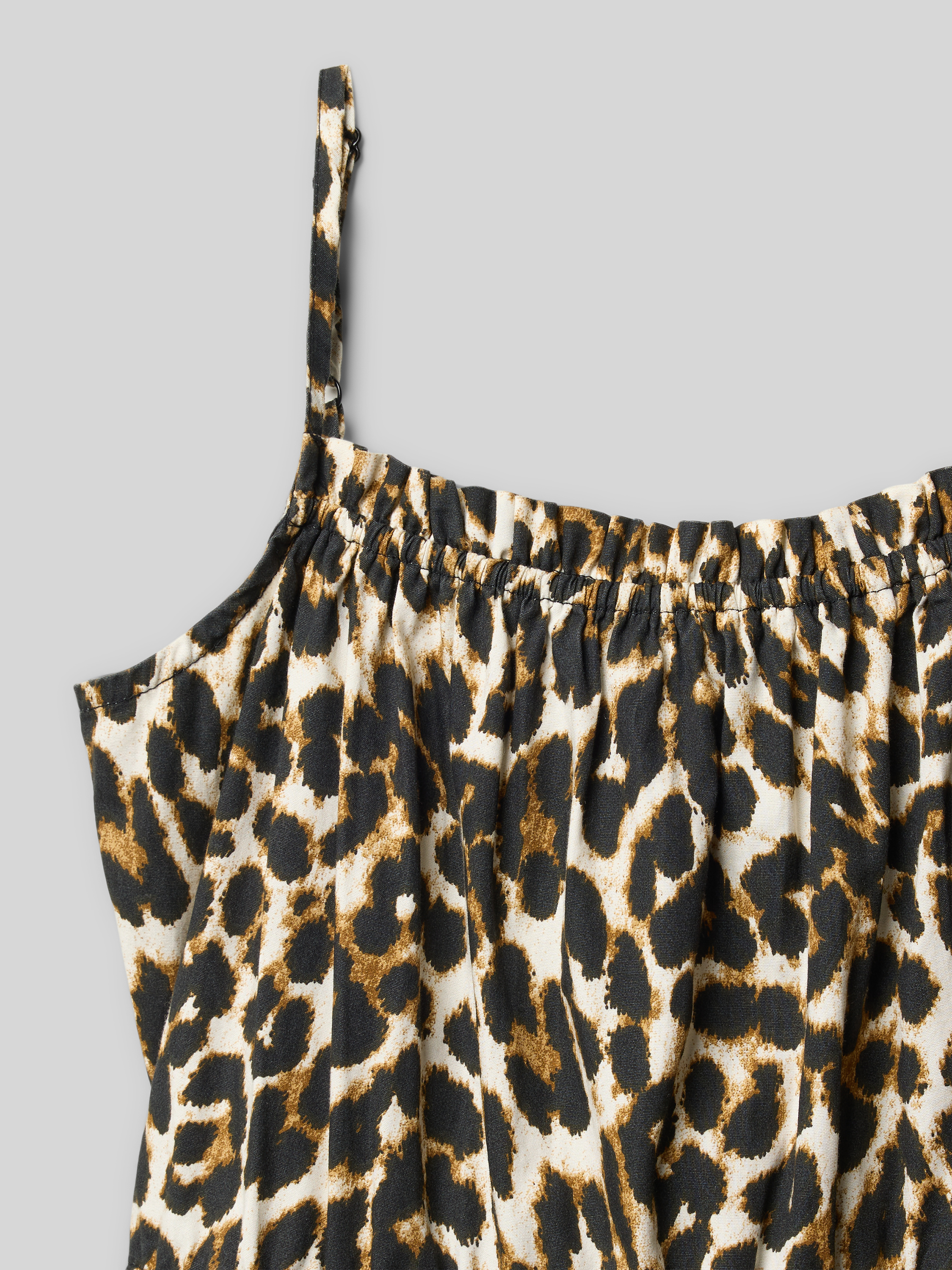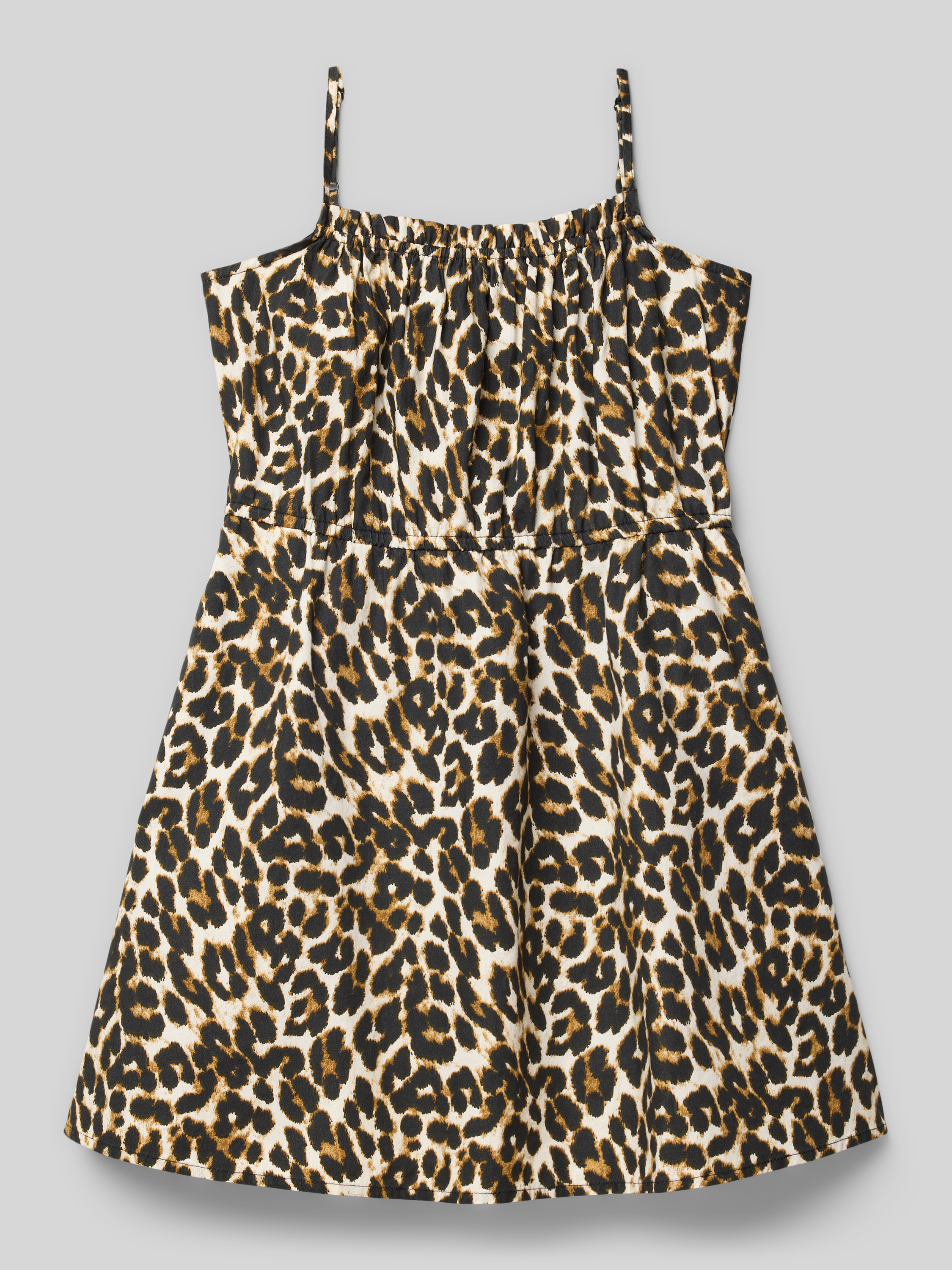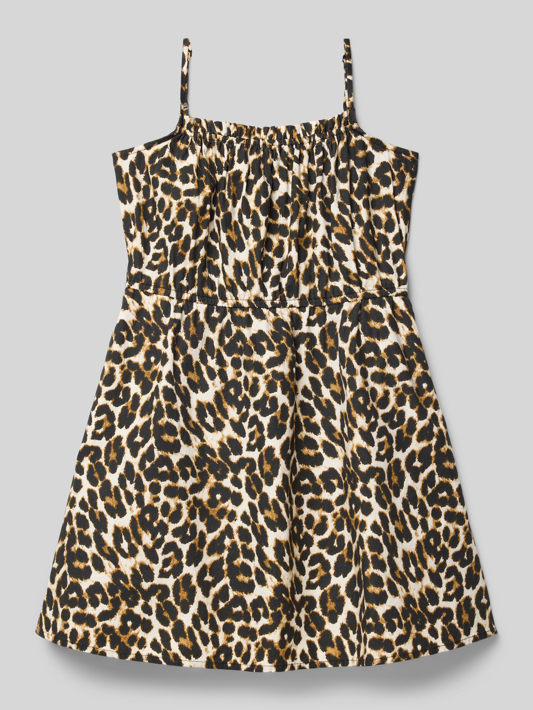 Sukienka mini taliowana ze wzorem na całej powierzchni model ‘CLARA’ - camel
