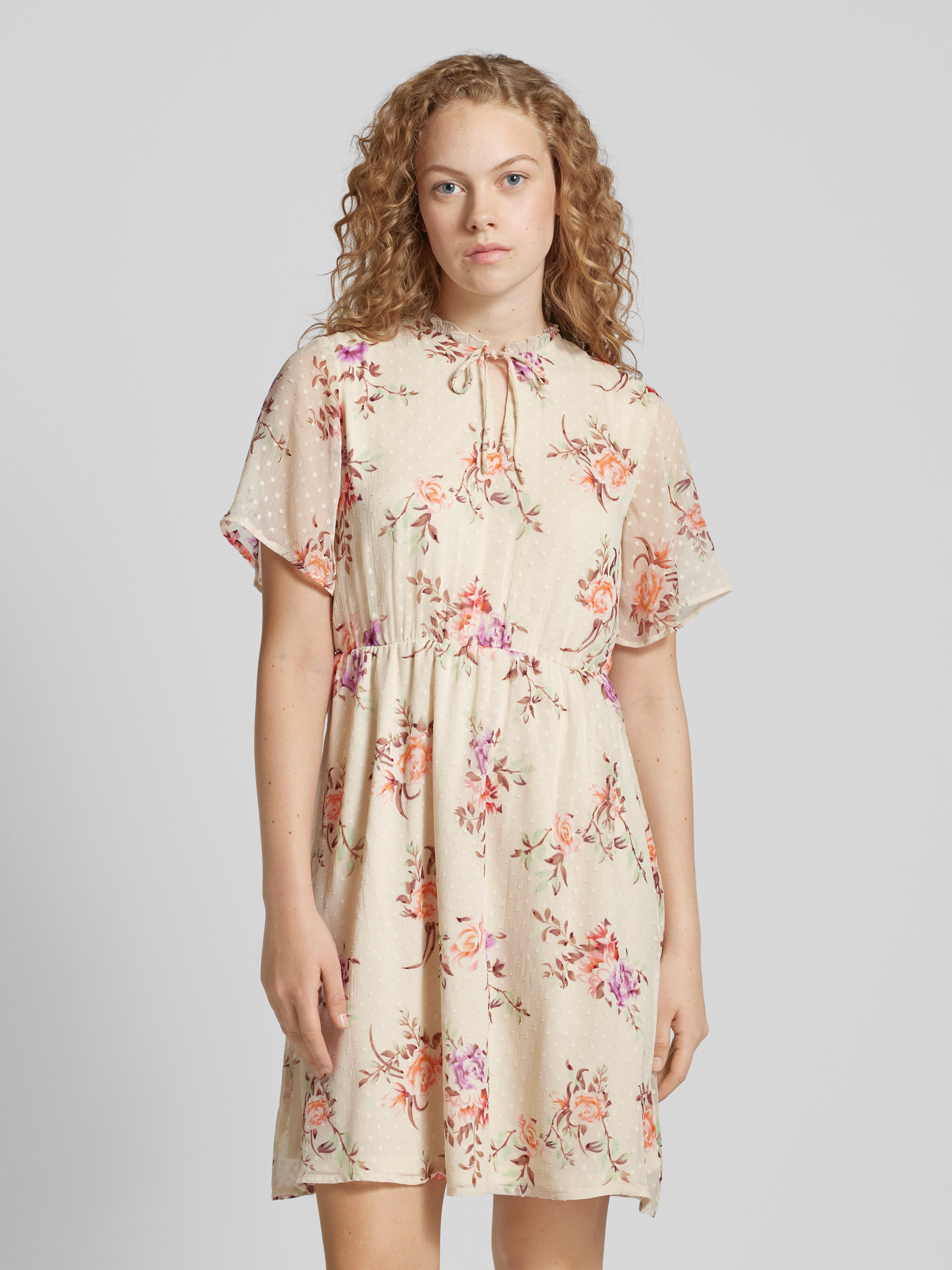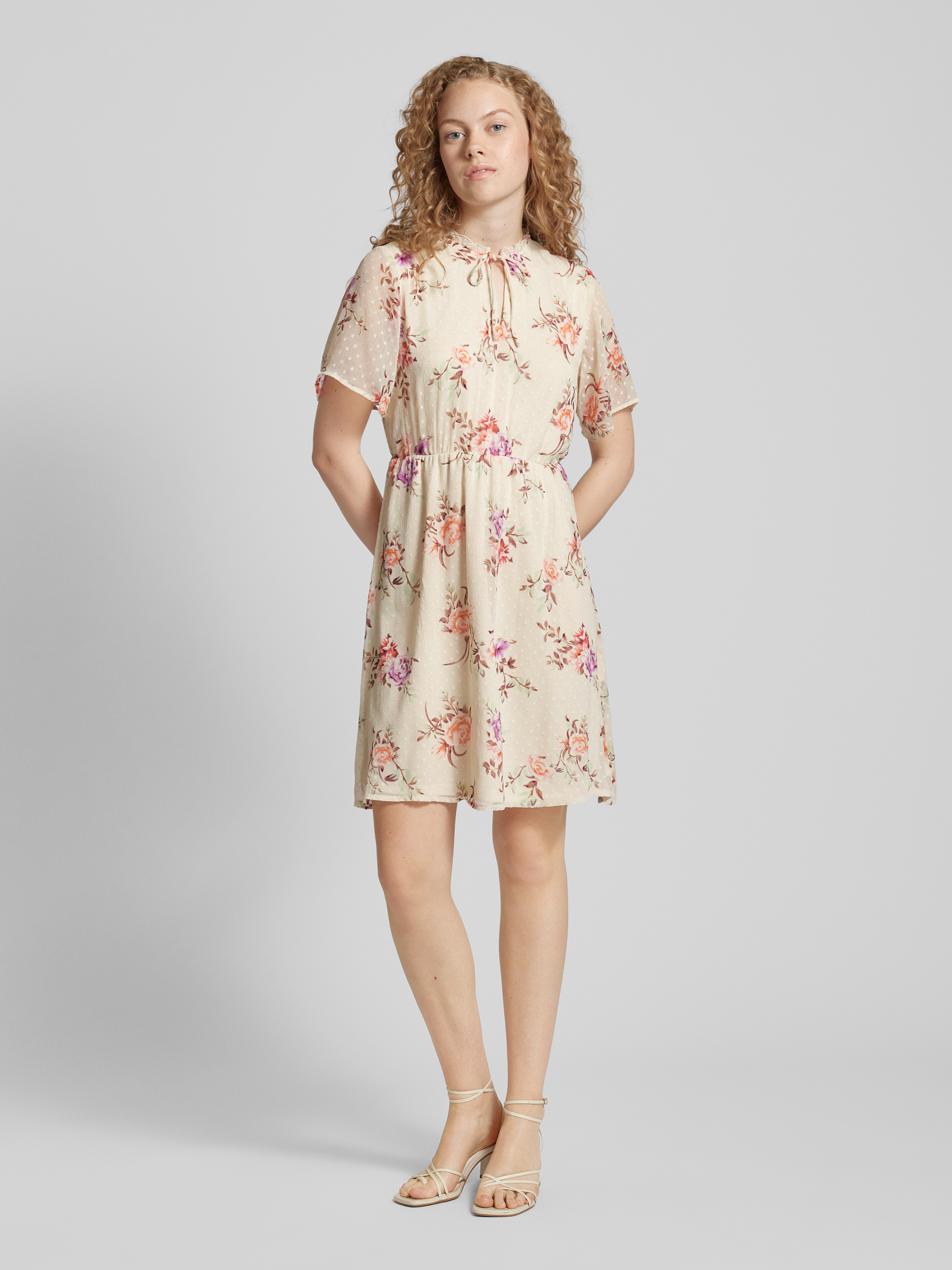 Sukienka o długości do kolan ze wzorem na całej powierzchni model ‘AIDA ELISA’ - écru