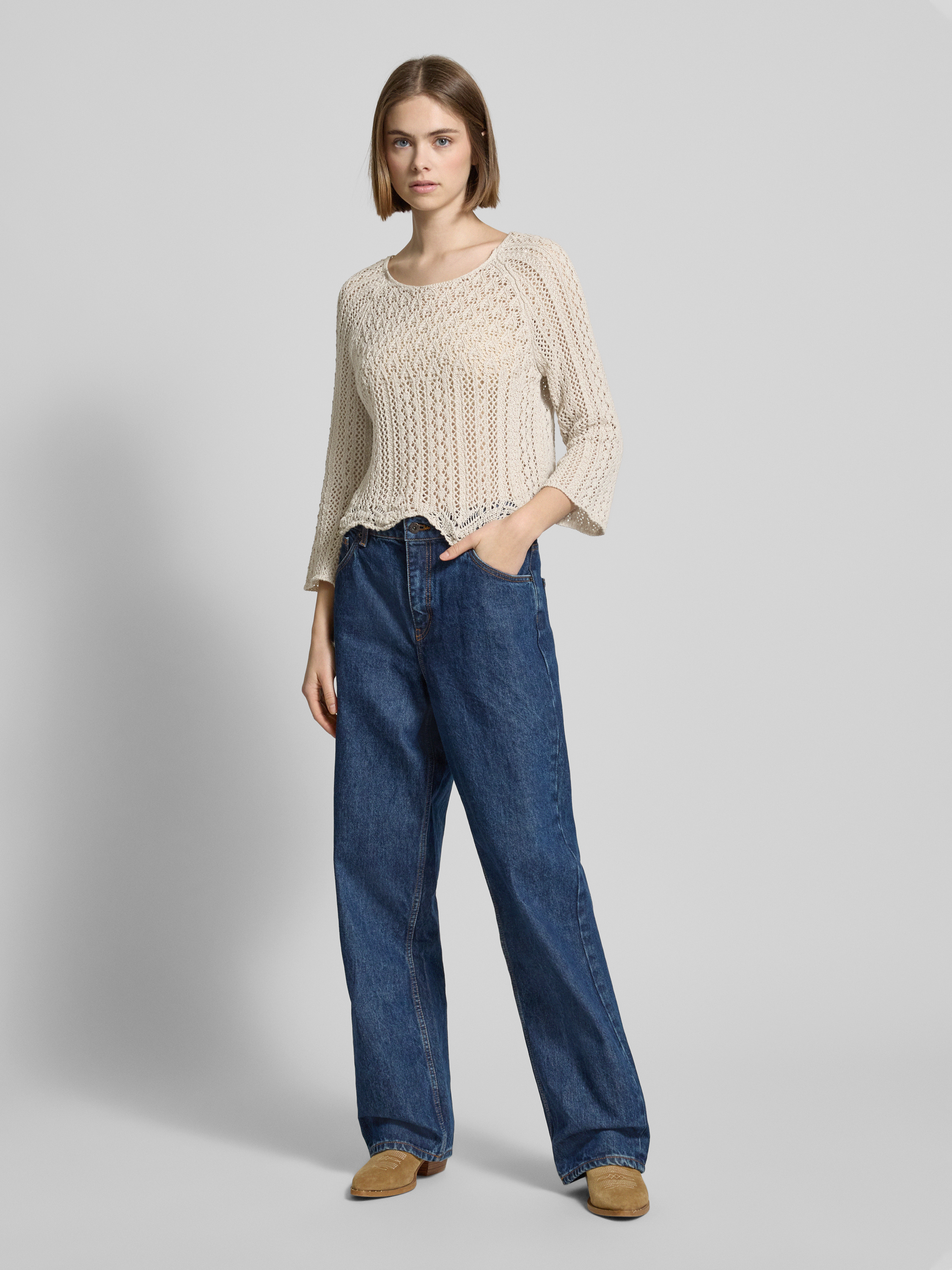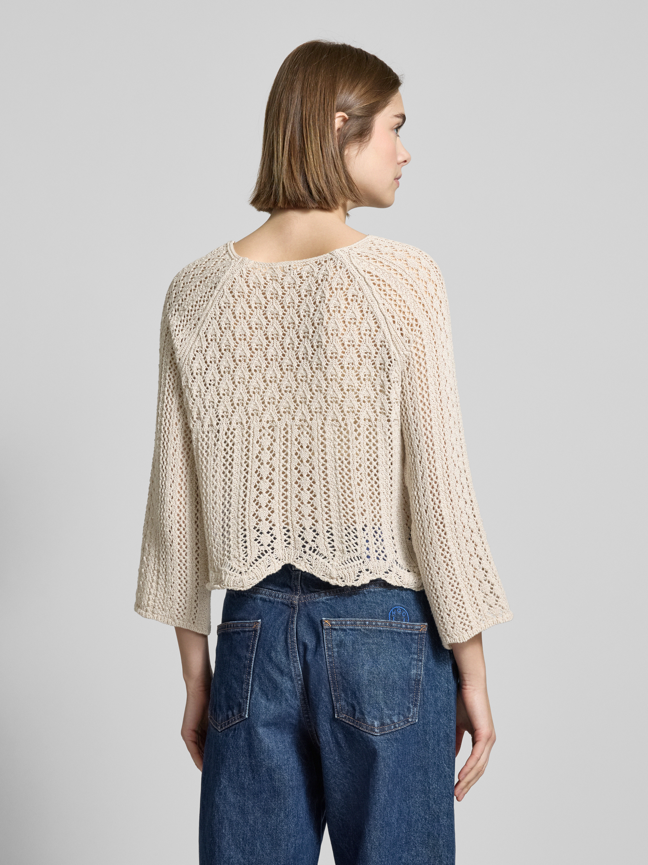 Sweter krótki z dzianiny z dodatkiem bawełny model ‘NOLA’ - piaskowy