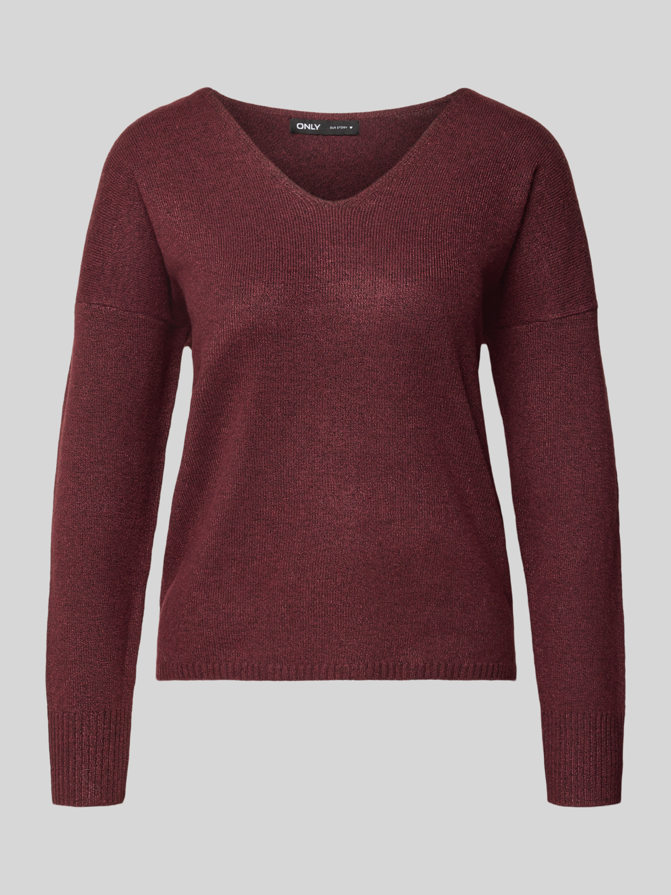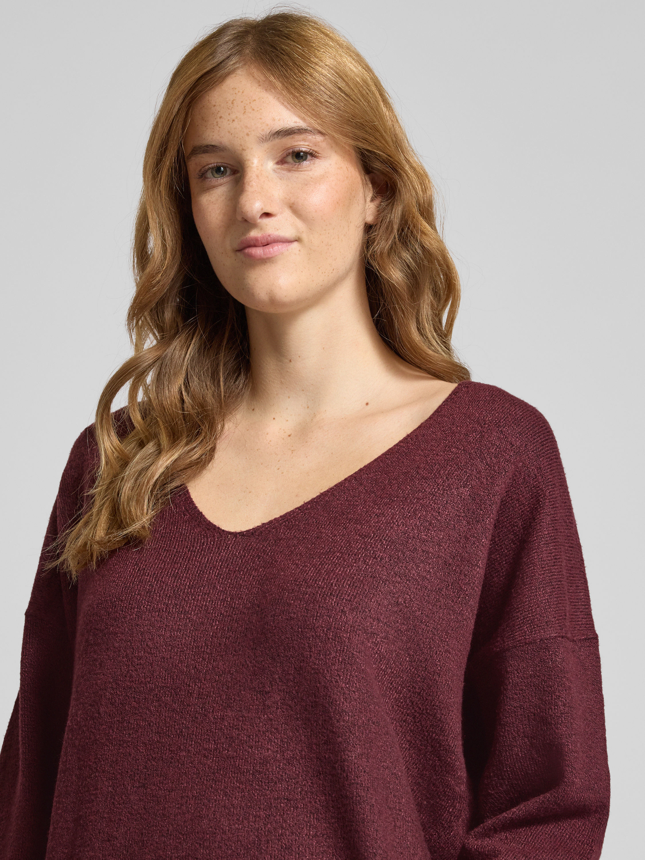 Sweter o kroju regular fit z dekoltem w serek model ‘RICA LIFE’ - bordowy melanż