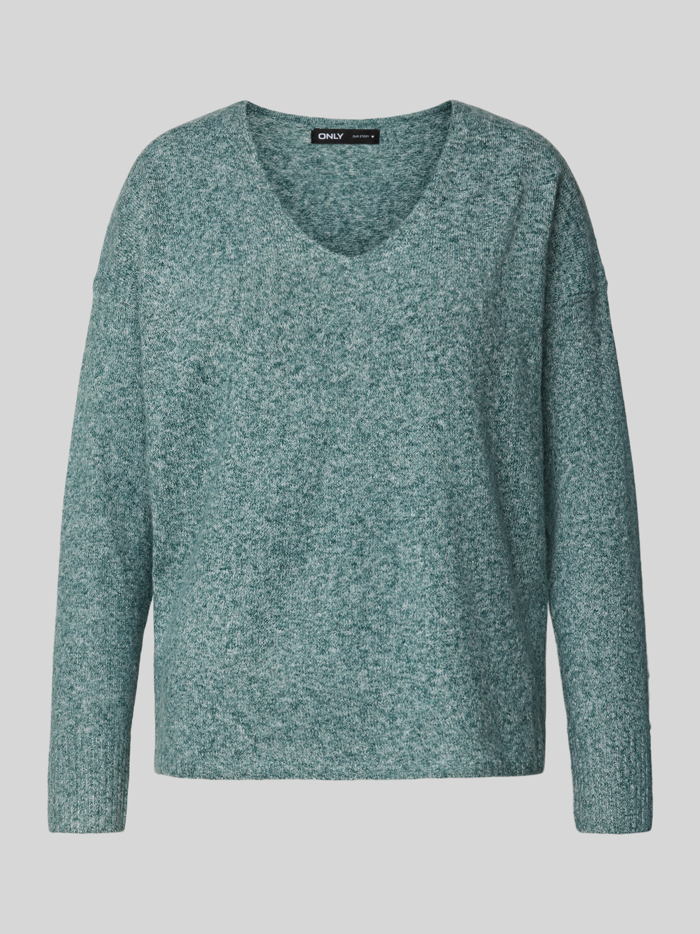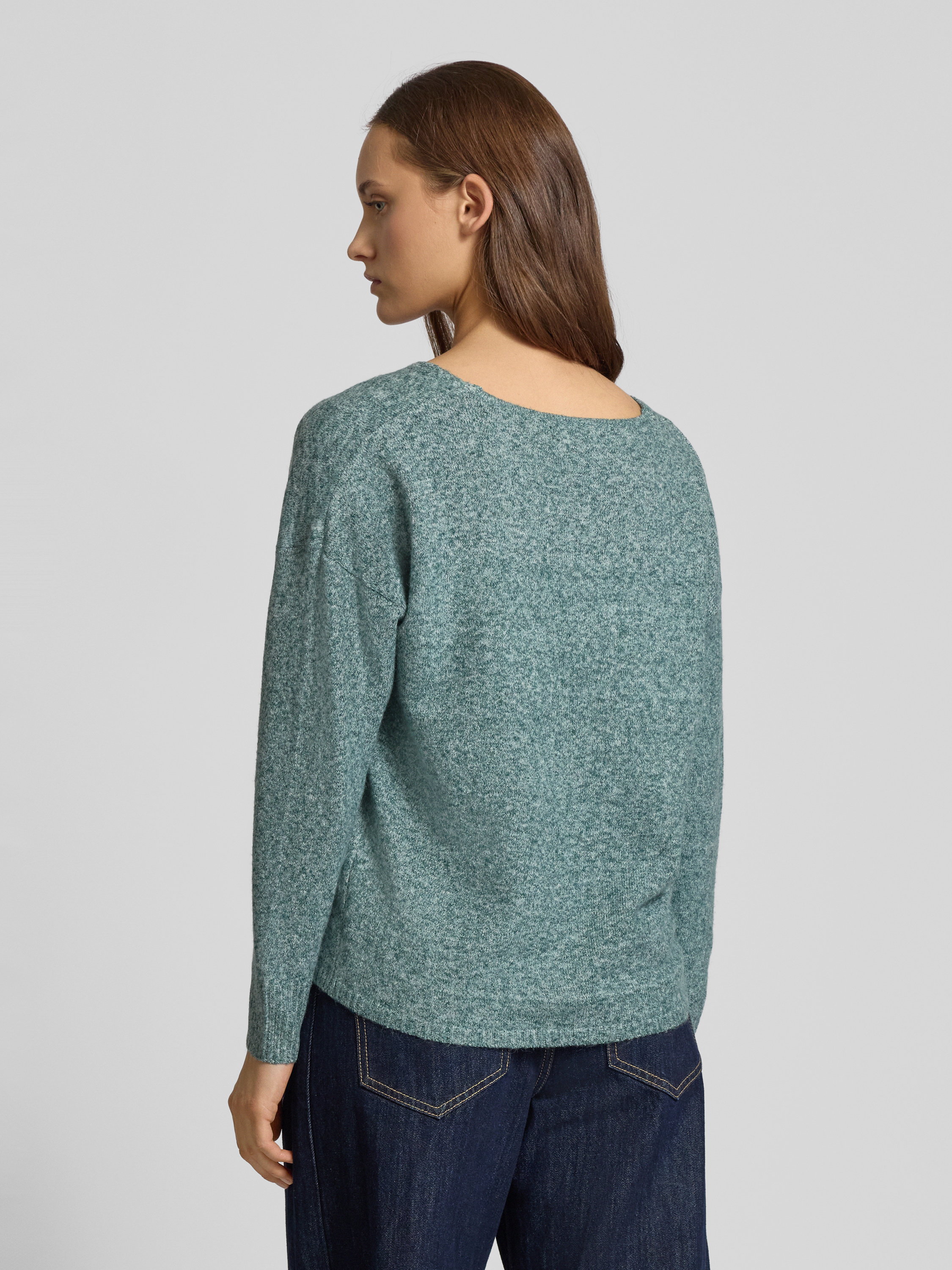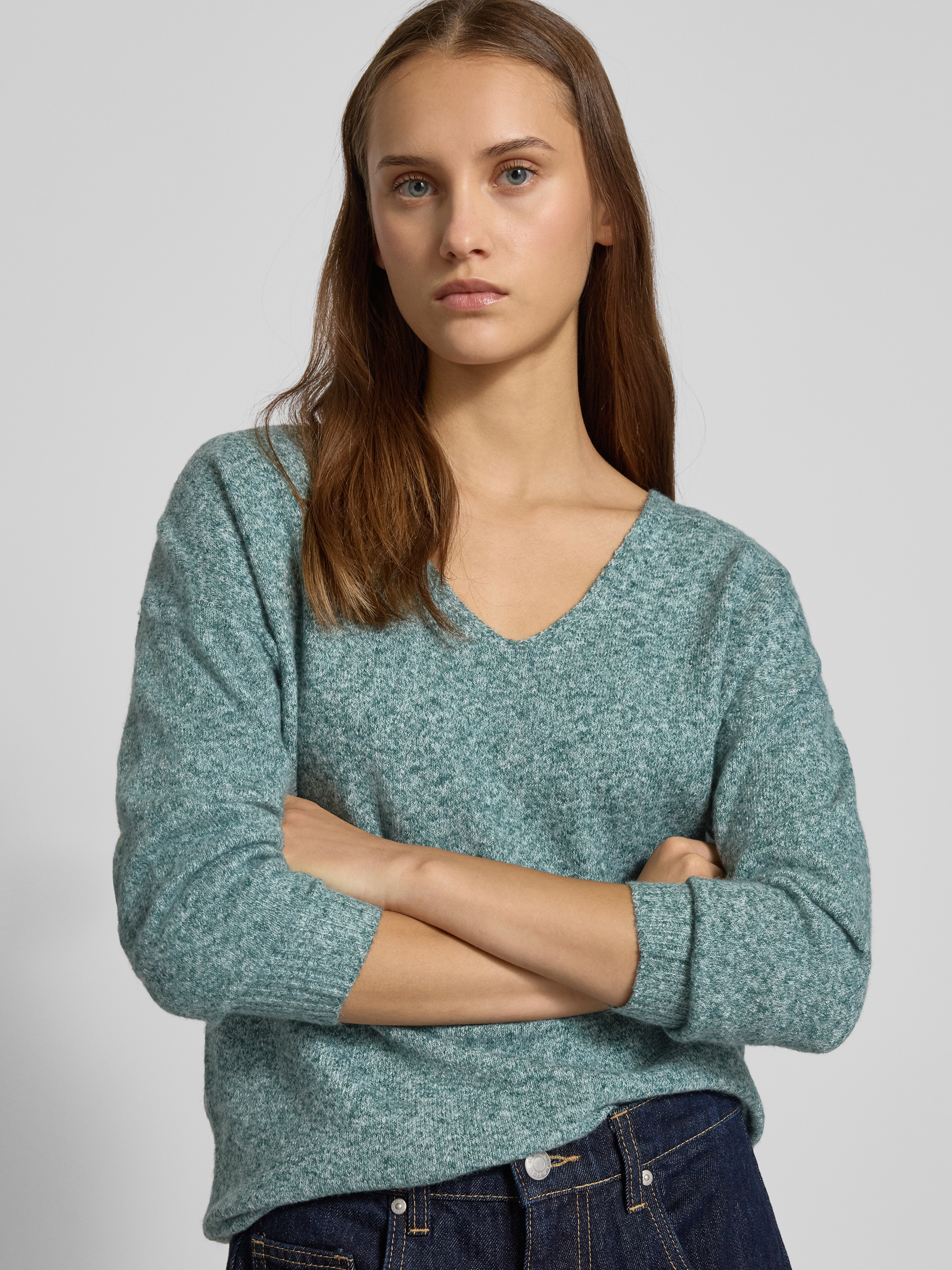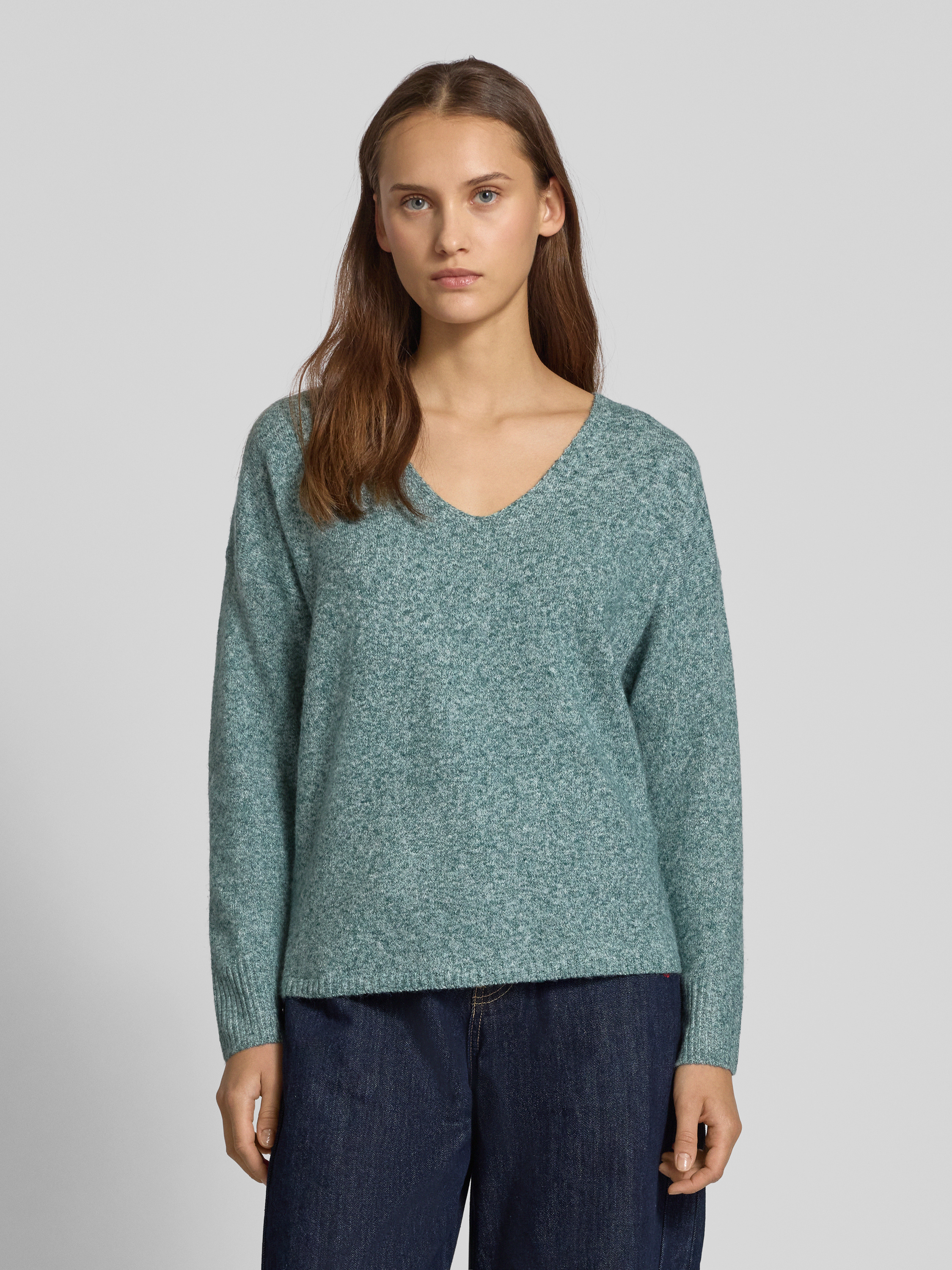 Sweter o kroju regular fit z dekoltem w serek model ‘RICA LIFE’ - butelkowy zielony melanż