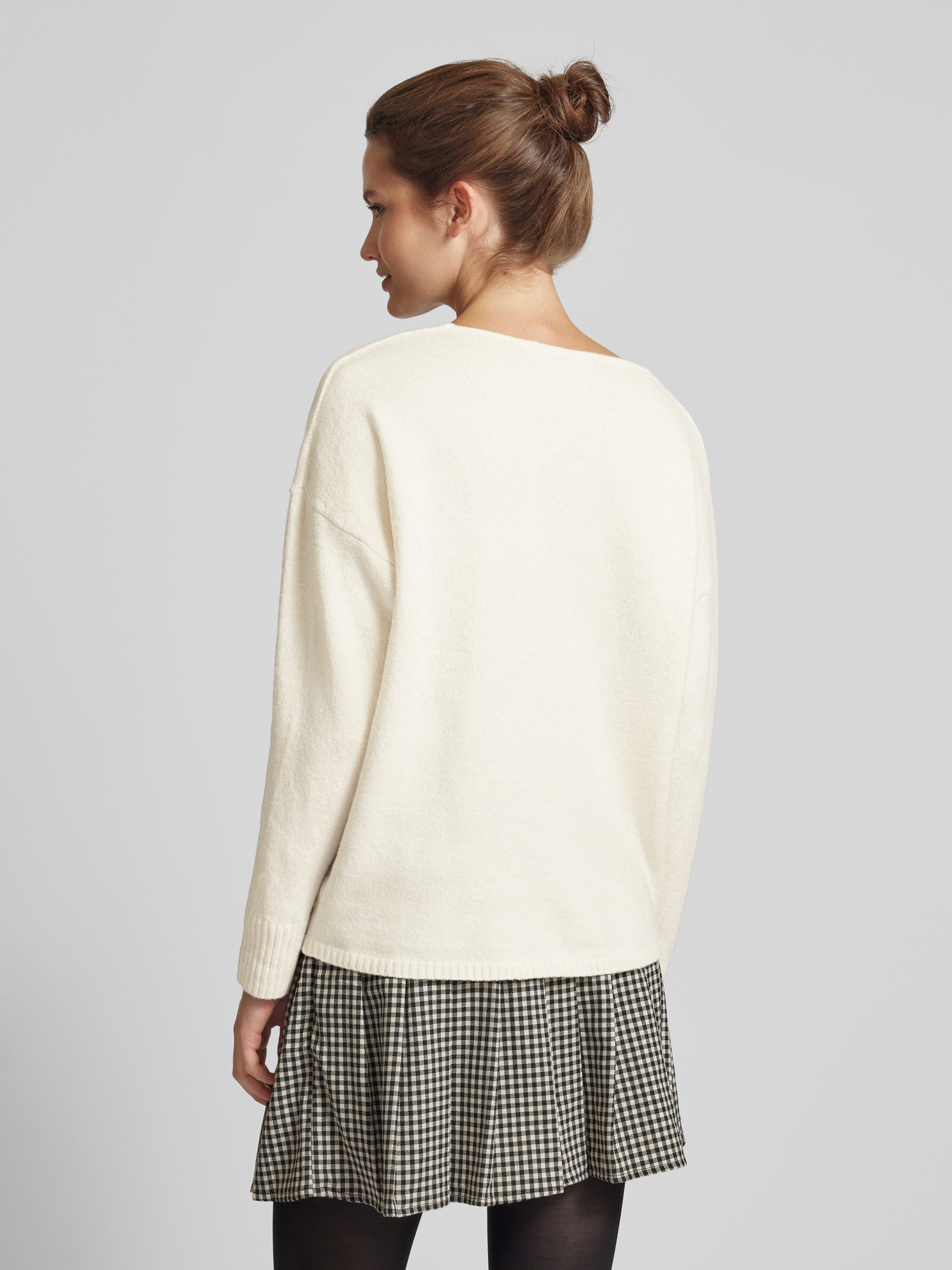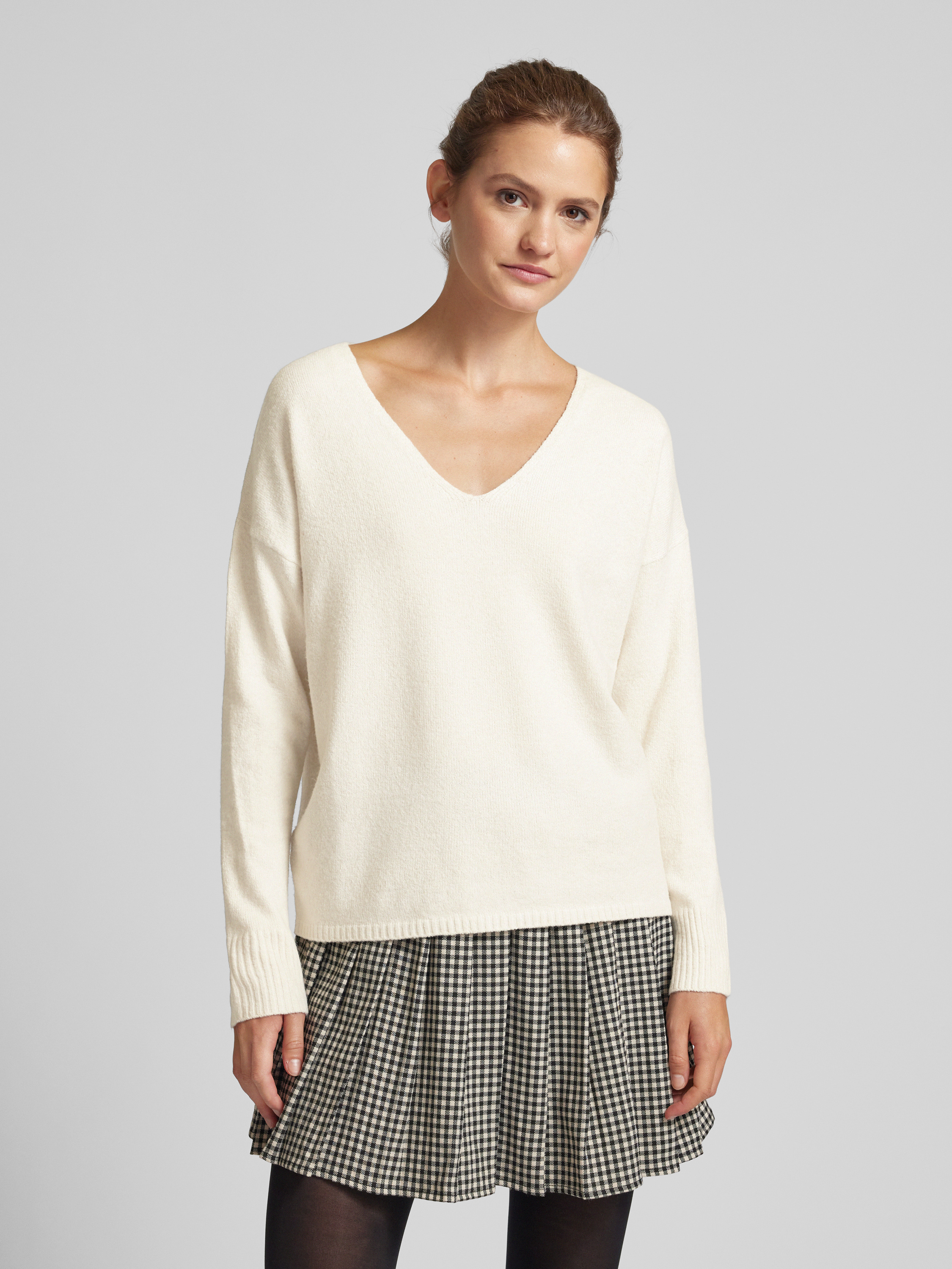 Sweter z dekoltem w serek model ‘RICA’ - écru