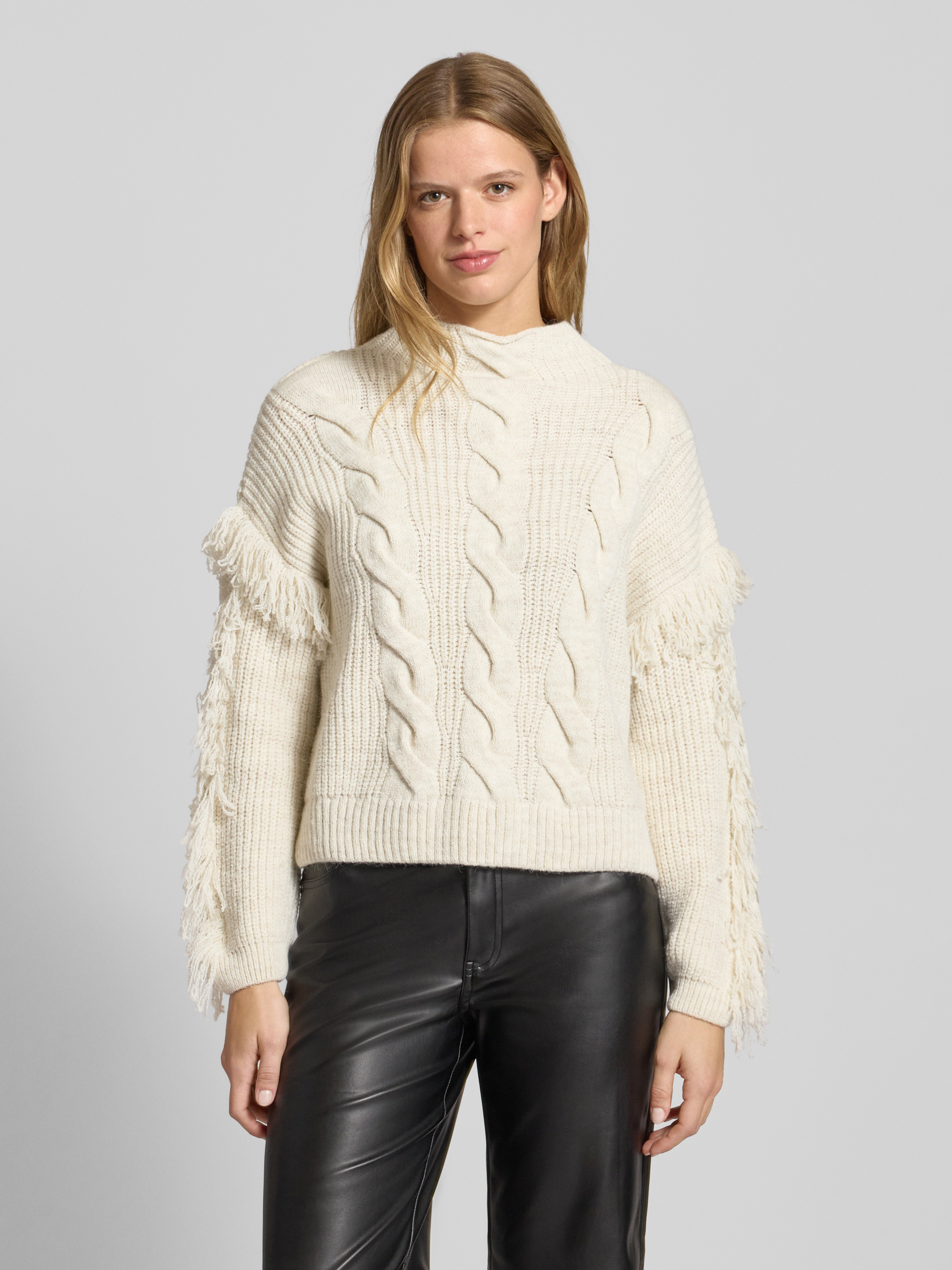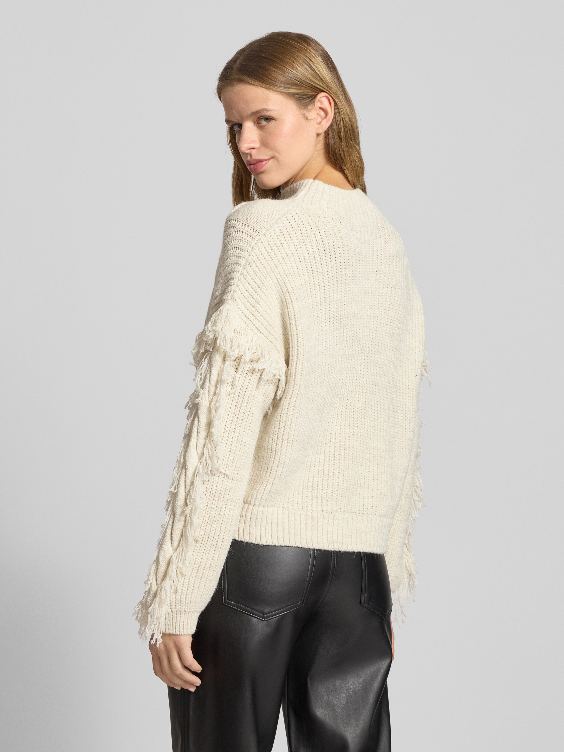 Sweter z dzianiny o kroju regular fit z frędzlami model ‘HOLLY’ - złamany biały