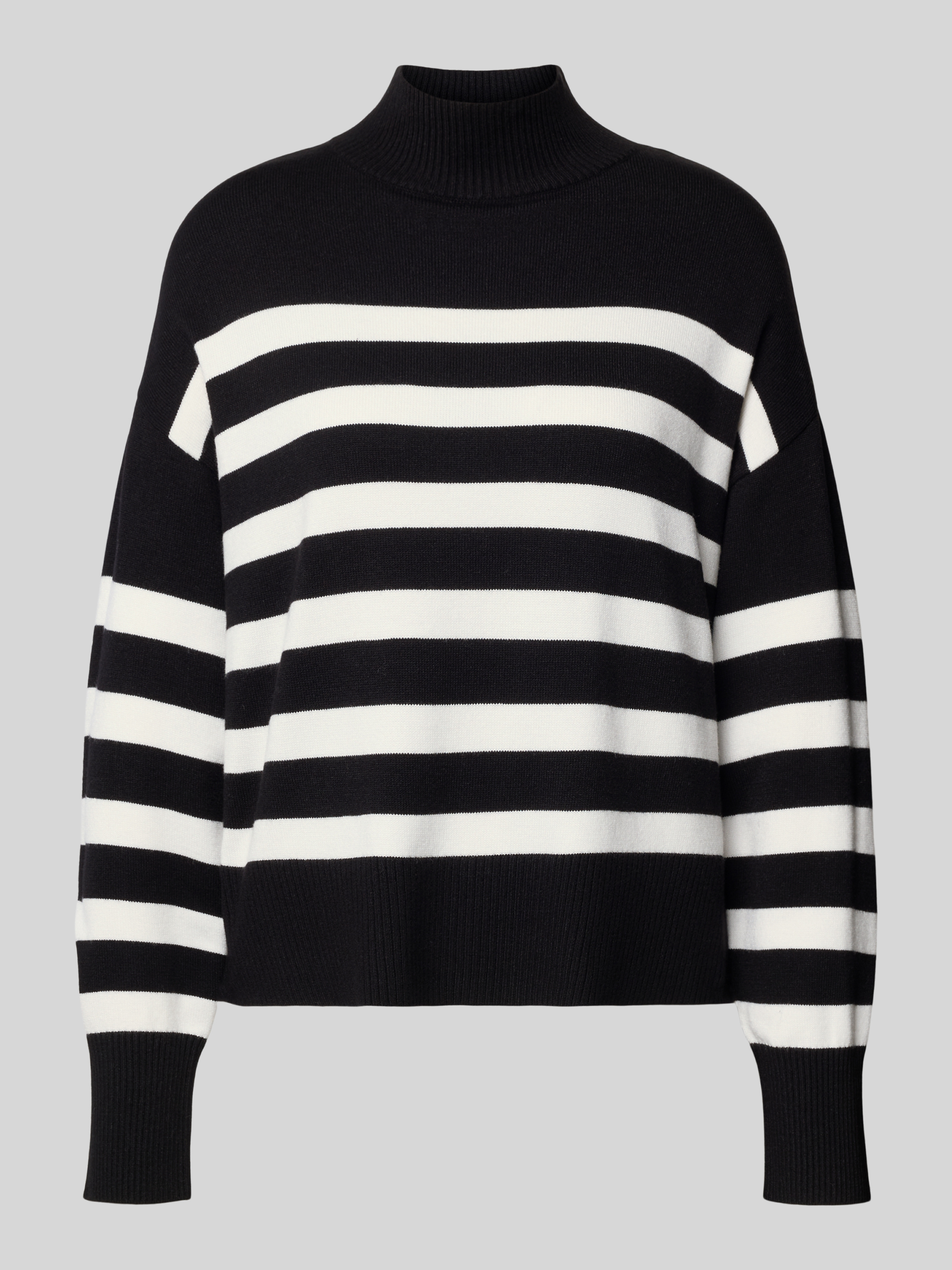Sweter z dzianiny o kroju regular fit z mieszanki wiskozy model ‘BARI’ - czarny
