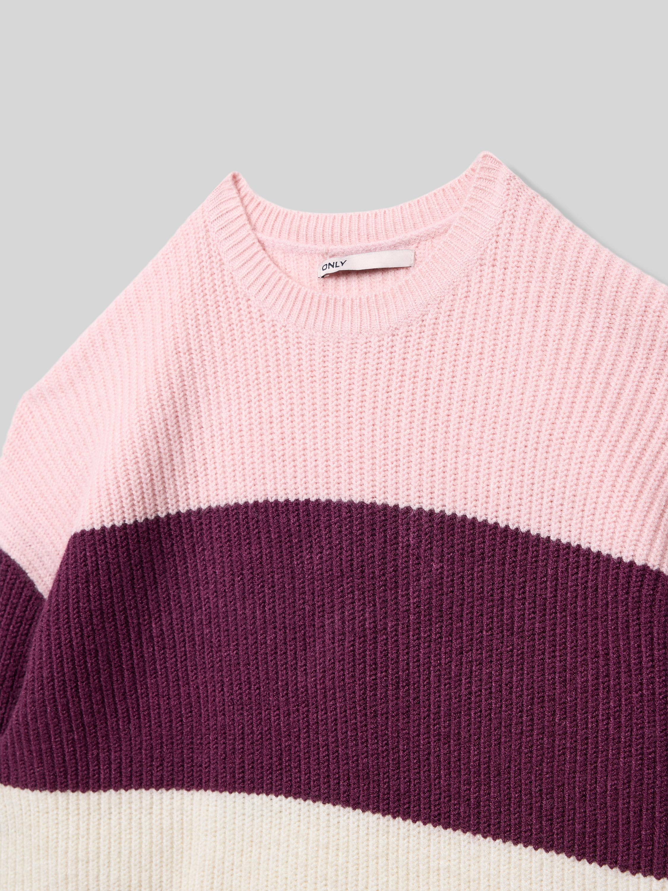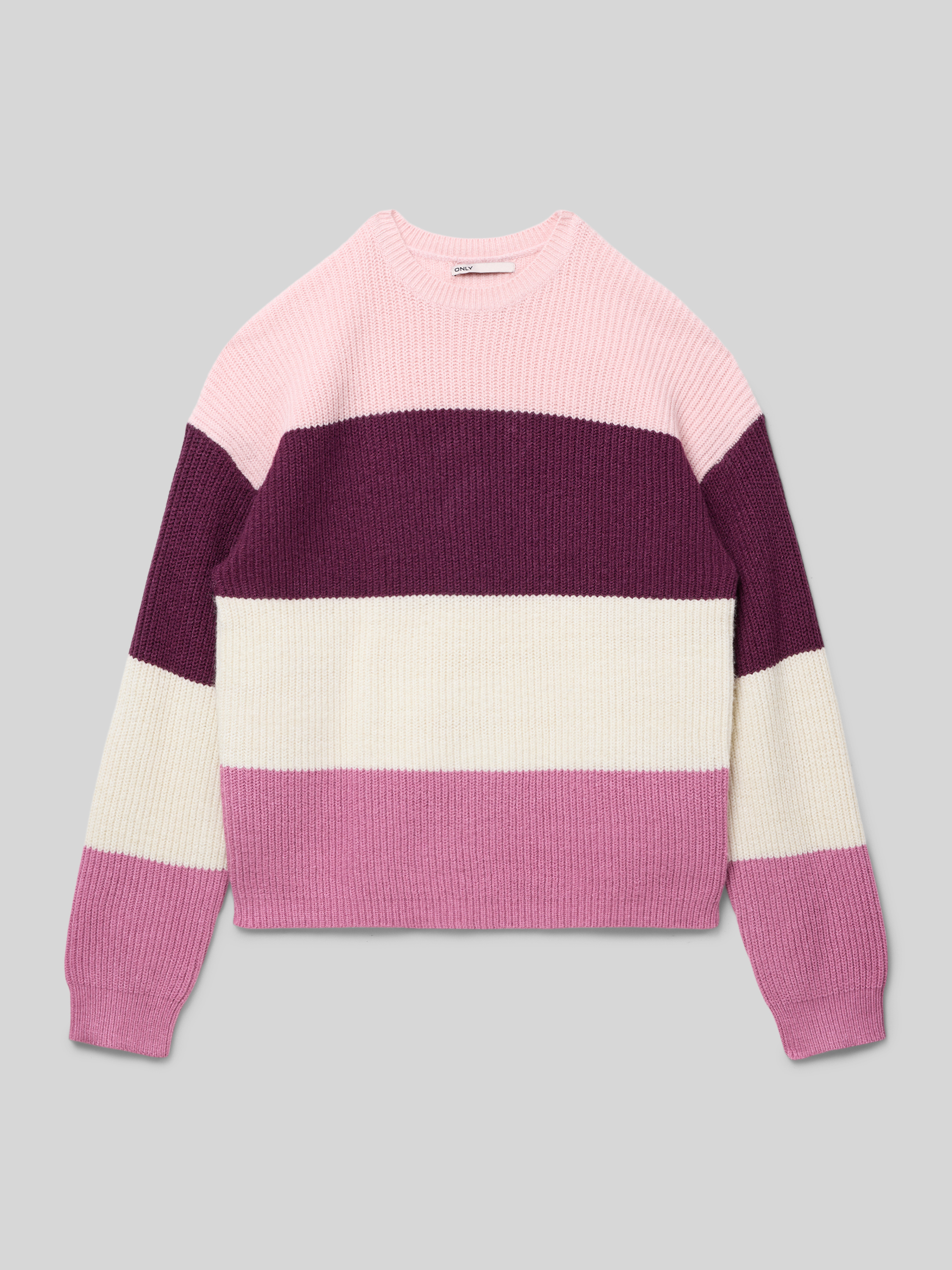 OnlySweter z dzianiny o kroju regular fit z mieszanki wiskozy model ‘SANDY’ - fiołkoworóżowy