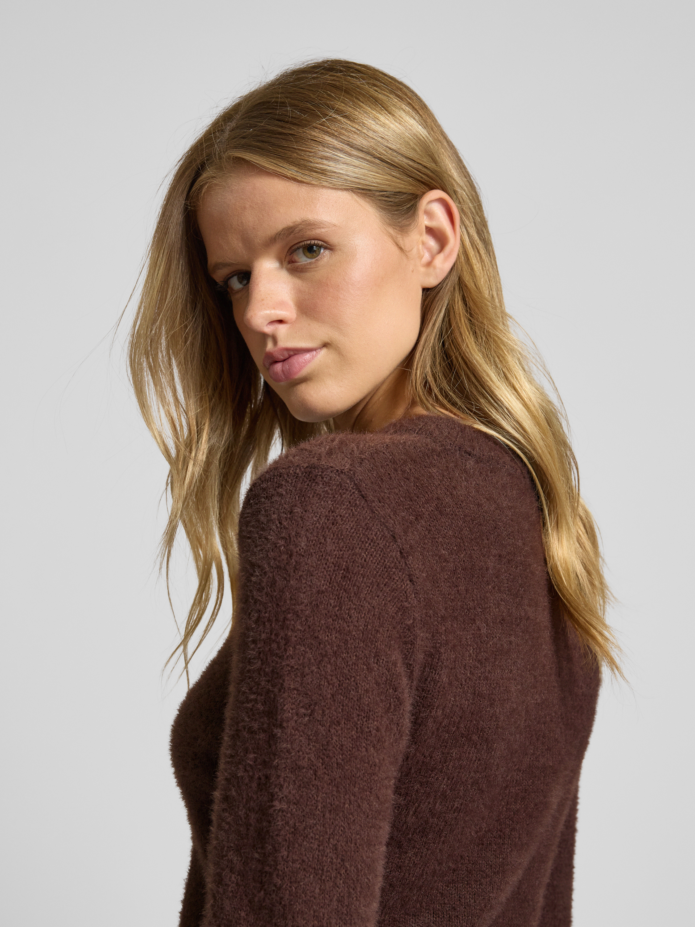 Sweter z dzianiny o kroju regular fit z okrągłym dekoltem model ‘PETRA’ - czekoladowy