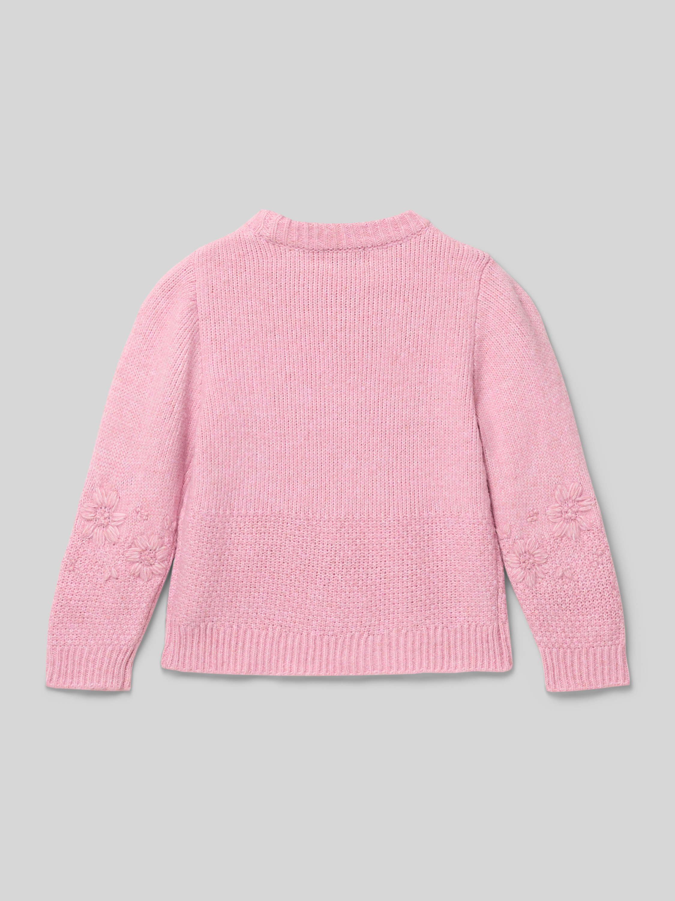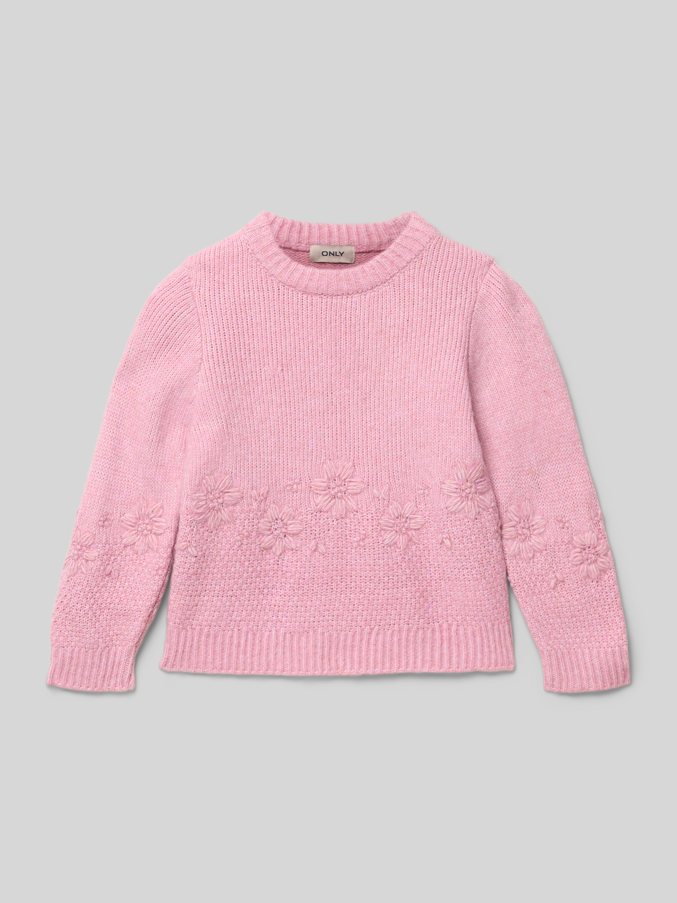 Sweter z dzianiny o kroju regular fit z okrągłym dekoltem model ‘TANYA’ - fiołkoworóżowy