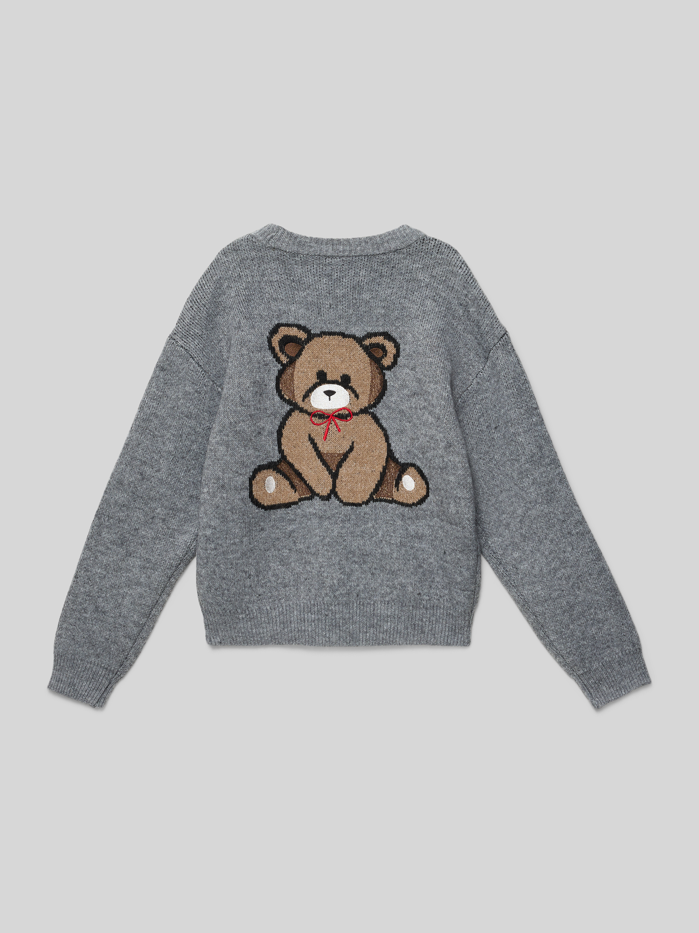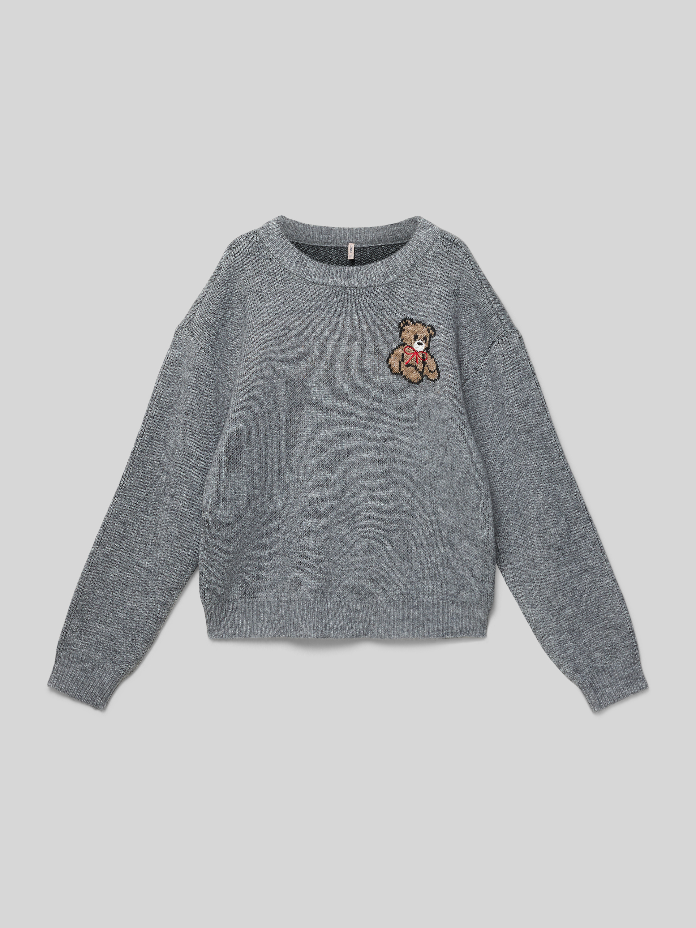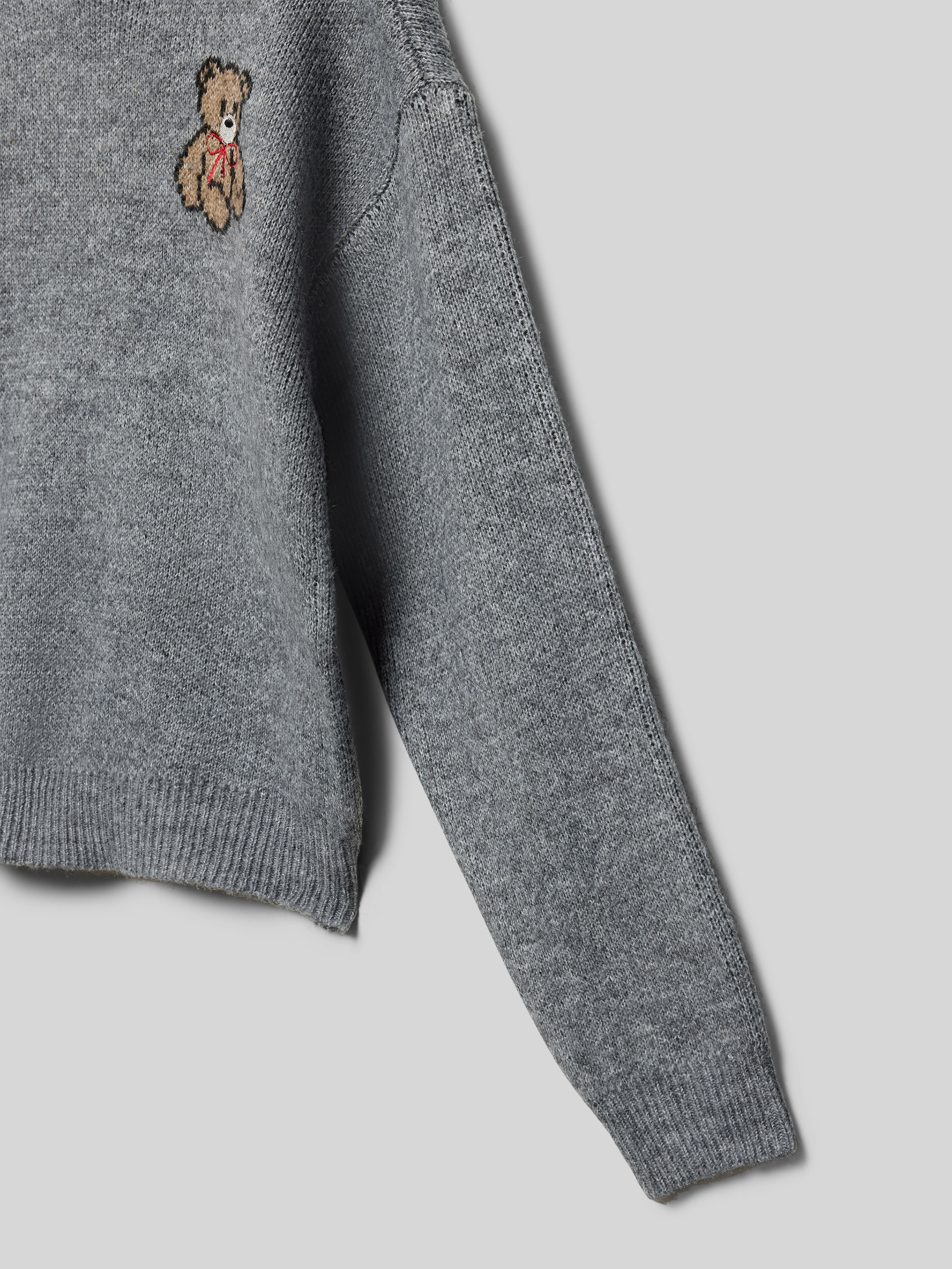 Sweter z dzianiny o kroju regular fit z wyhaftowanym motywem model ‘TEDDY’ - antracytowy