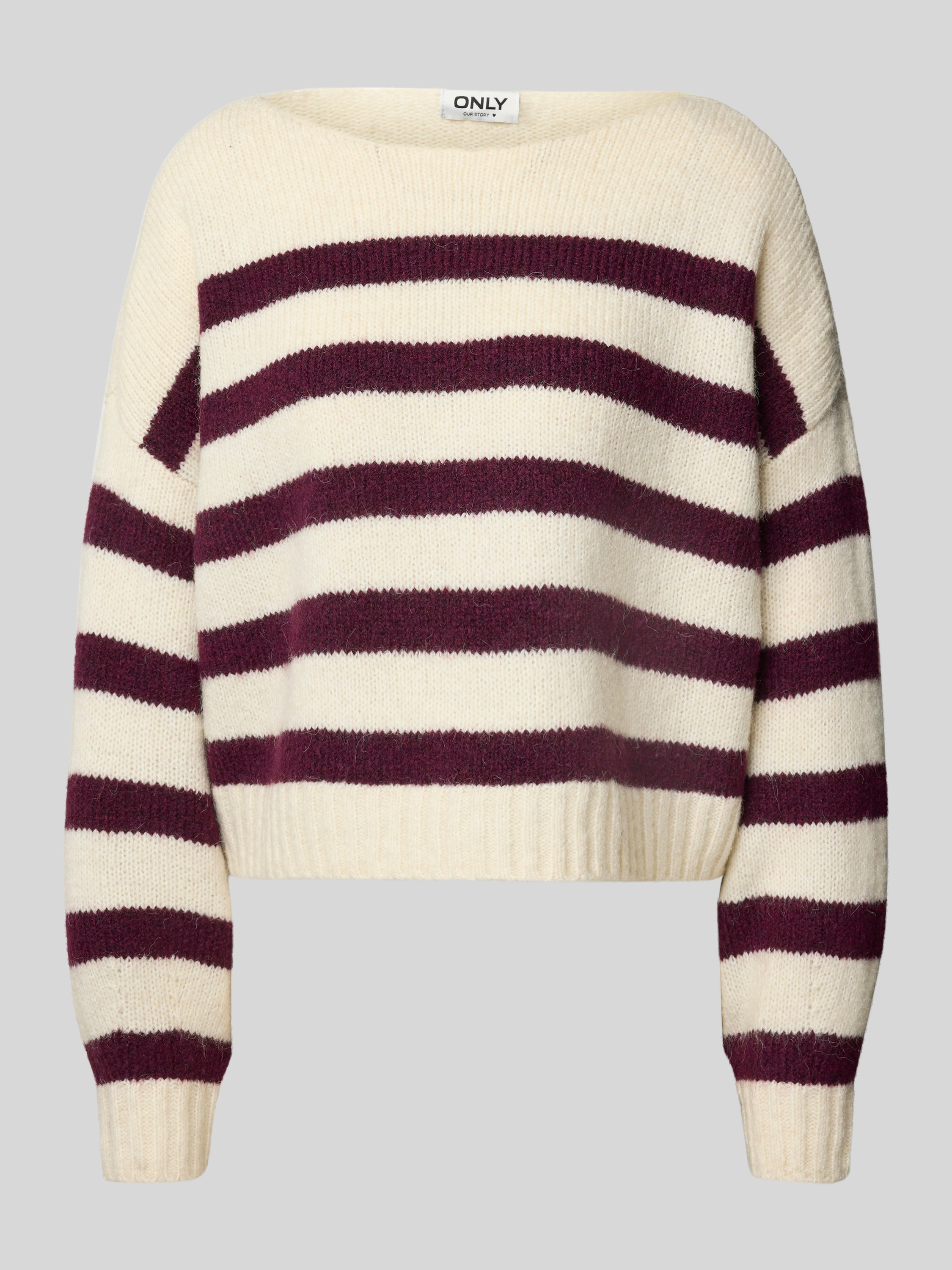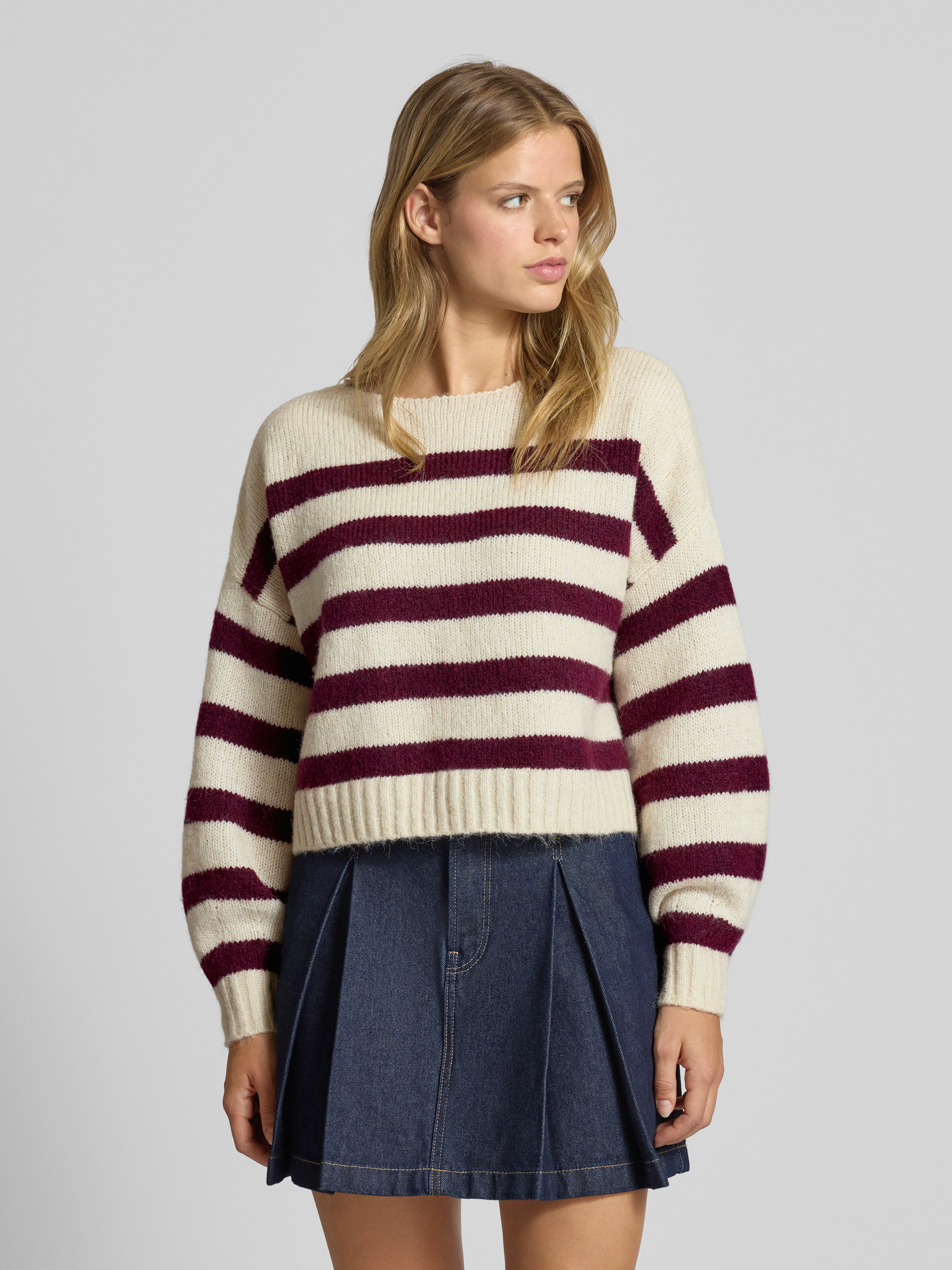 Sweter z dzianiny o kroju regular fit ze wzorem na całej powierzchni model ‘LAYA’ - bordowy