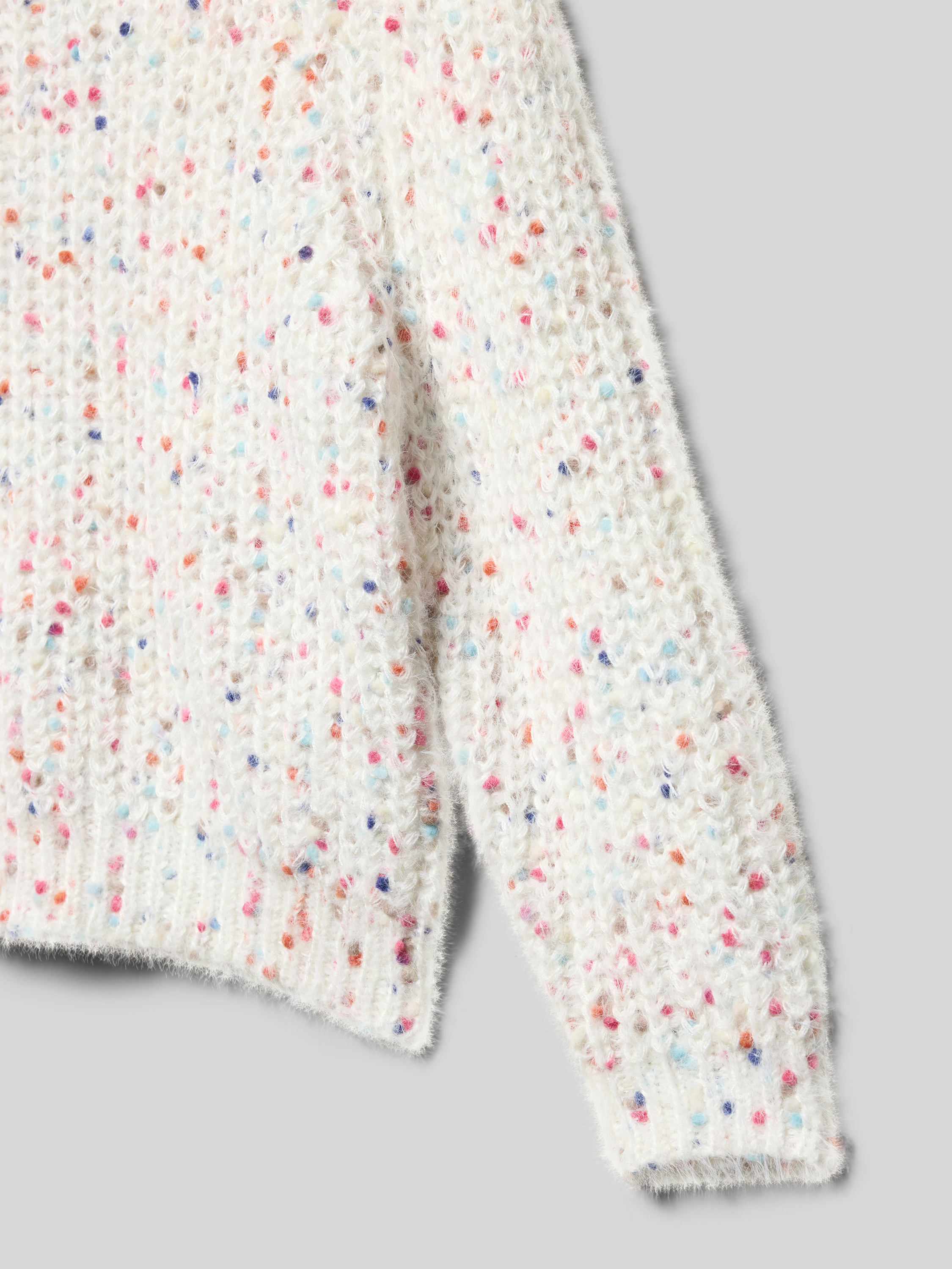 Sweter z dzianiny o kroju regular fit ze wzorem na całej powierzchni model ‘LUDI’ - écru