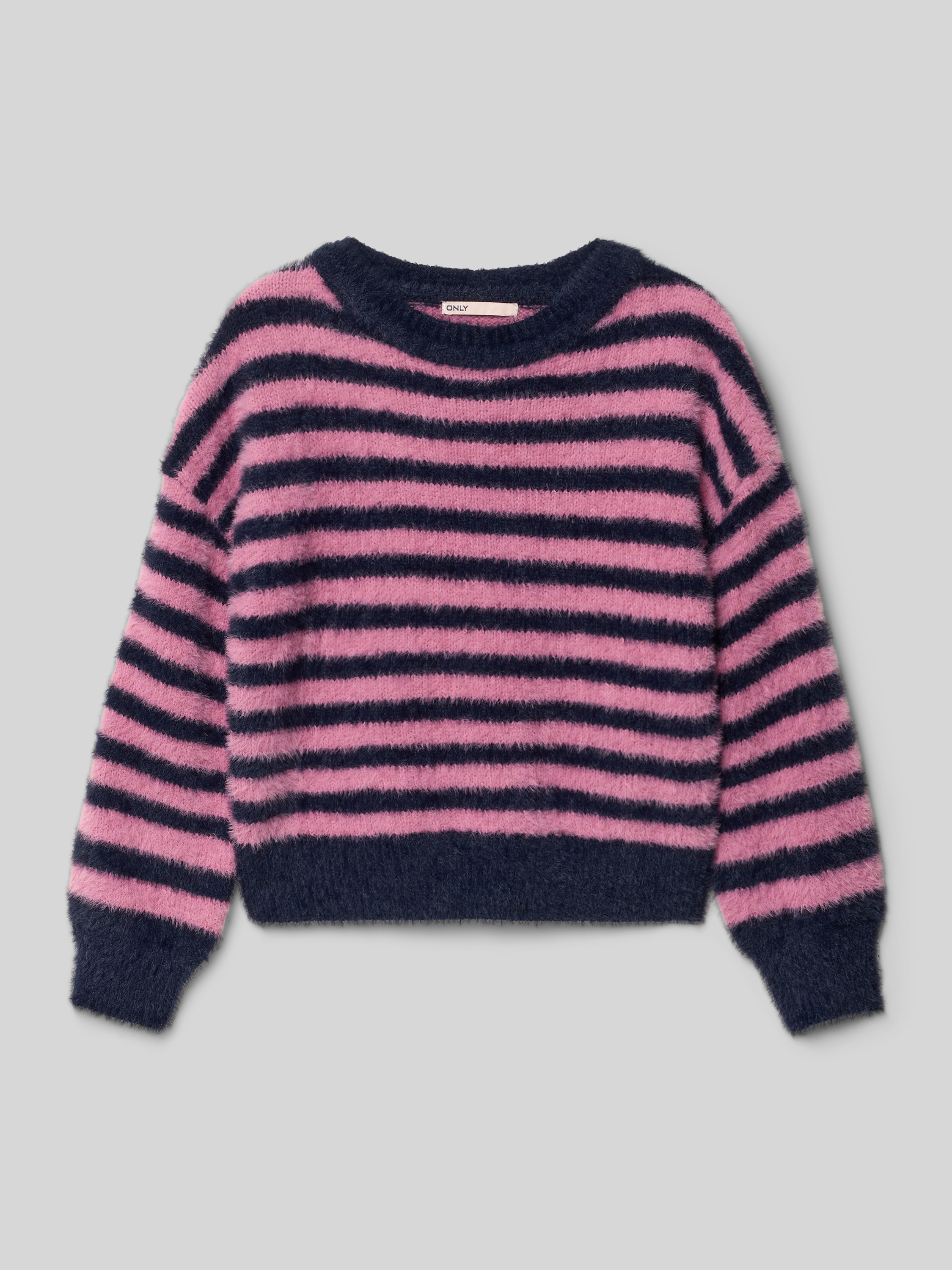 Sweter z dzianiny o kroju regular fit ze wzorem na całej powierzchni model ‘NEWPIUMO’ - granatowy