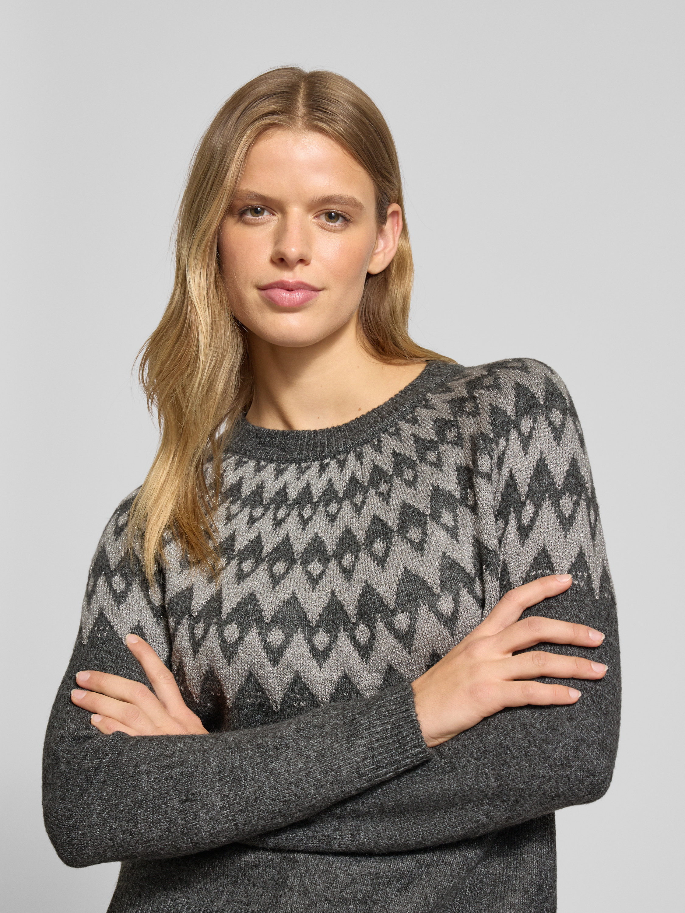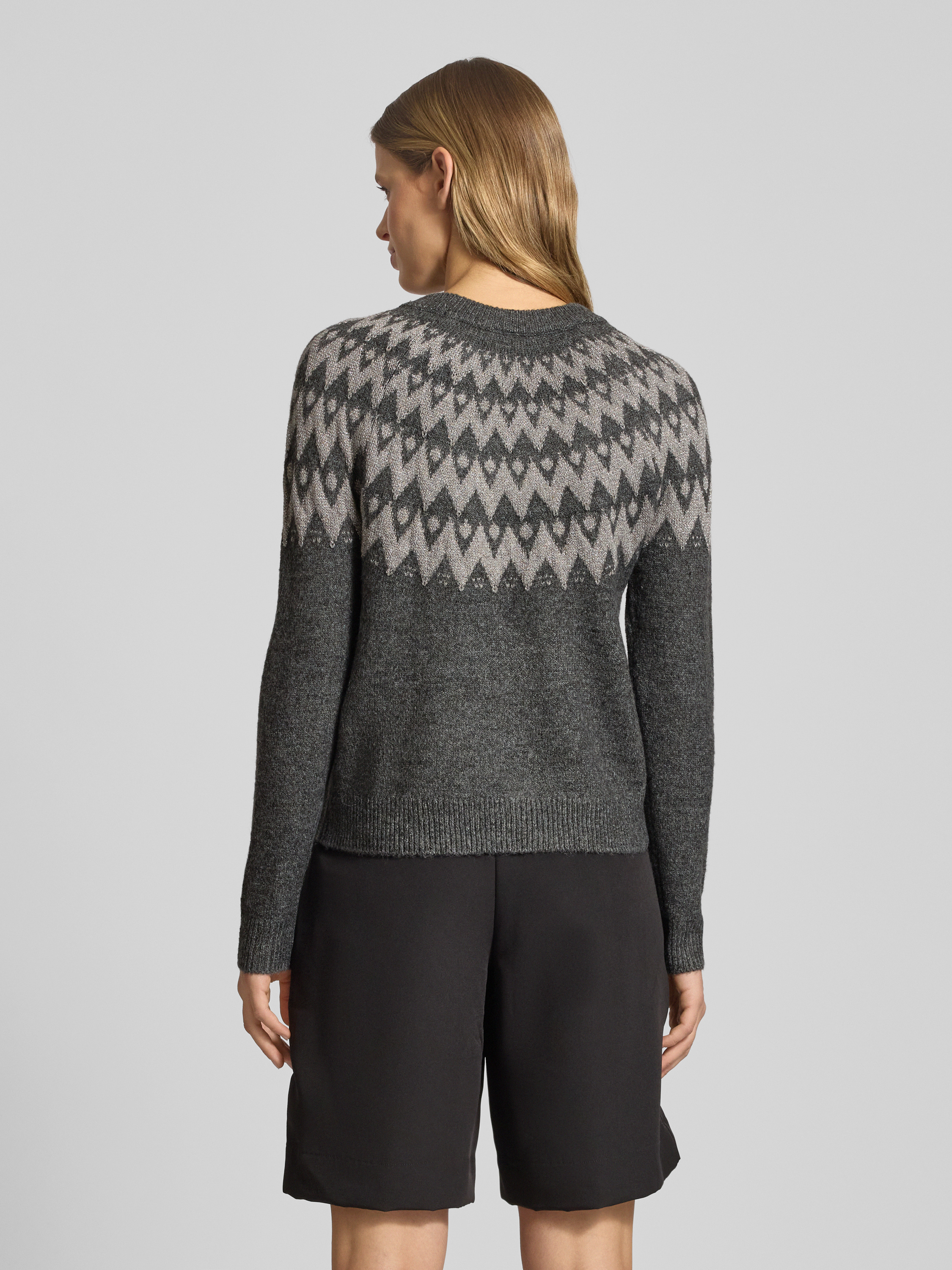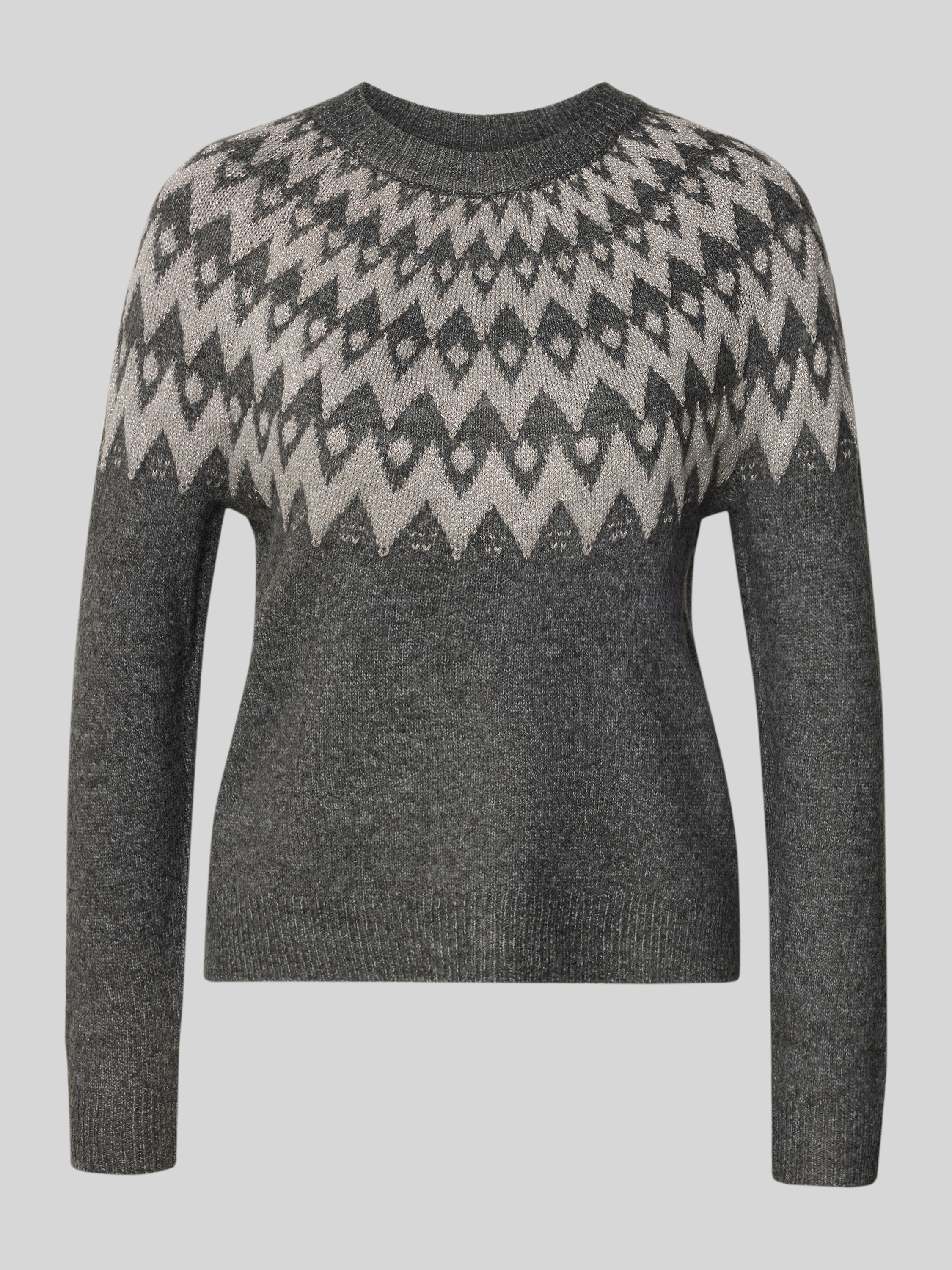 Sweter z dzianiny o kroju regular fit ze wzorem norweskim model ‘FRY’ - antracytowy melanż