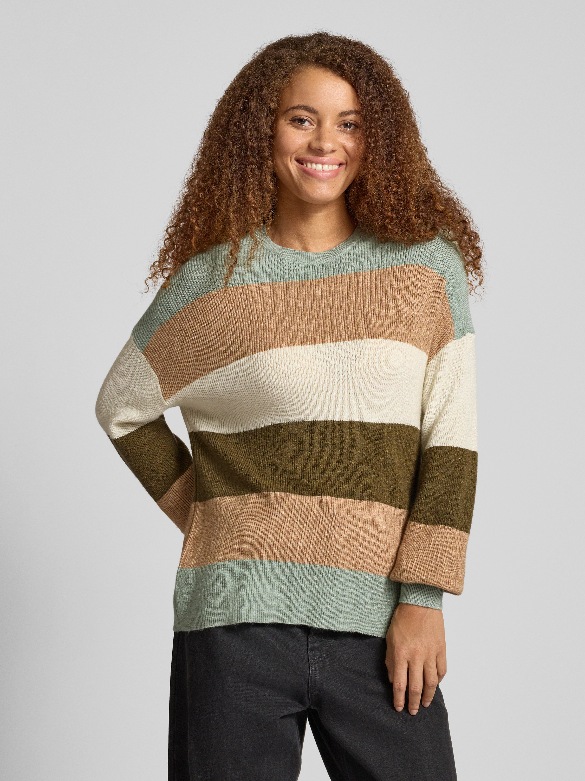Sweter z dzianiny o luźnym kroju z mieszanki wiskozy model ‘ATIA’ - trzcinowy melanż