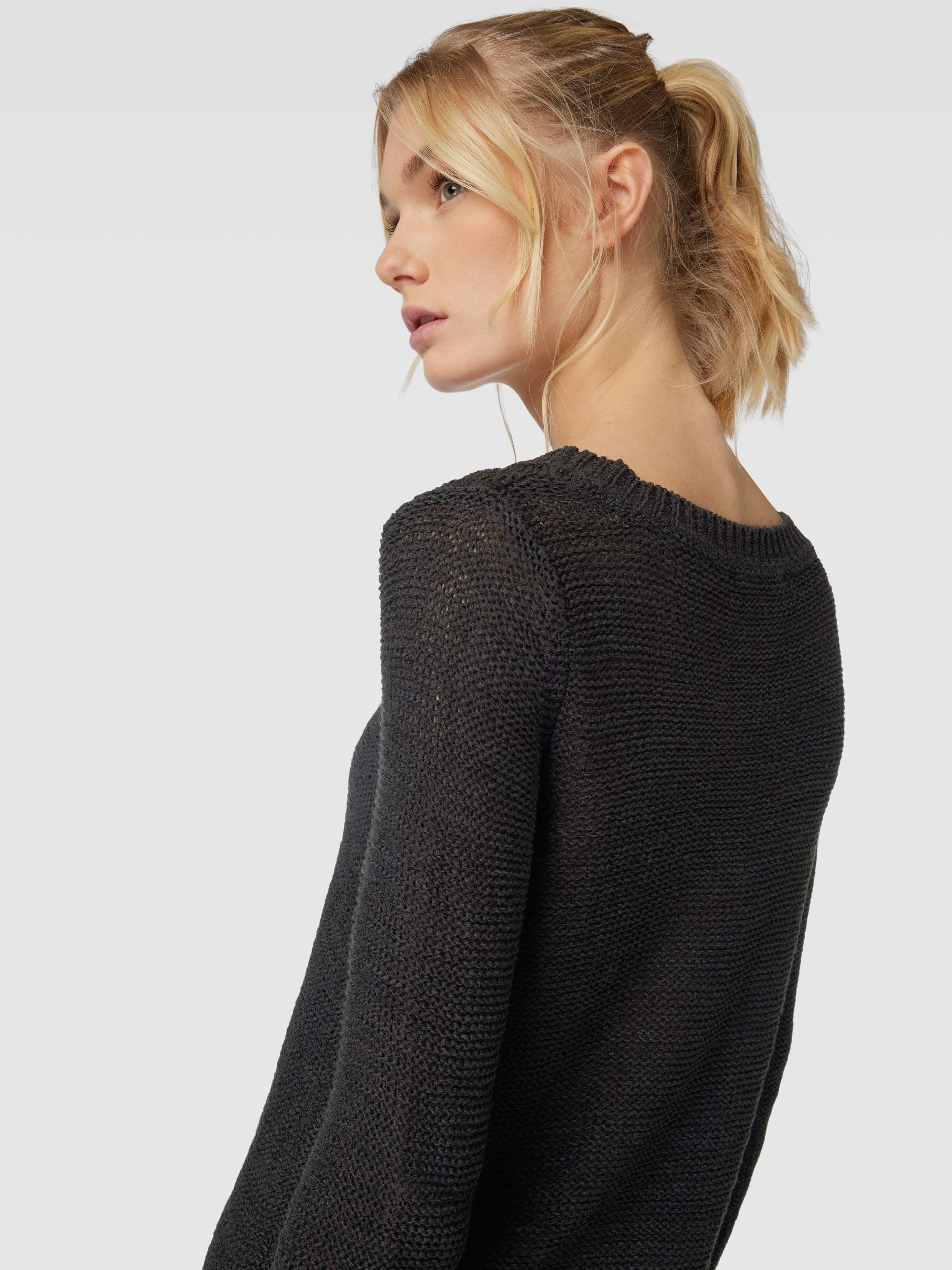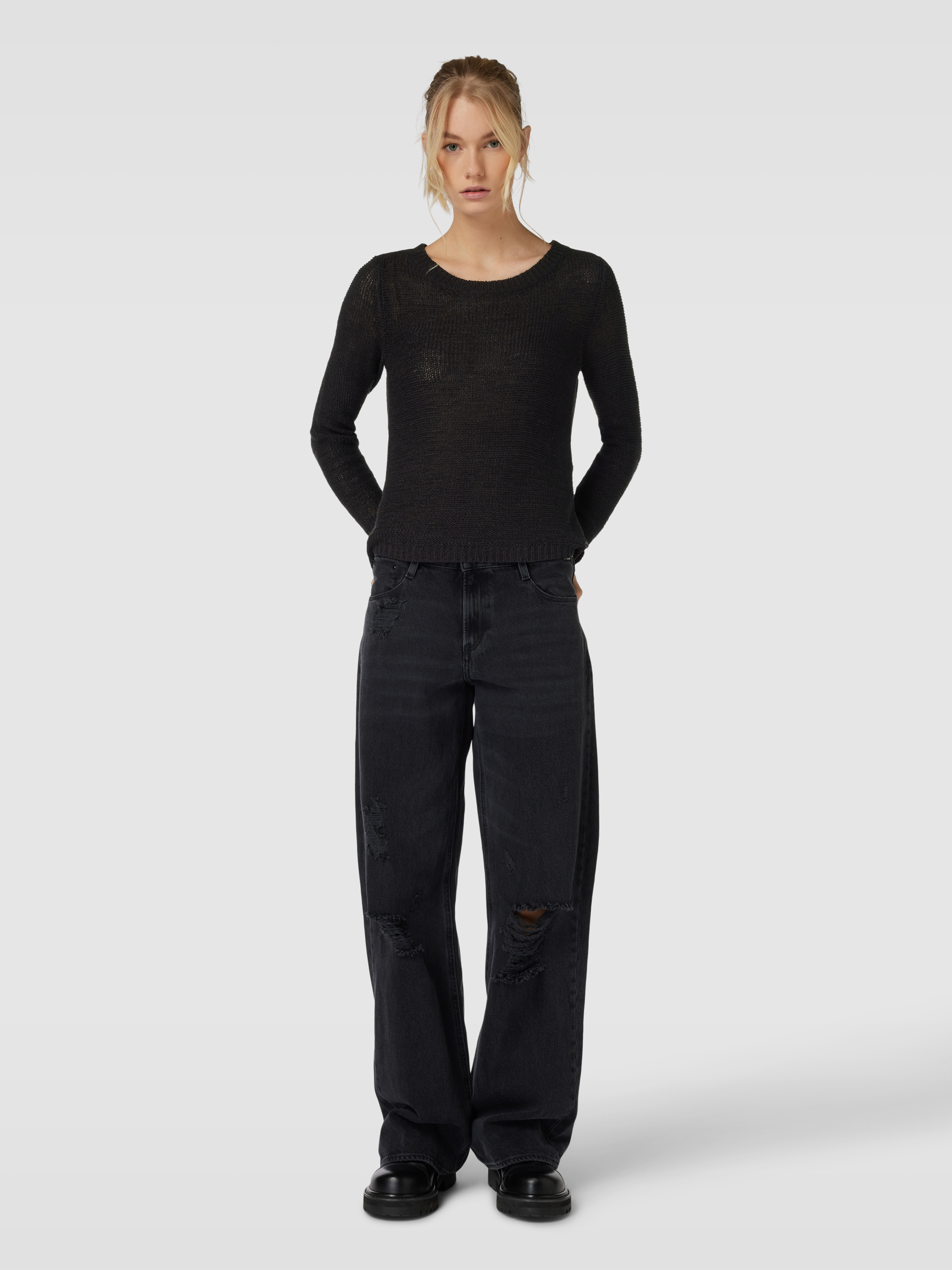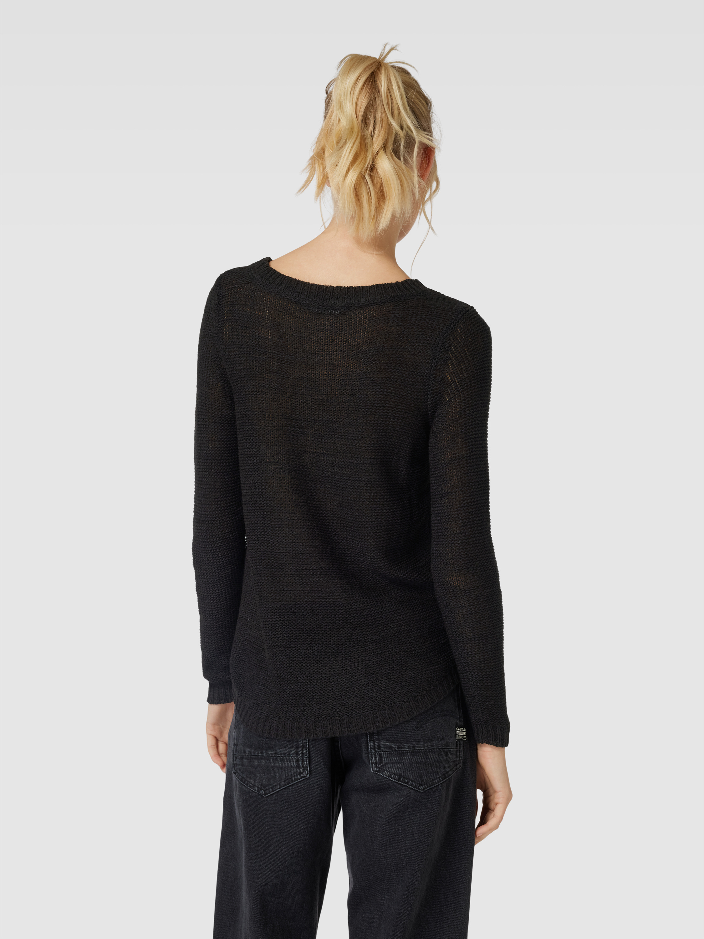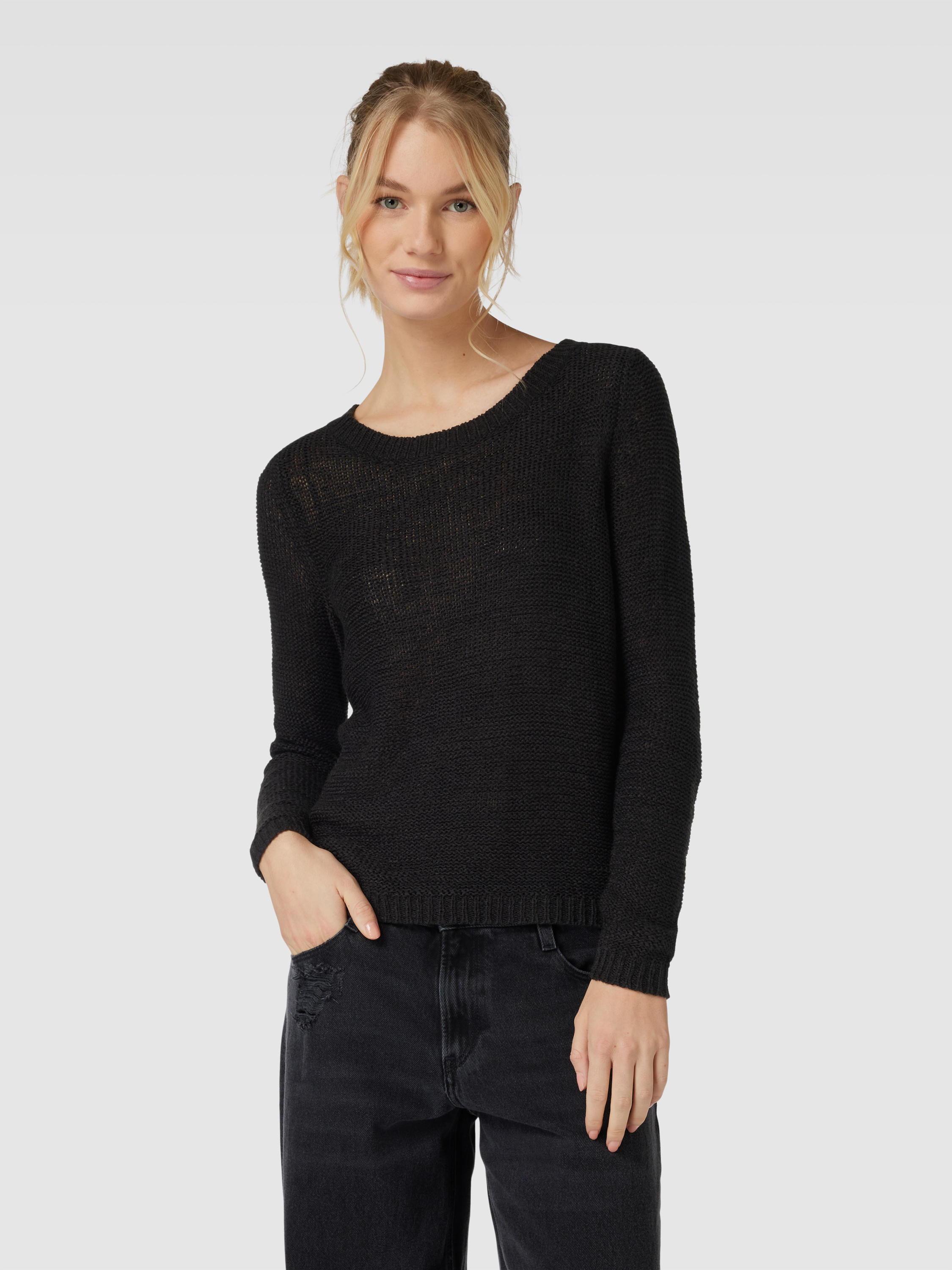 Sweter z dzianiny z okrągłym dekoltem model ‘GEENA’ - czarny