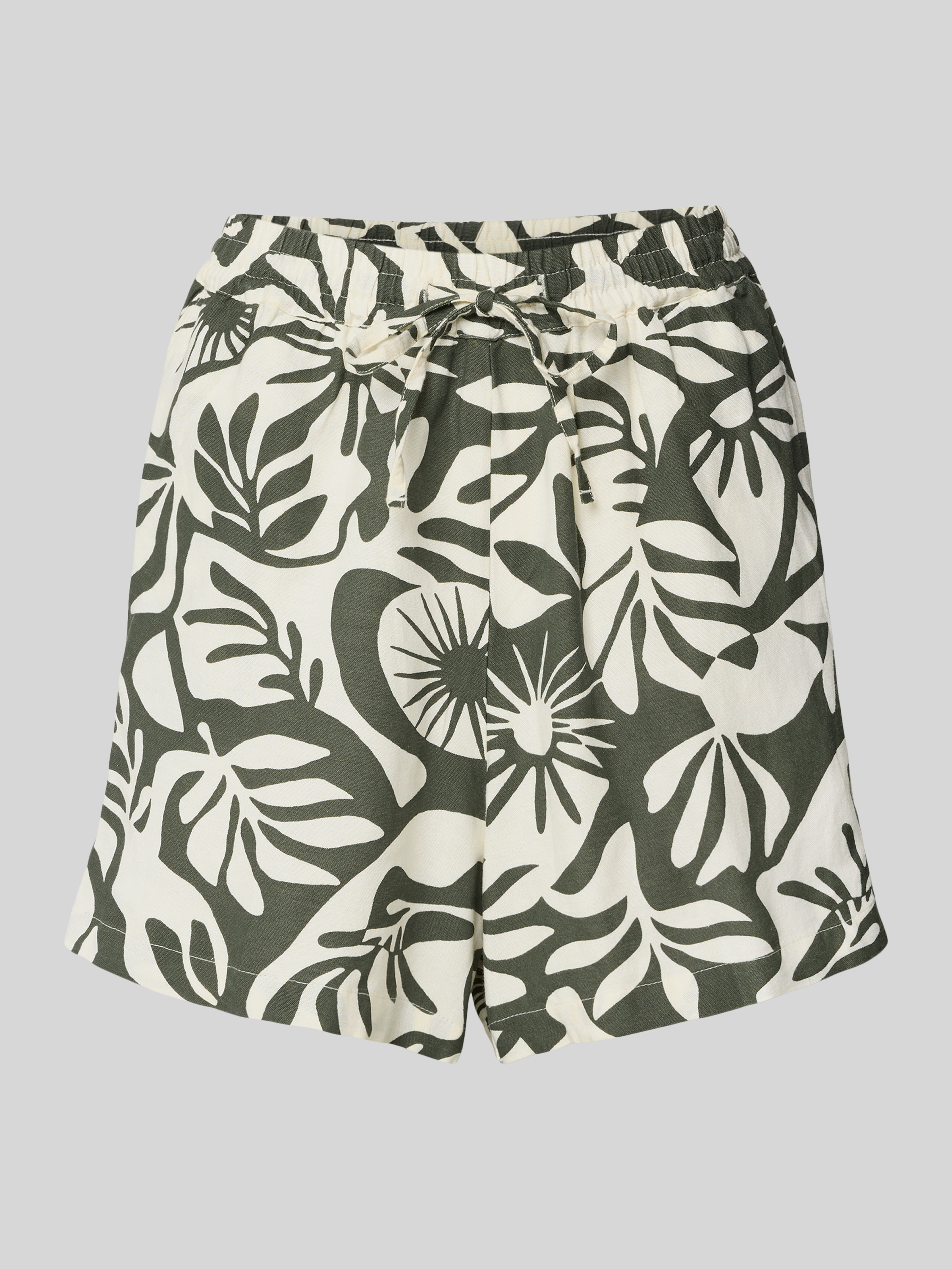 Szorty lniane o luźnym kroju z mieszanki wiskozy i bawełny model ‘JAKIRI’ - oliwkowy