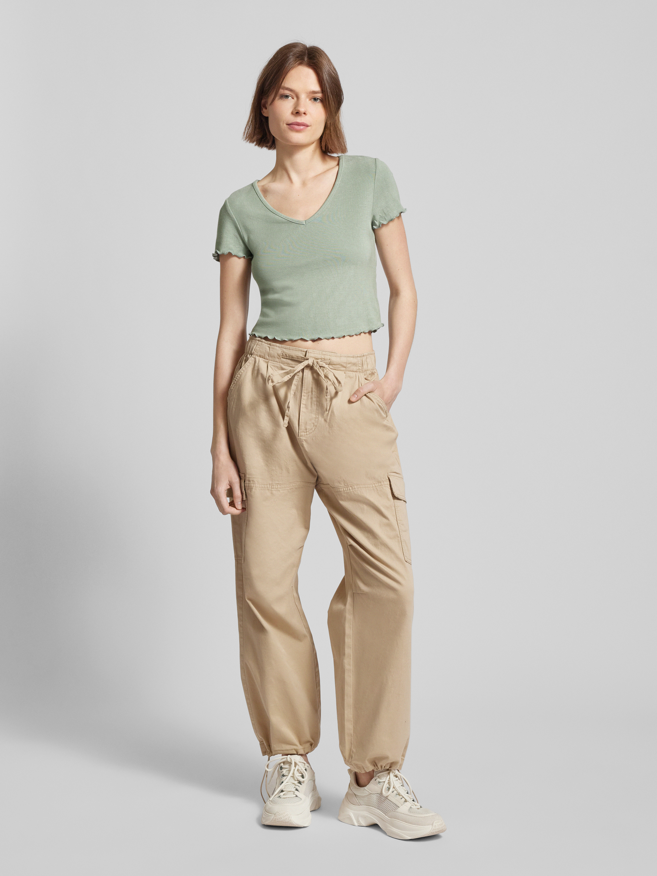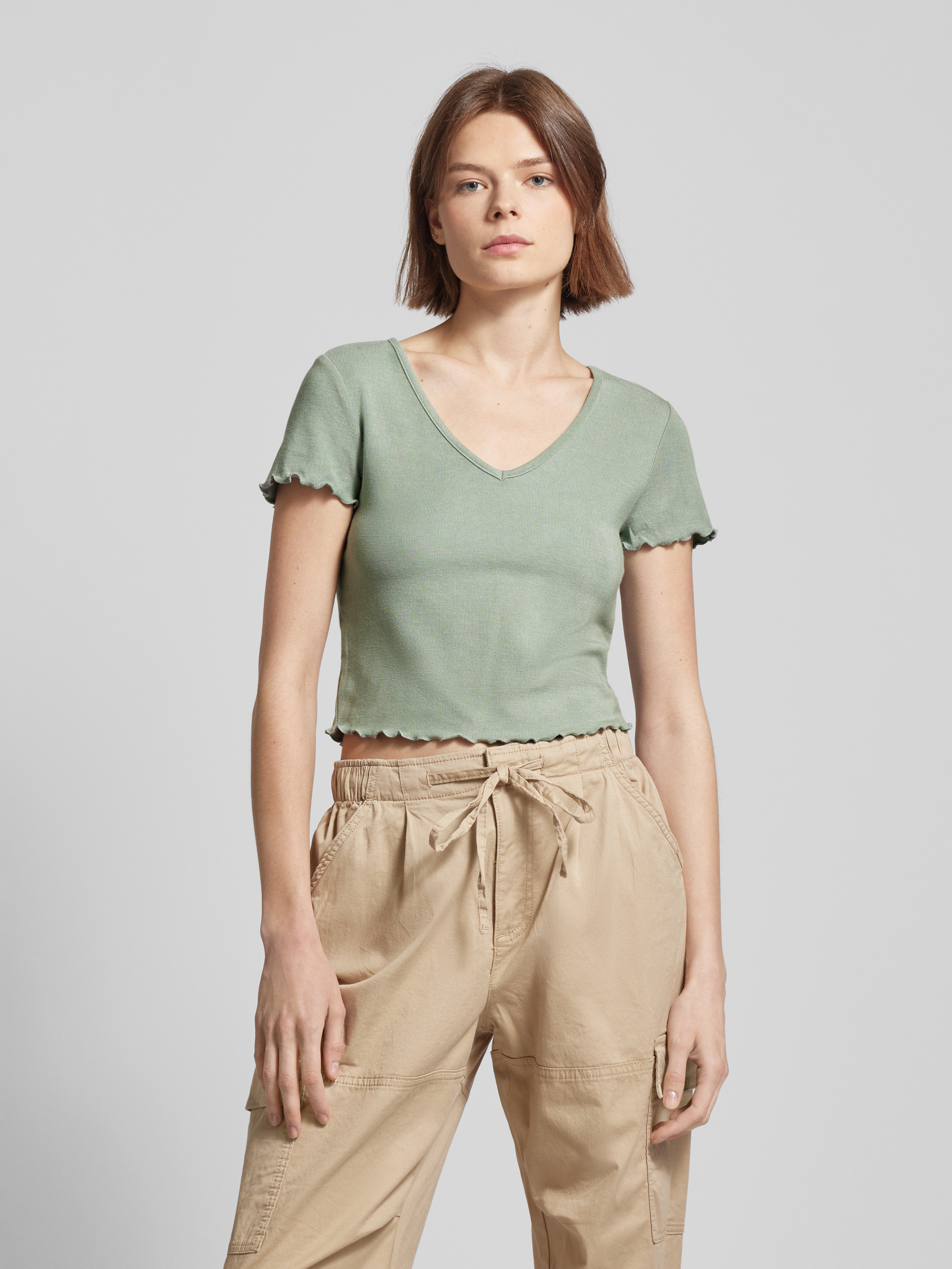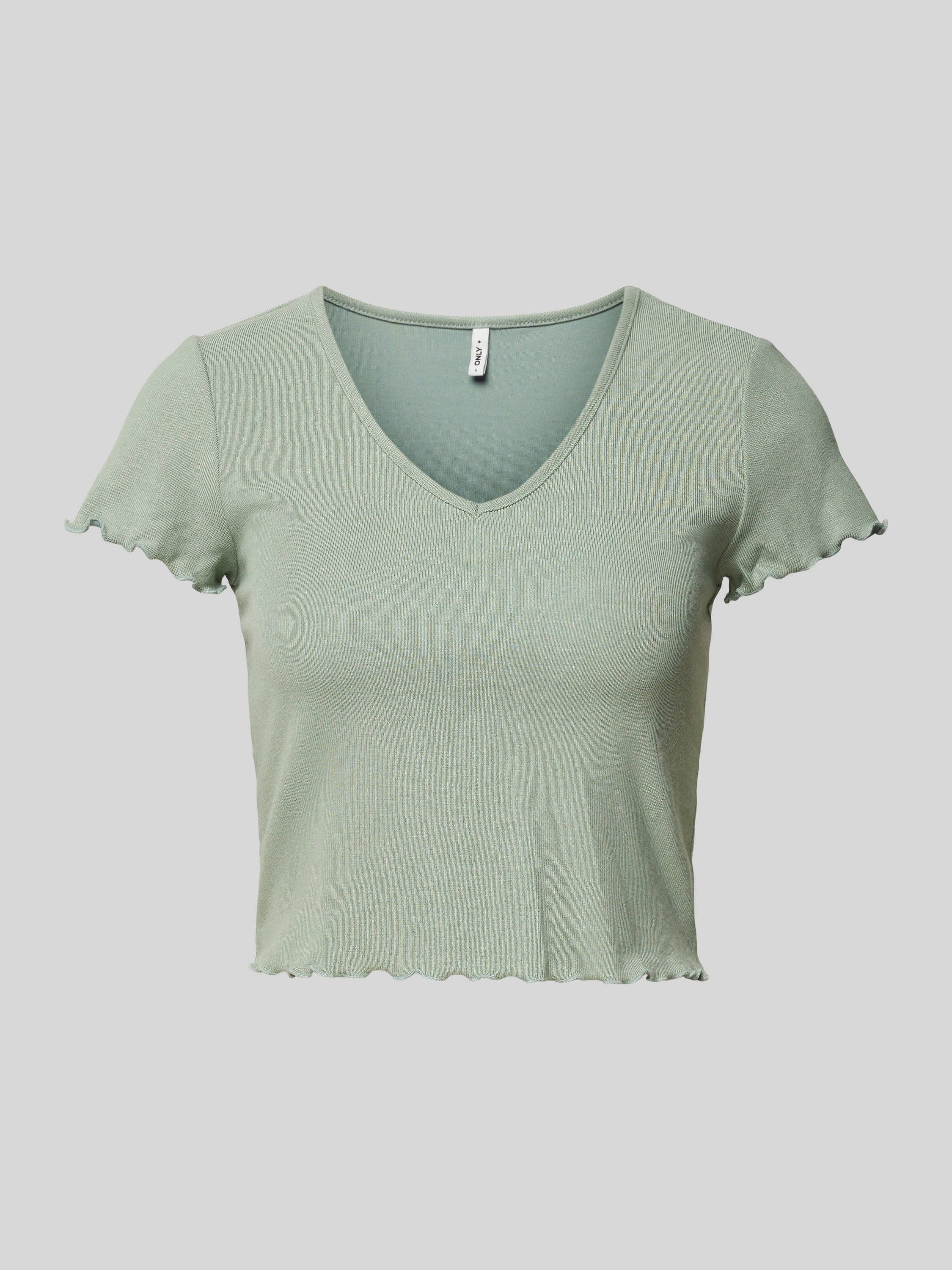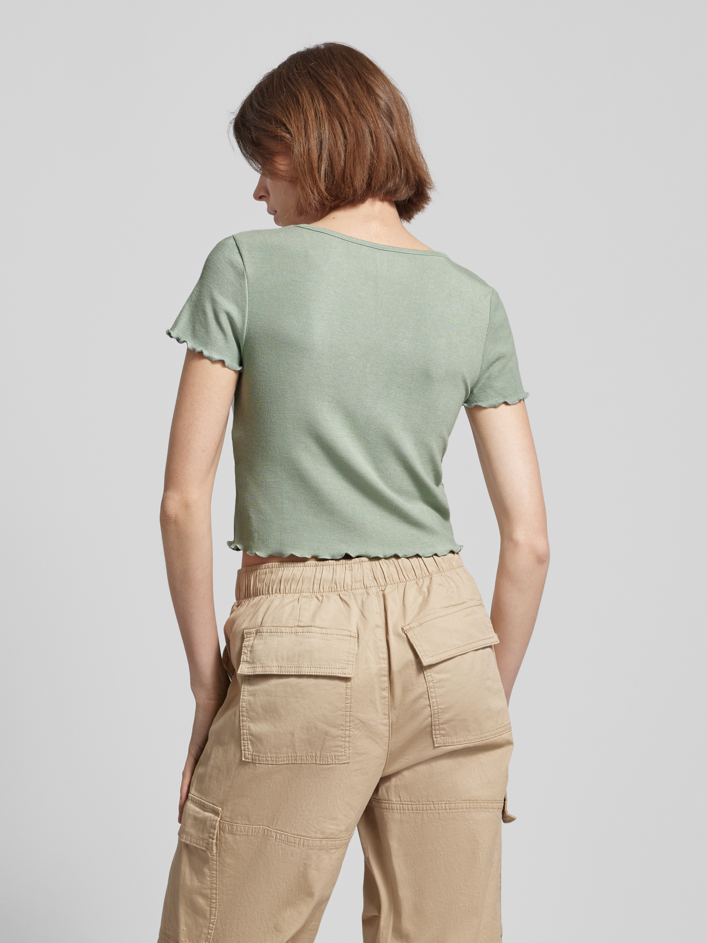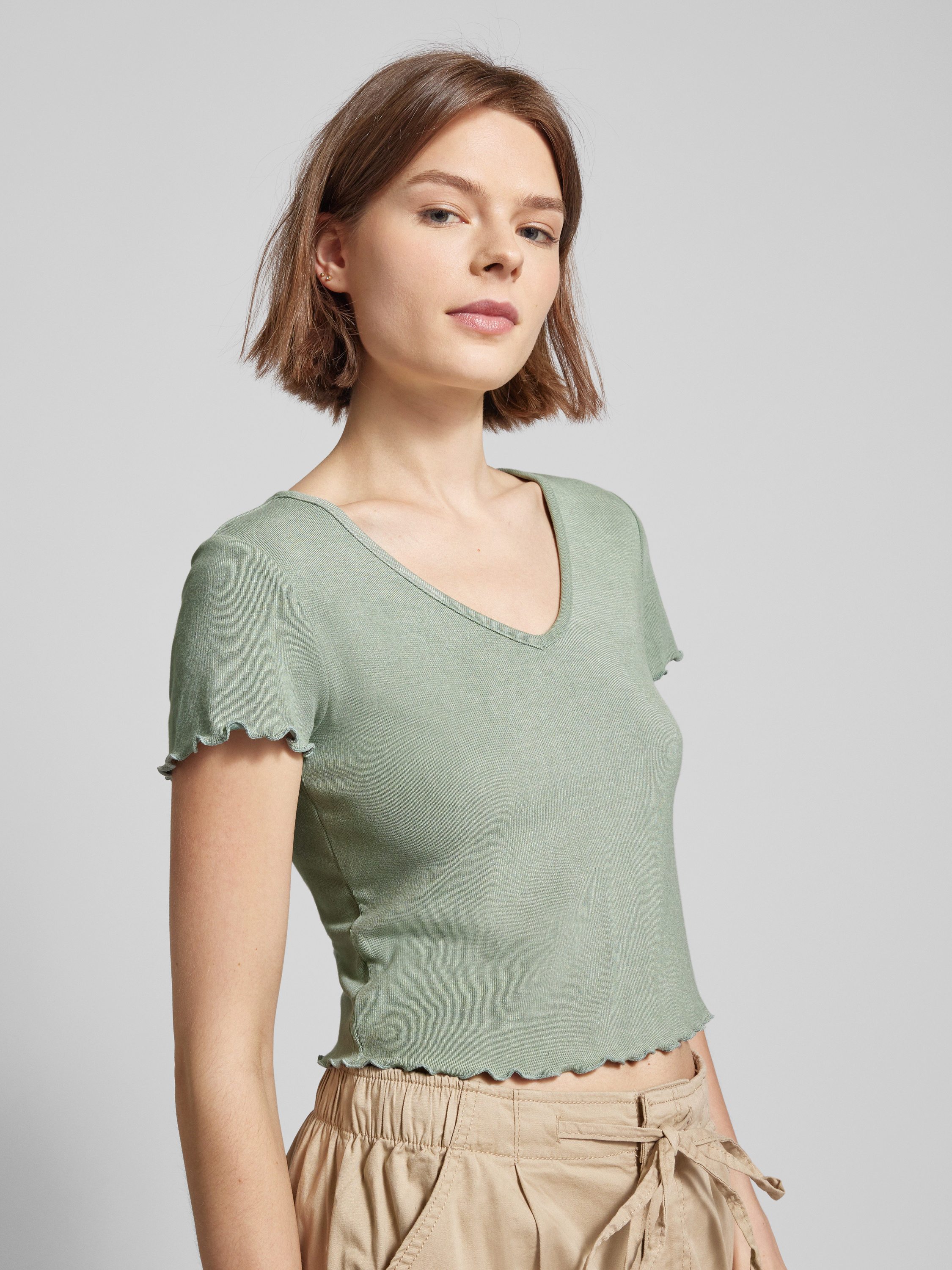 T-shirt krótki z falistym dołem model ‘KIKA’ - trzcinowy