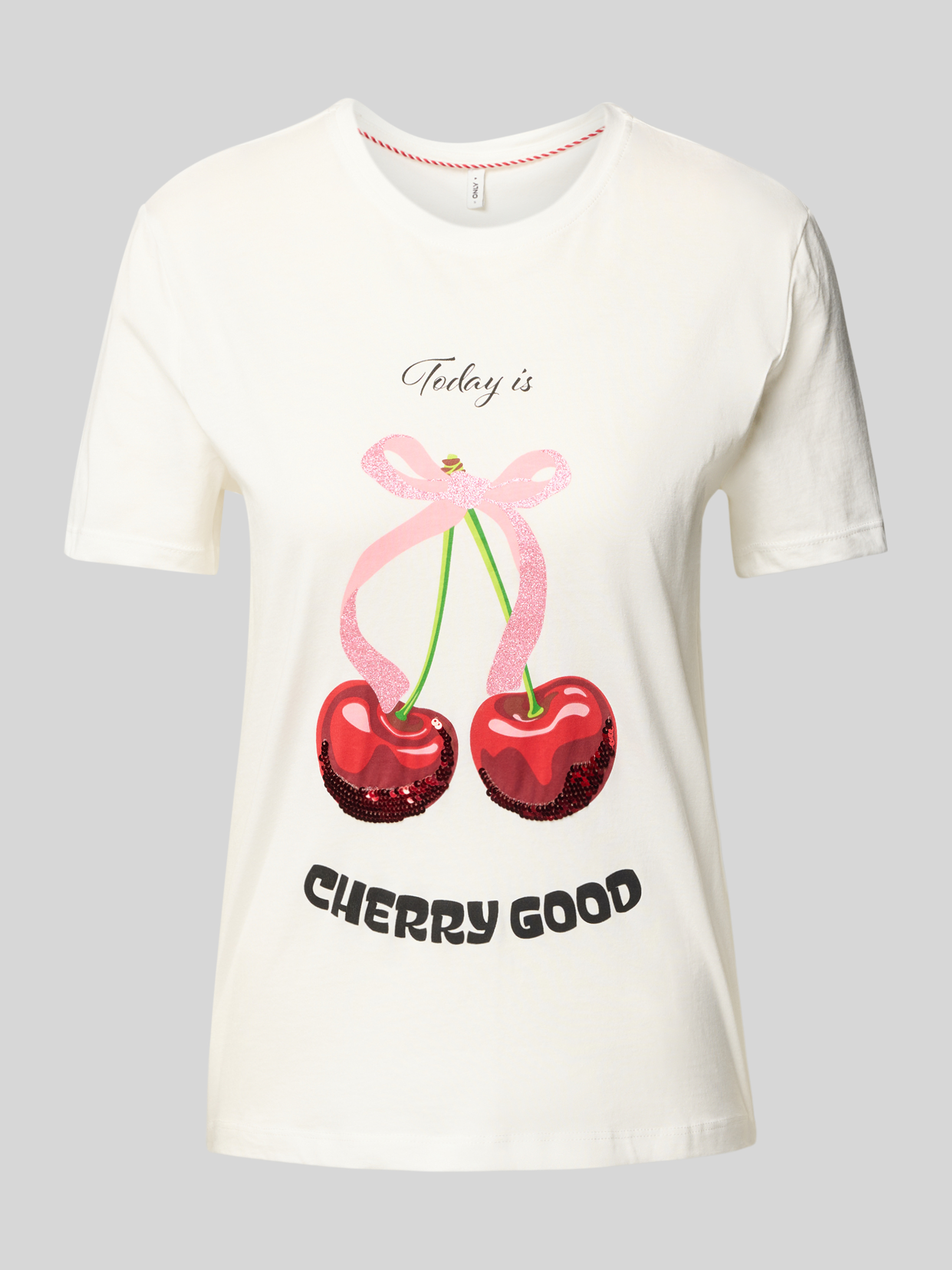 T-shirt o kroju regular fit z nadrukiem z motywem model ‘KITA’ - złamany biały