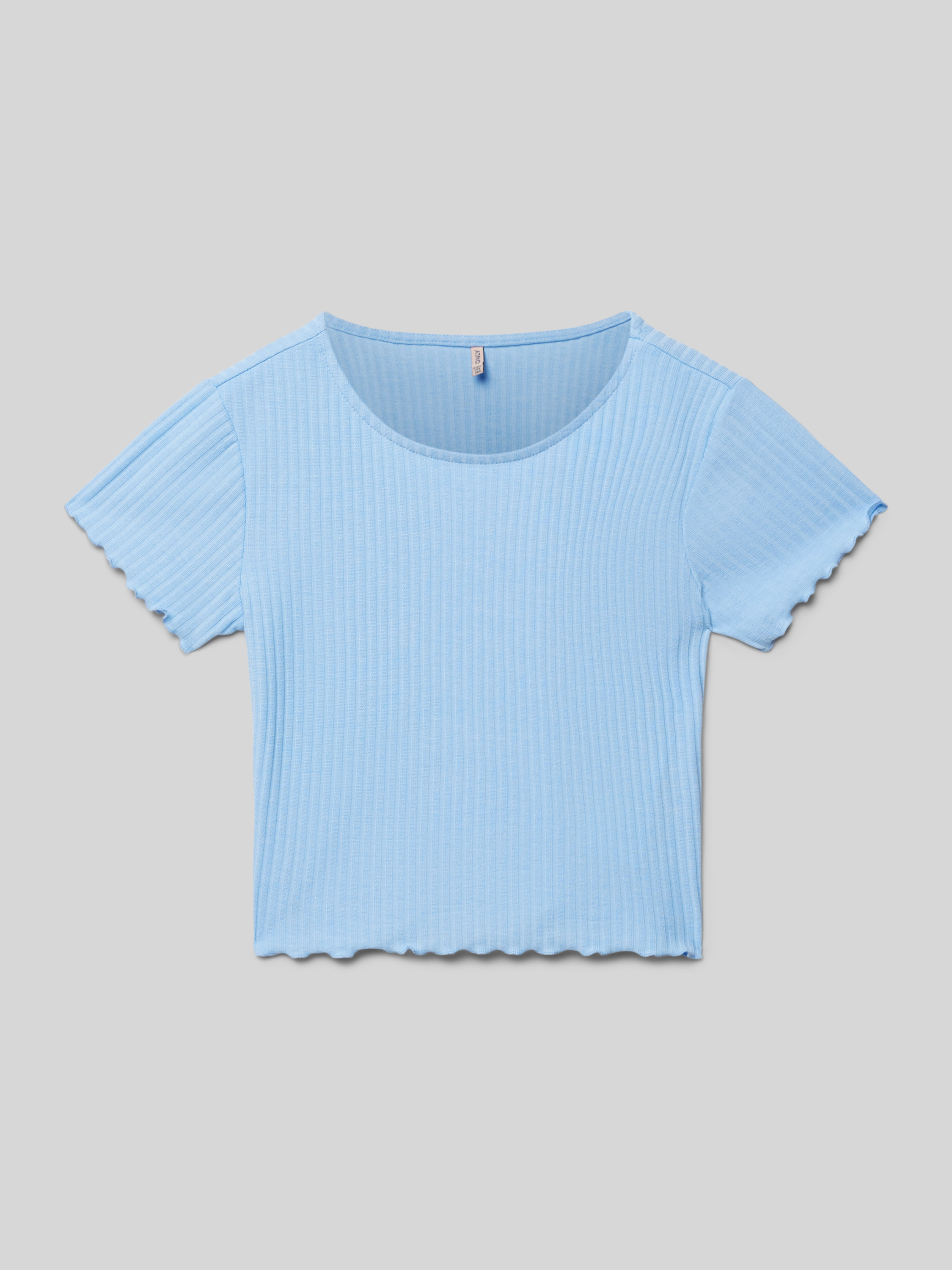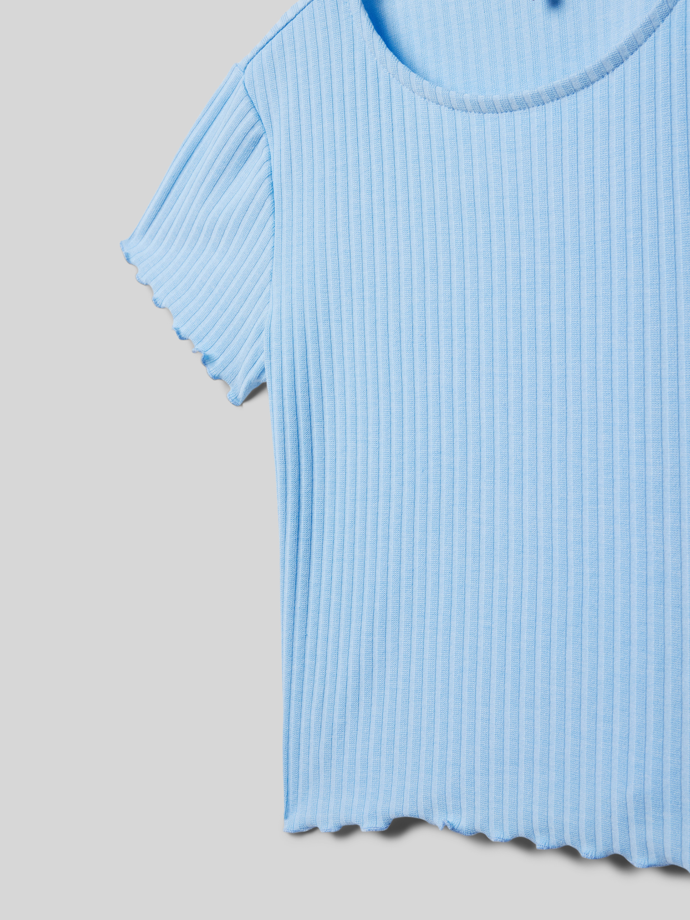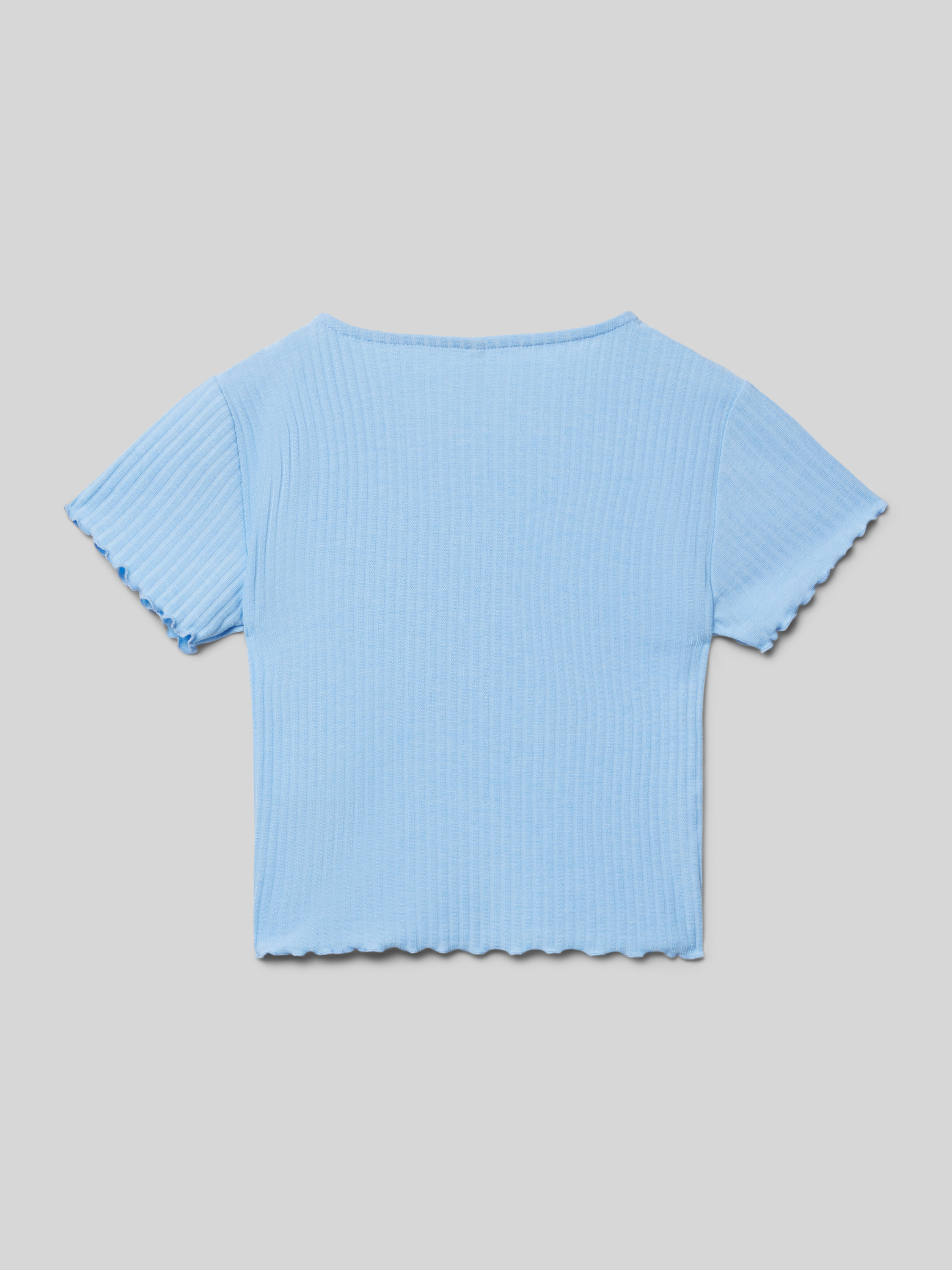 T-shirt o kroju regular fit z wykończeniem z falbanami model ‘NELLA’ - jasnoniebieski
