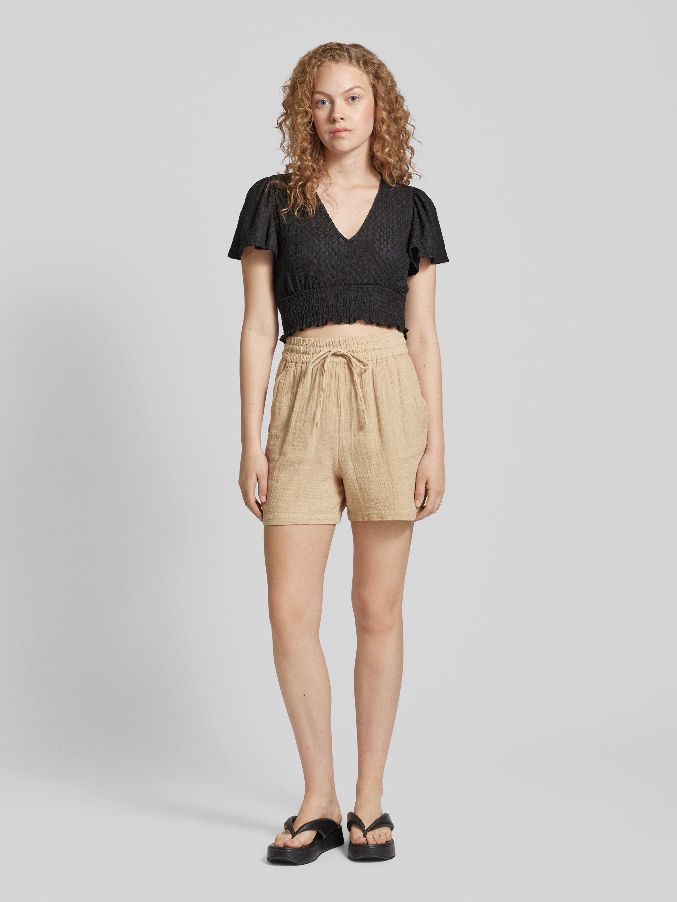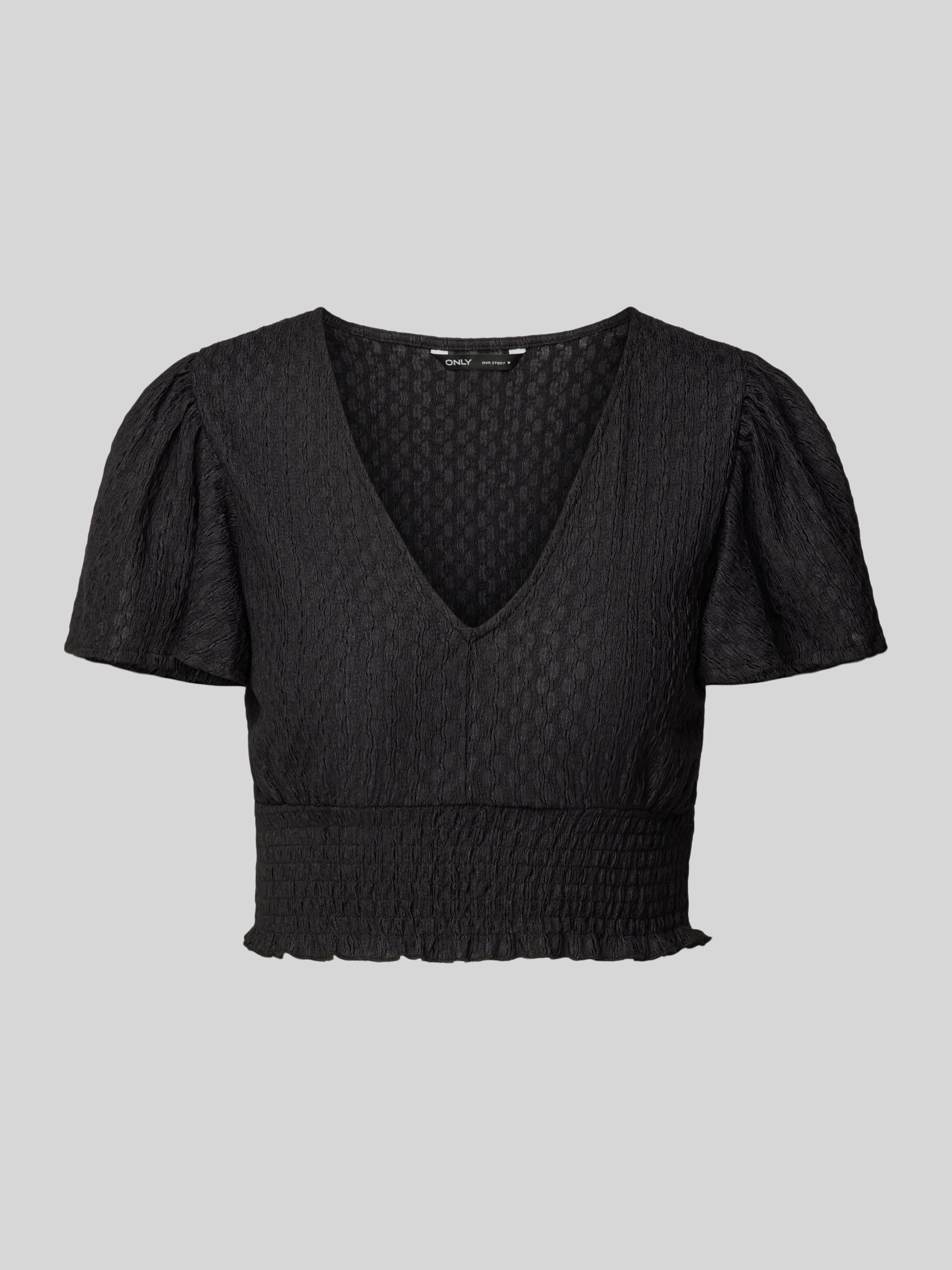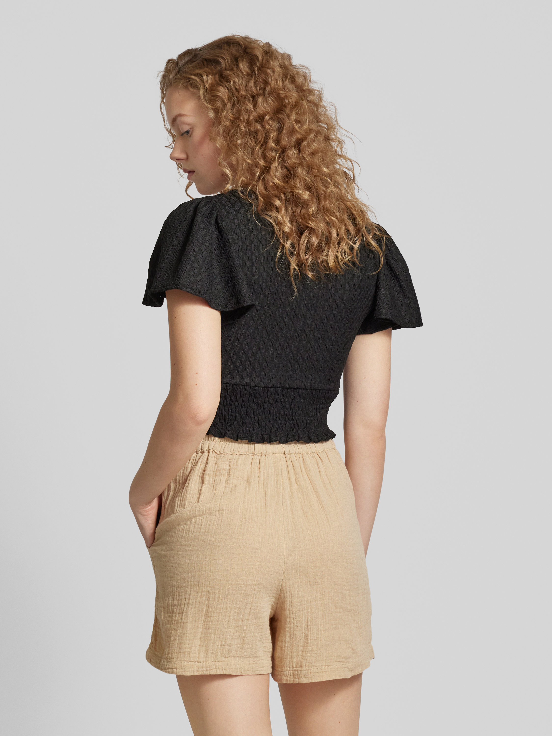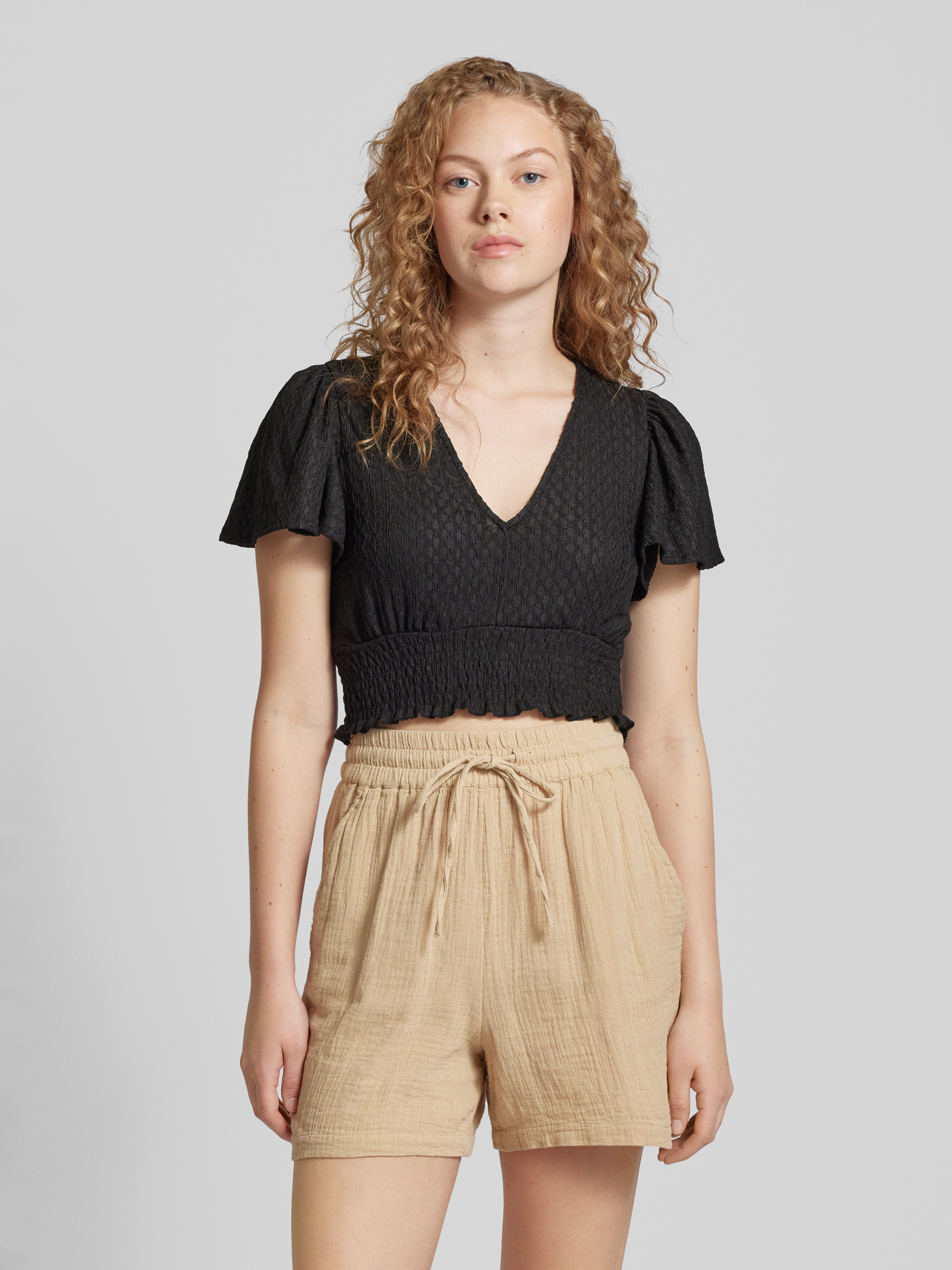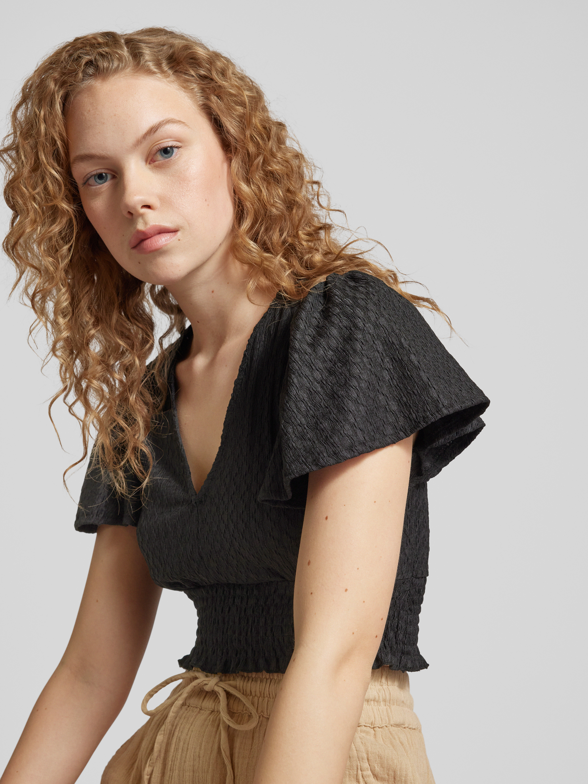 Top krótki z marszczonymi detalami model ‘HANNAH’ - czarny
