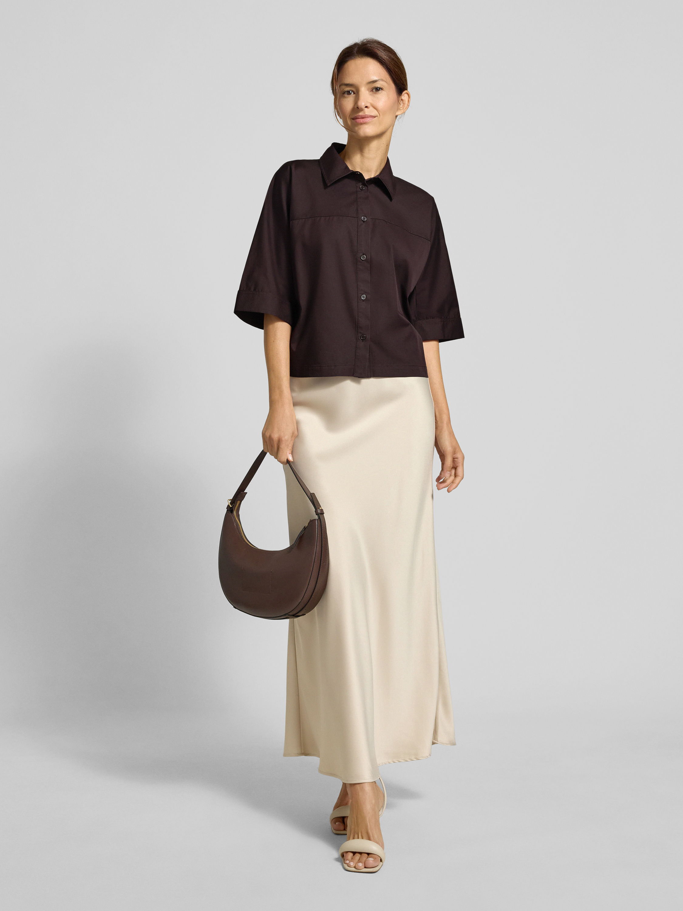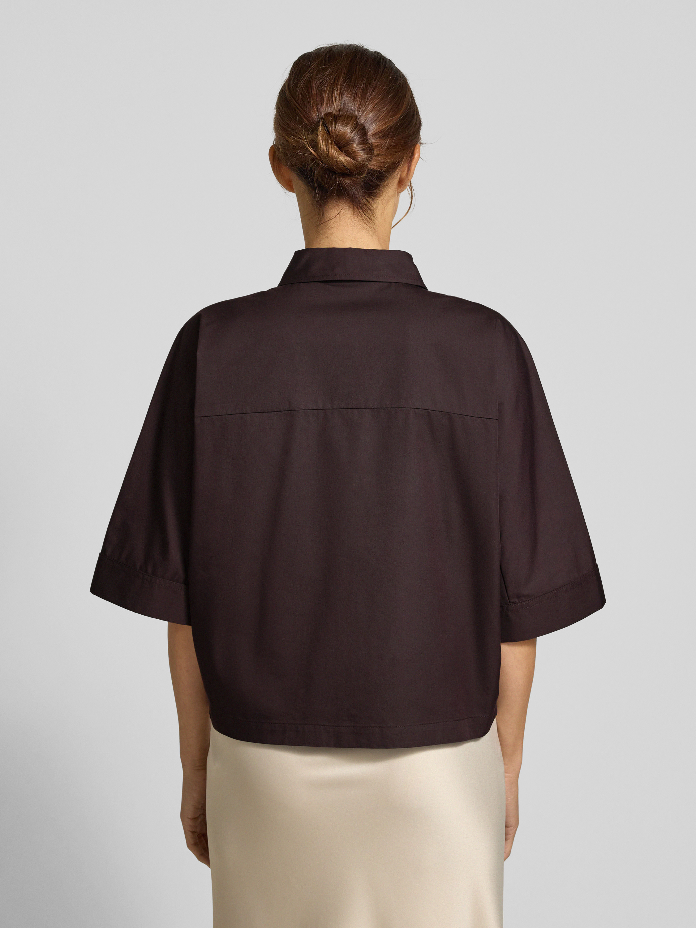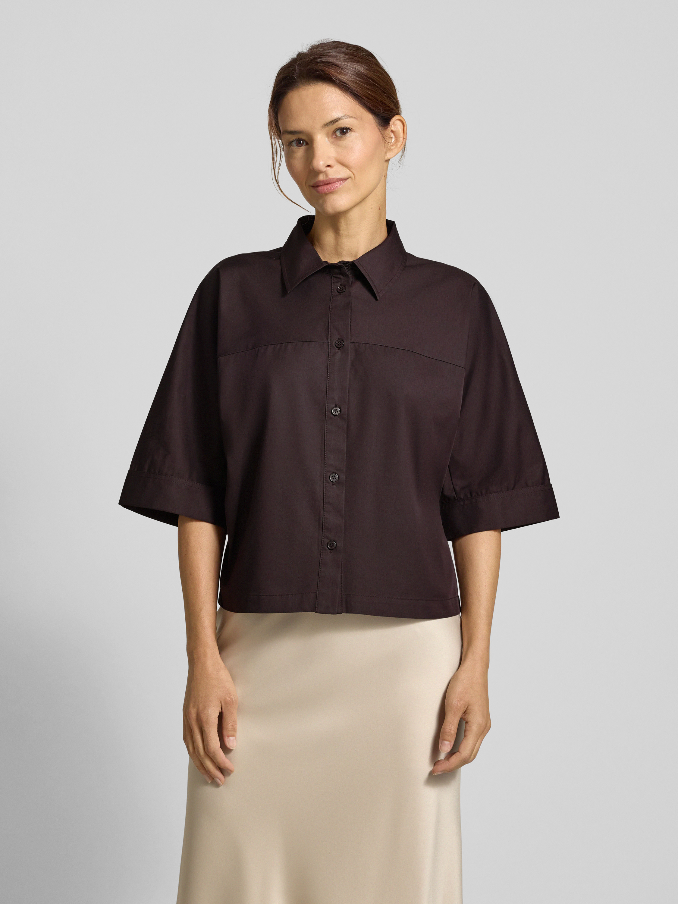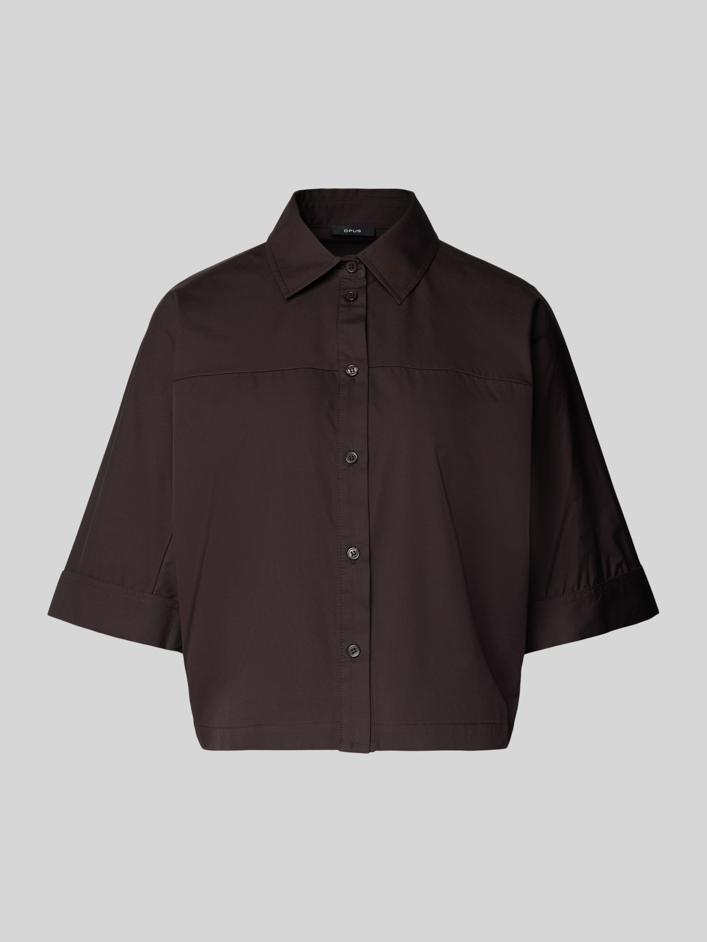 Bluzka koszulowa o kroju regular fit z rękawem o dł. 1/2 model ‘Freppy’ - czekoladowy