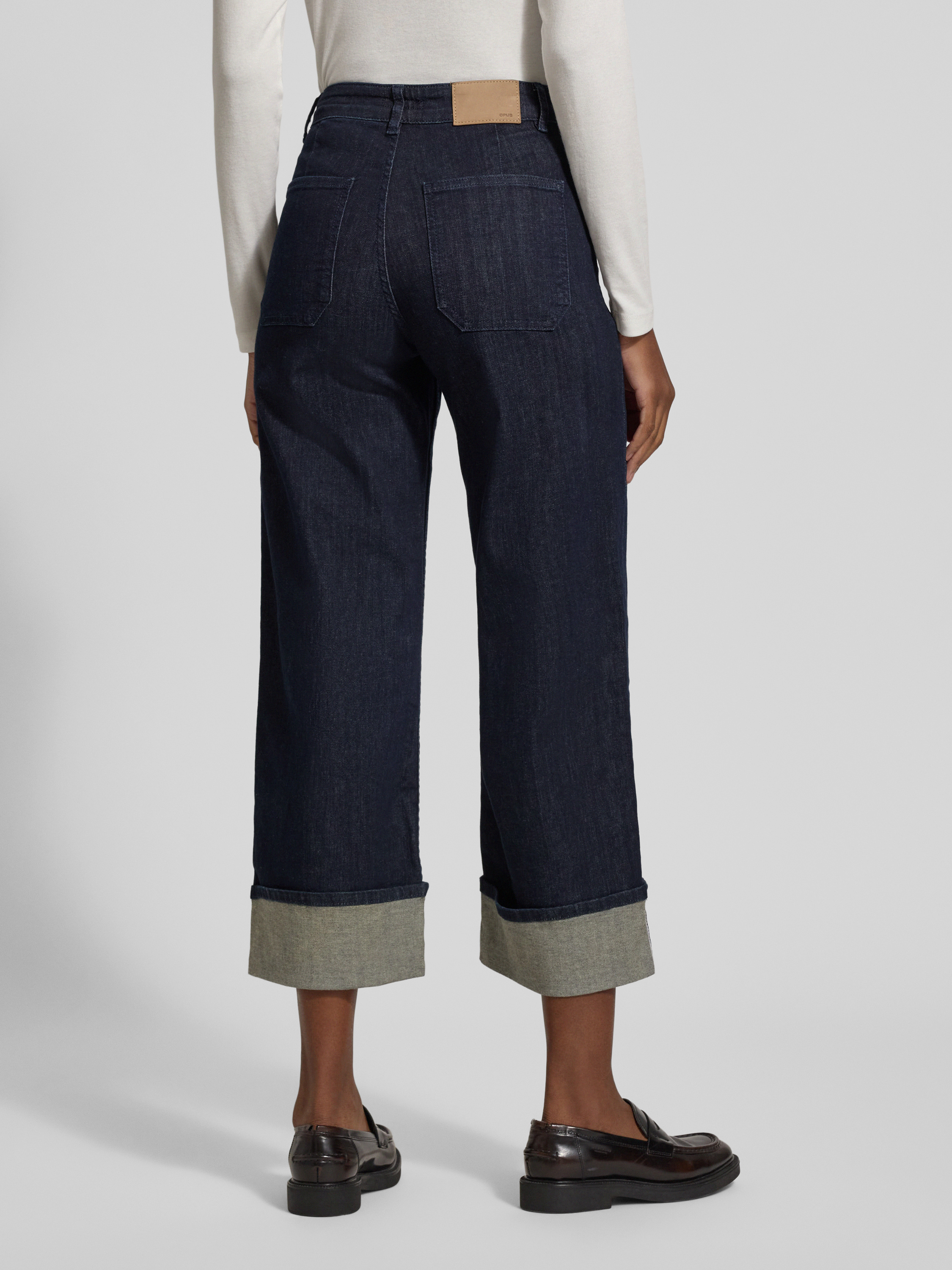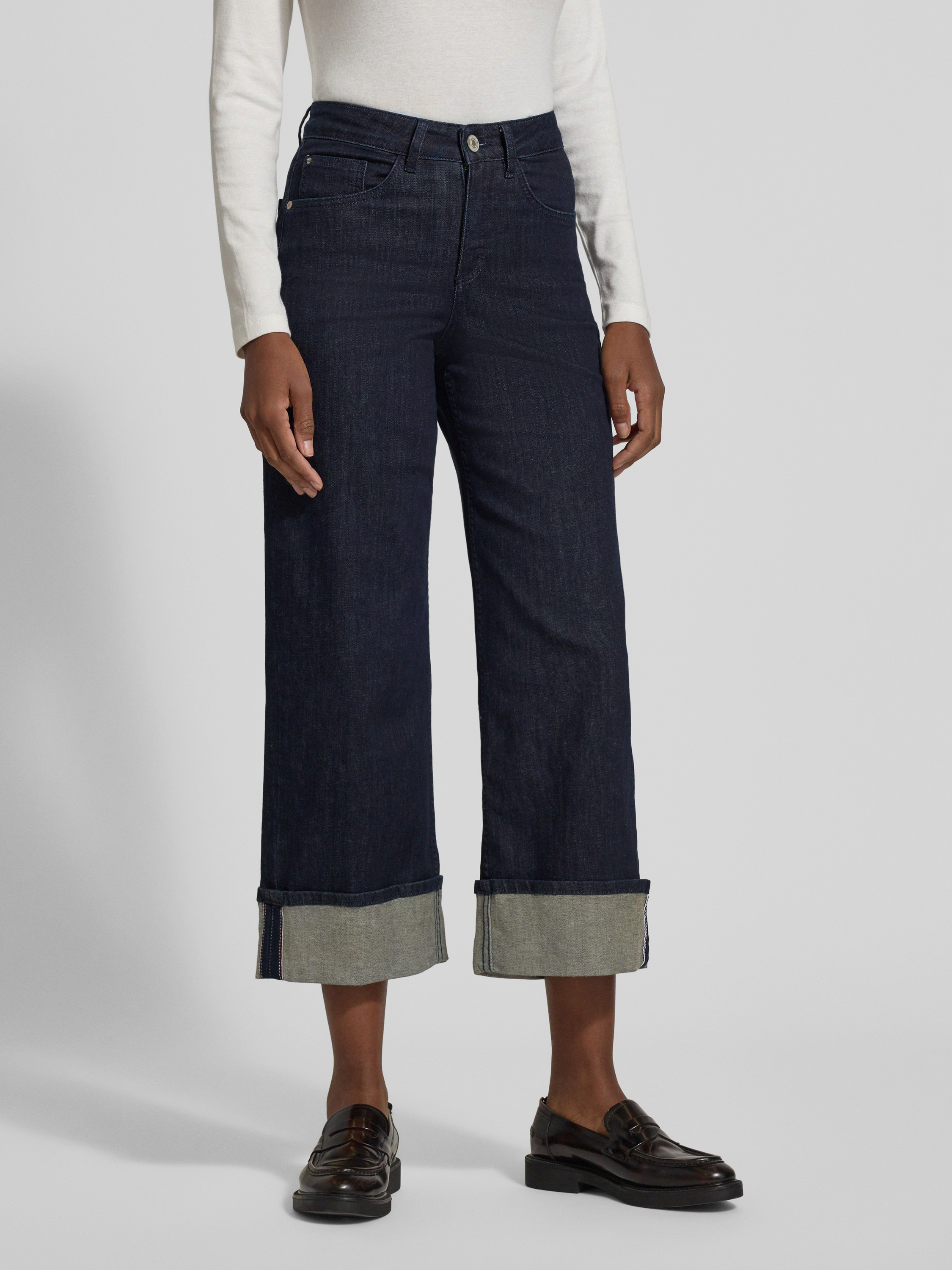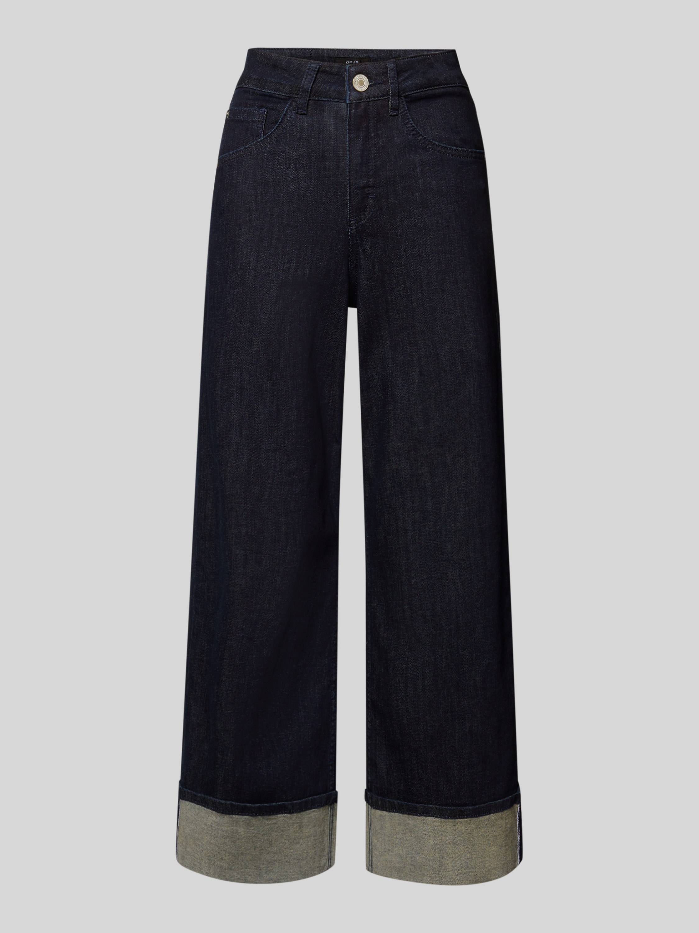 Jeansy z szeroką nogawką i przeszytym, podwiniętym brzegiem model ‘Miva’ - jeansowy niebieski