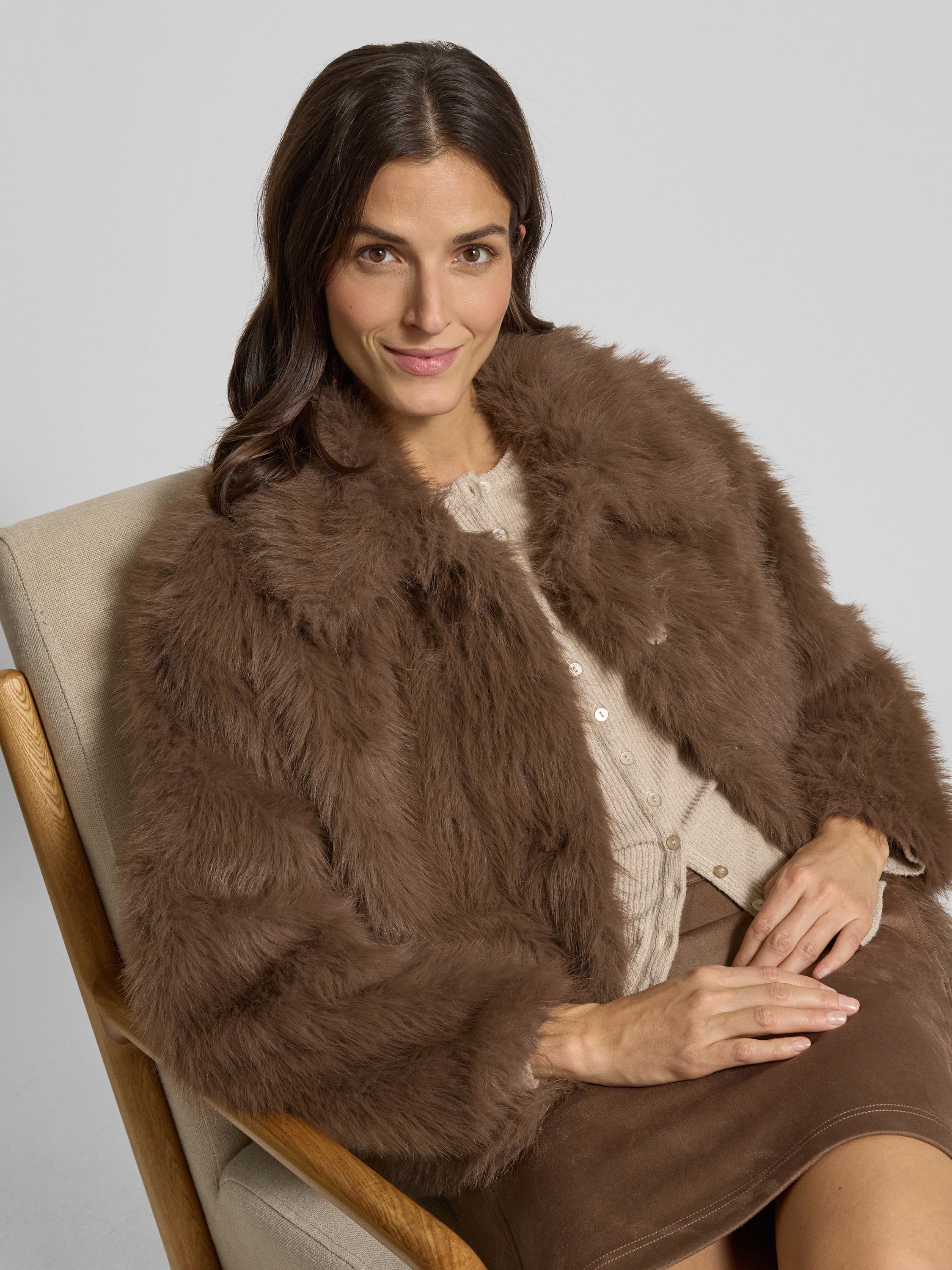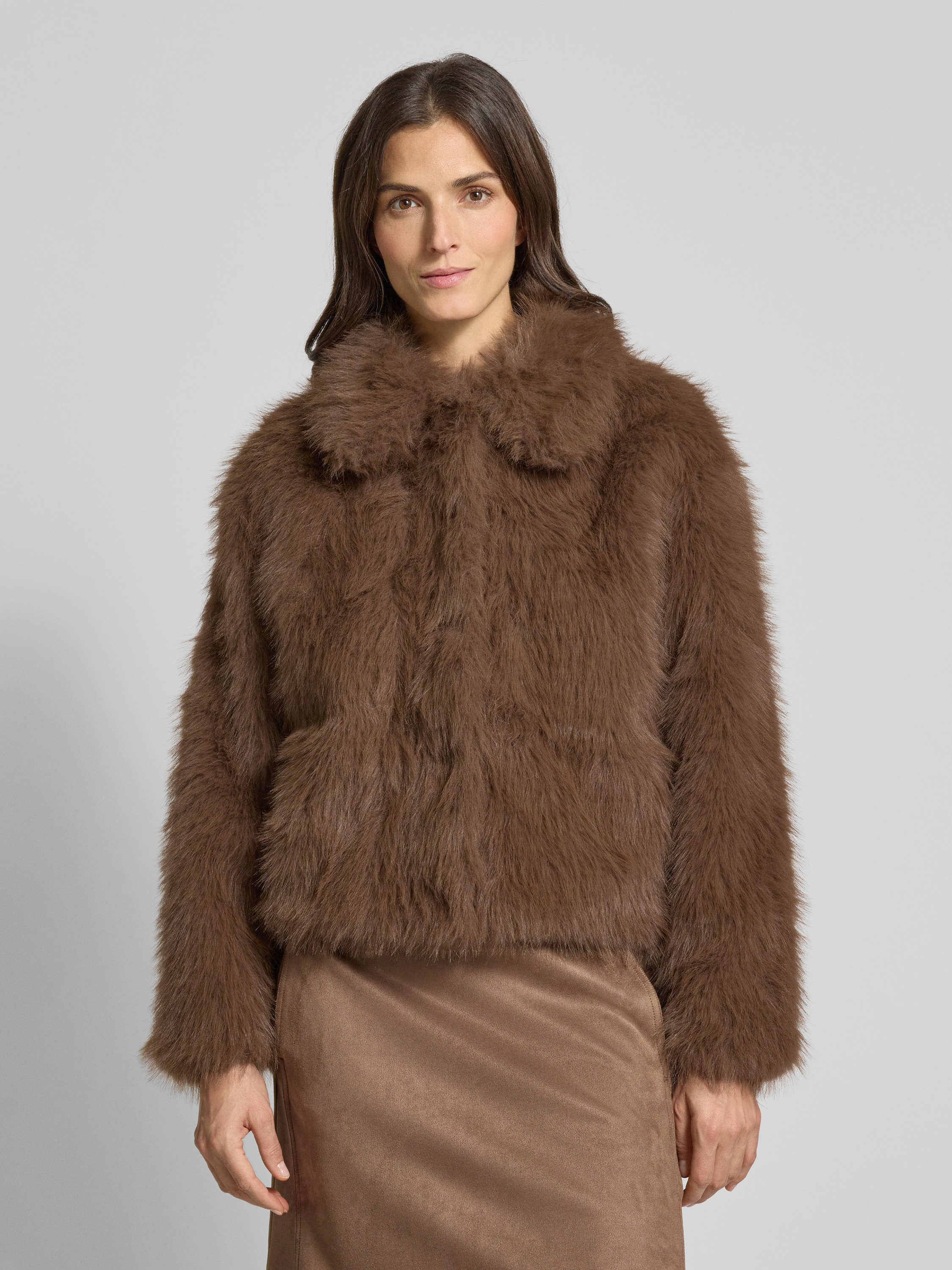 Kurtka ze sztucznego futra model ‘Hajora’ - średniobrązowy